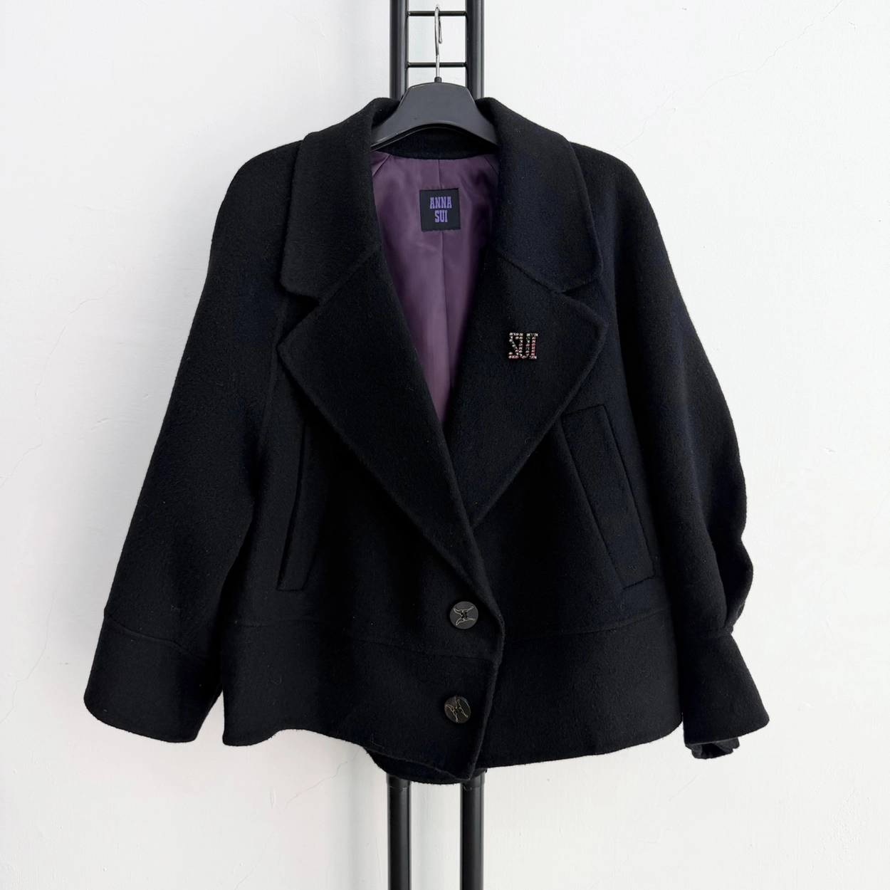 정품 안나수이 ANNA SUI 블랙 모 앙고라 혼방 브로치 코트