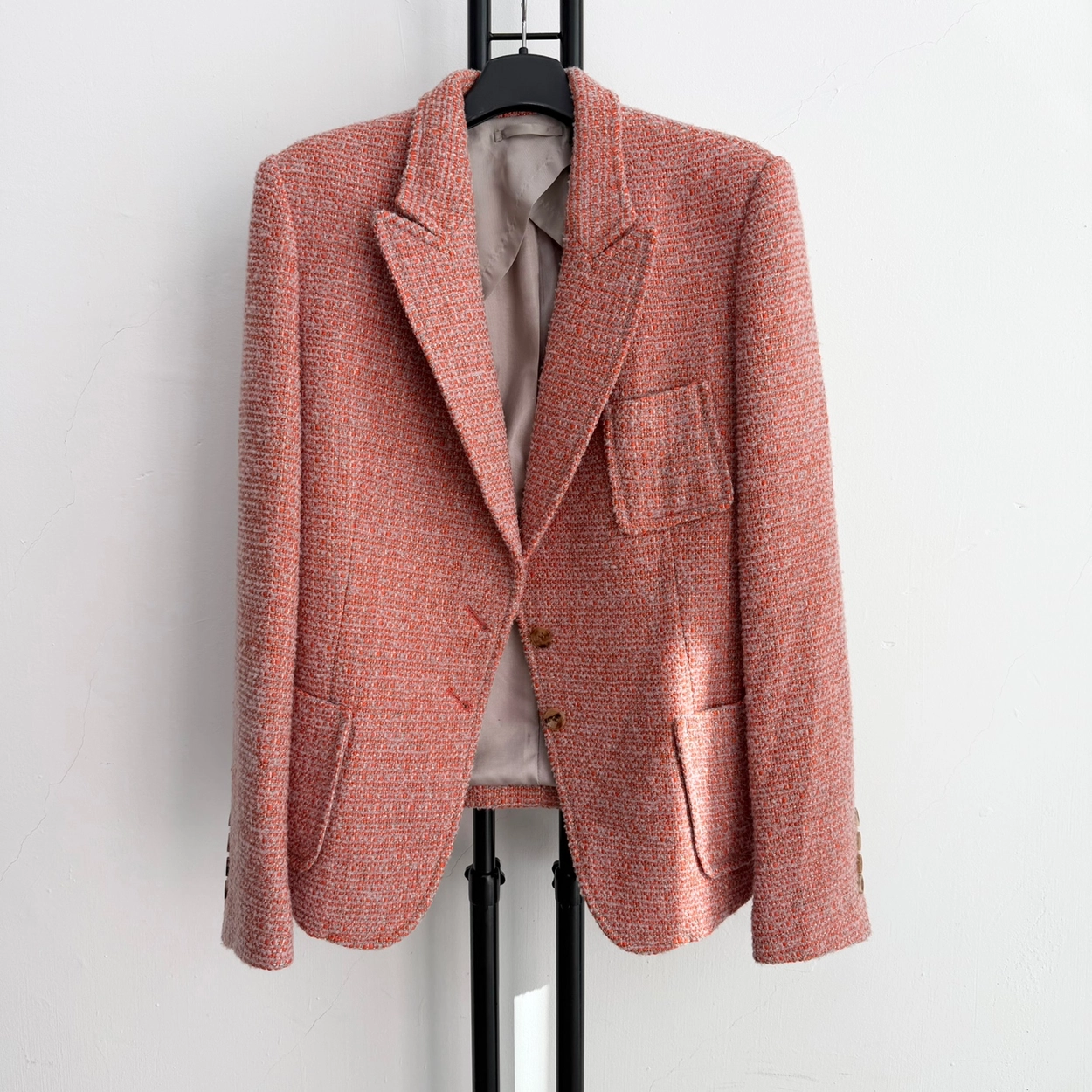 정품 TIME 블랙라벨 이태리산 울 혼방 코랄 트위드 자켓