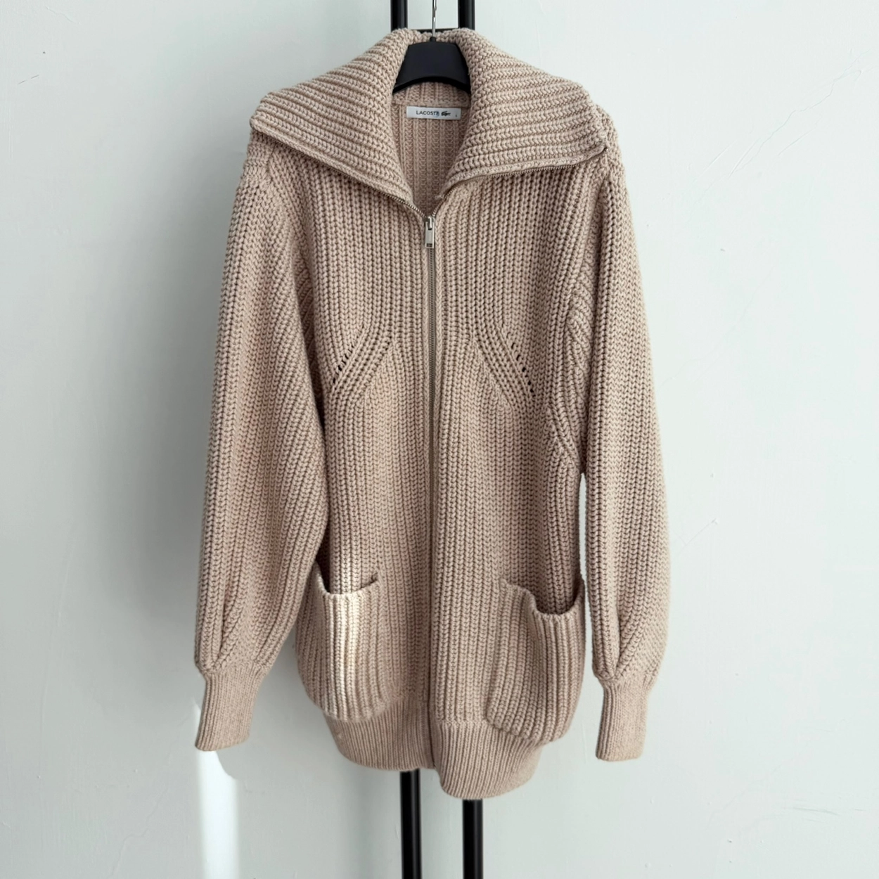 정품 라코스테 LACOSTE 니트 베이지 면 +울 집업 가디건