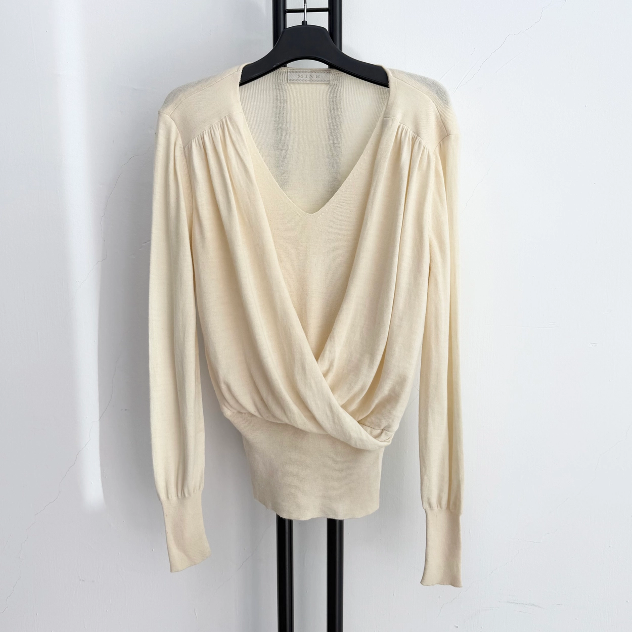 정품 MINE 마인 크로스 브이넥 모 100% 아이보리 니트