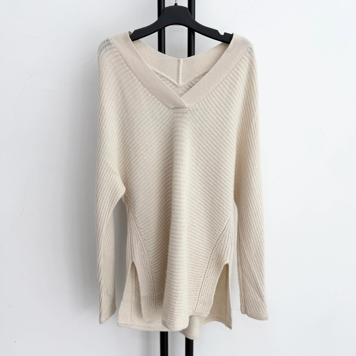 정품 빈스 VINCE 라나울+캐시미어 혼방 아이보리 V넥 옆트임 긴팔 니트