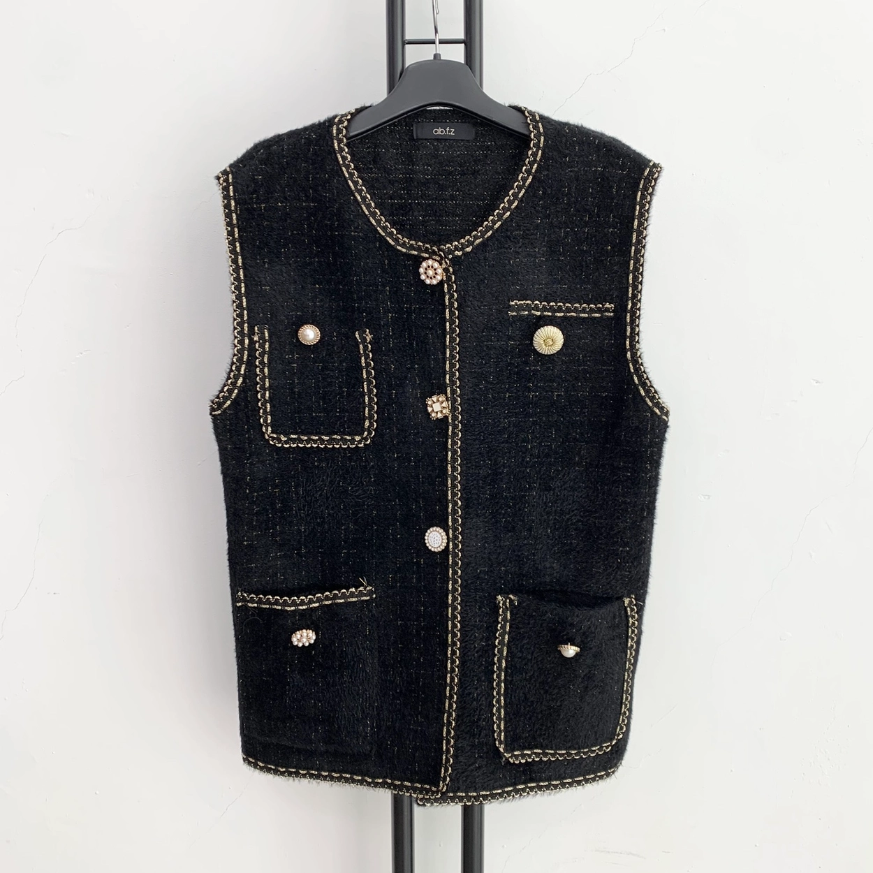정품 ab.f.z 블랙 트위드 니트 조끼