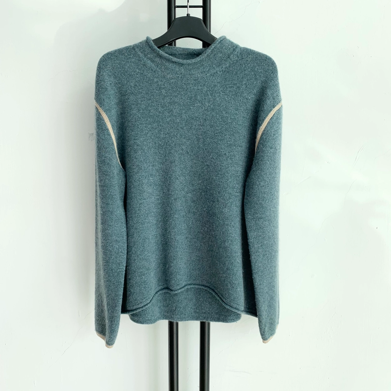 정품 타임 Time 캐시미어 100프로 블루 라운드넥 니트 스웨터