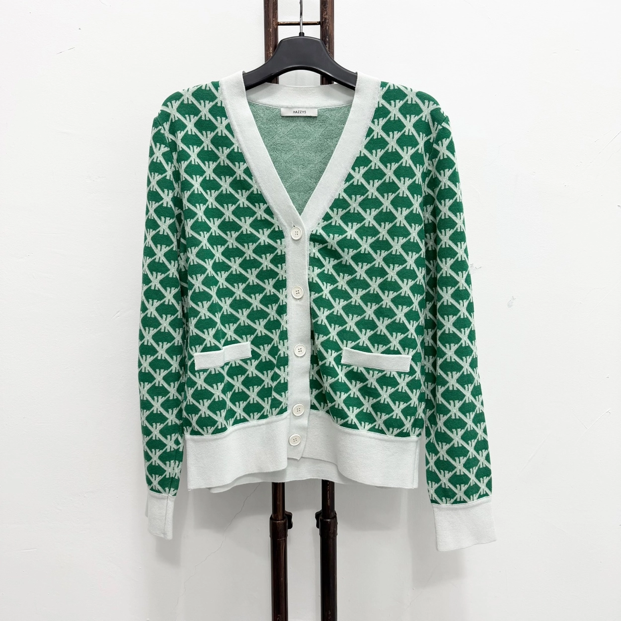 정품 헤지스 HAZZYS 그린 패턴 가디건