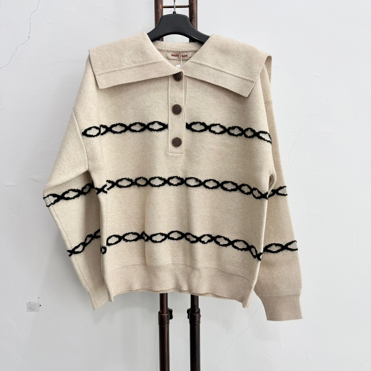 정품 미사용 마리끌레르 카라넥 니트 패턴 스웨터
