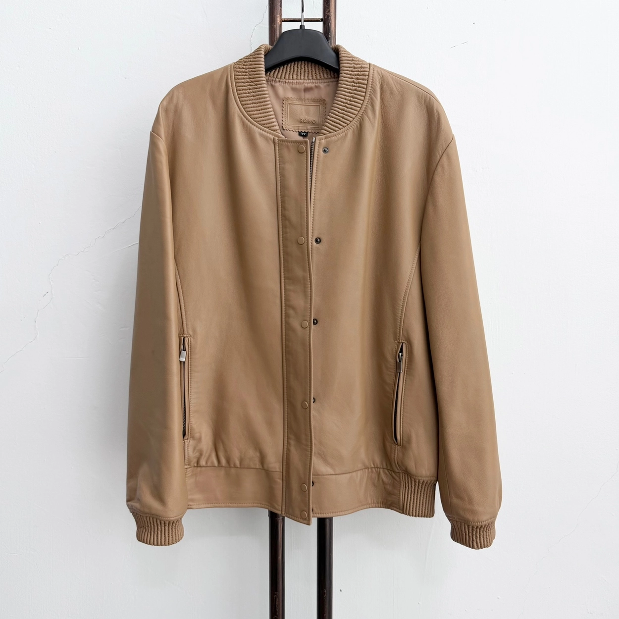 정품 로보 ROBO 가죽 봄버 양가죽 100% 베이지 자켓