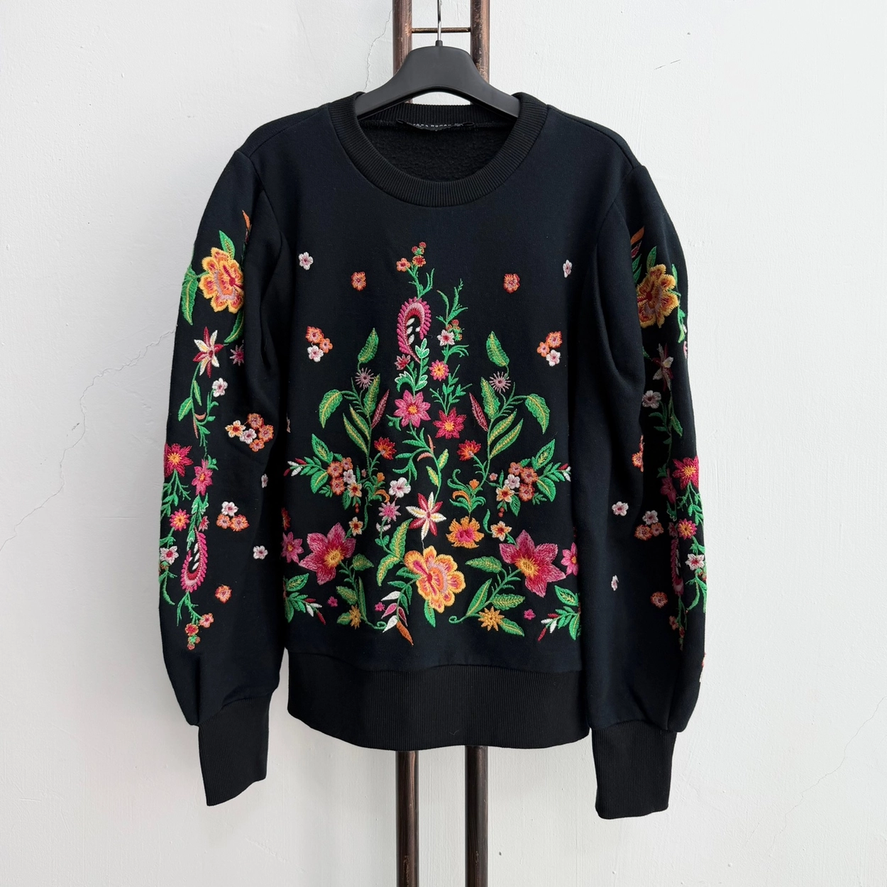 정품 Zara 자라 블랙 플라워 자수 맨투맨