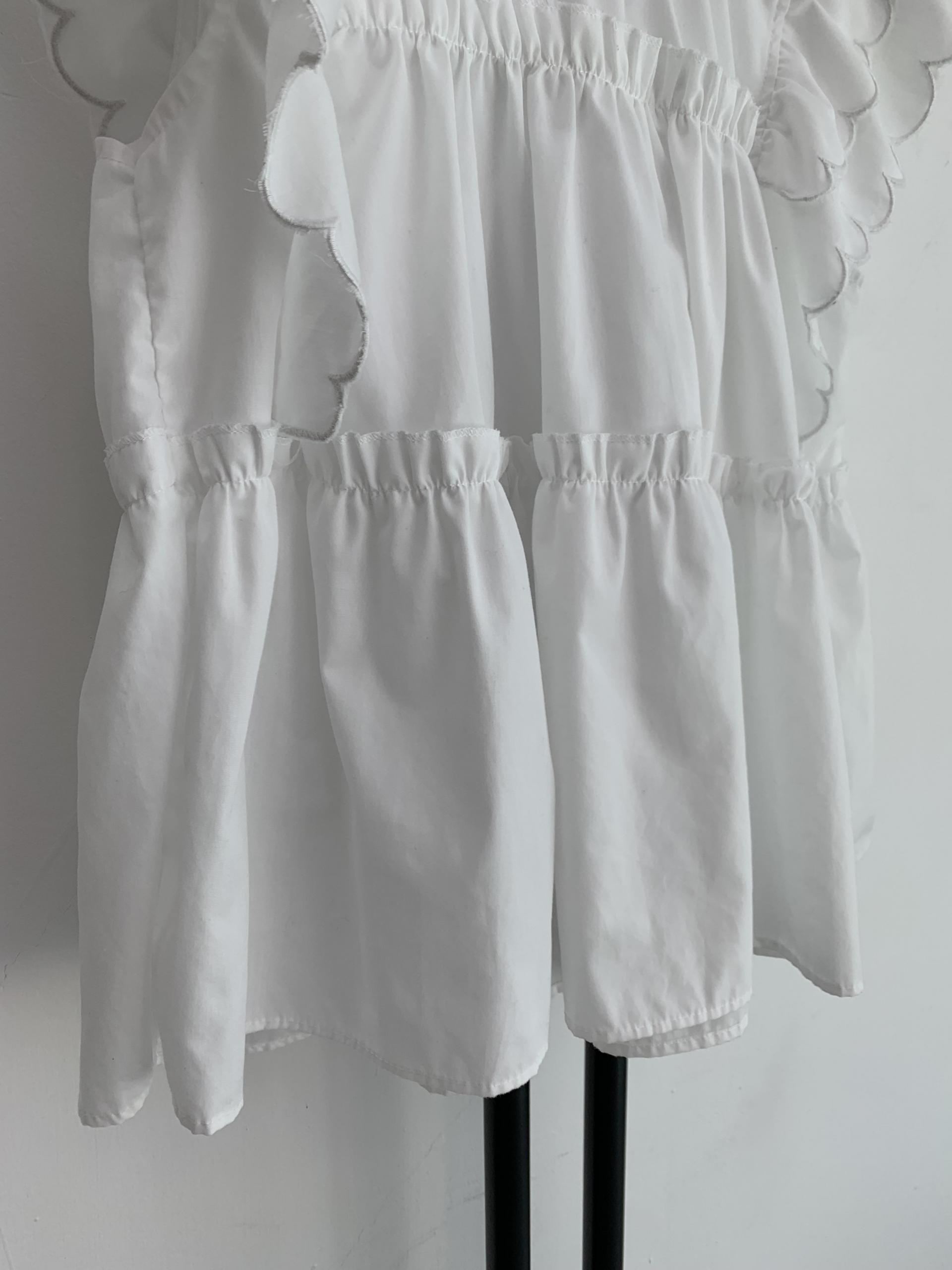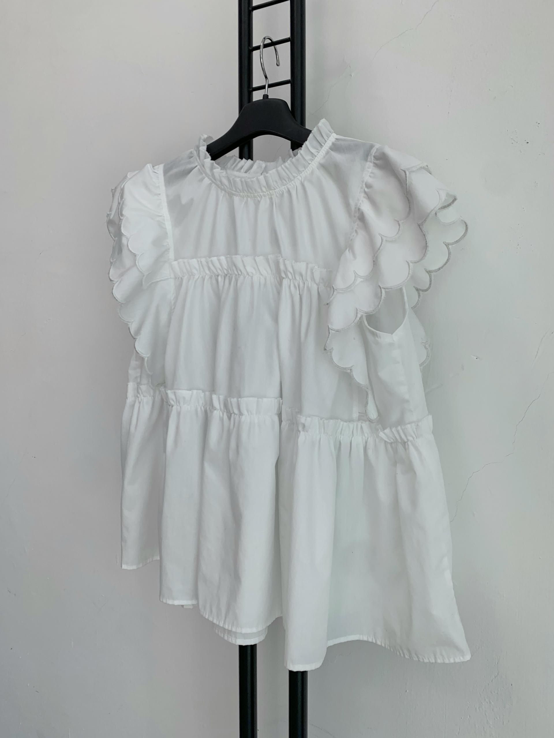 사랑스러움과 여성스러움이 동시에 느껴지는 화이트 블라우스입니다.