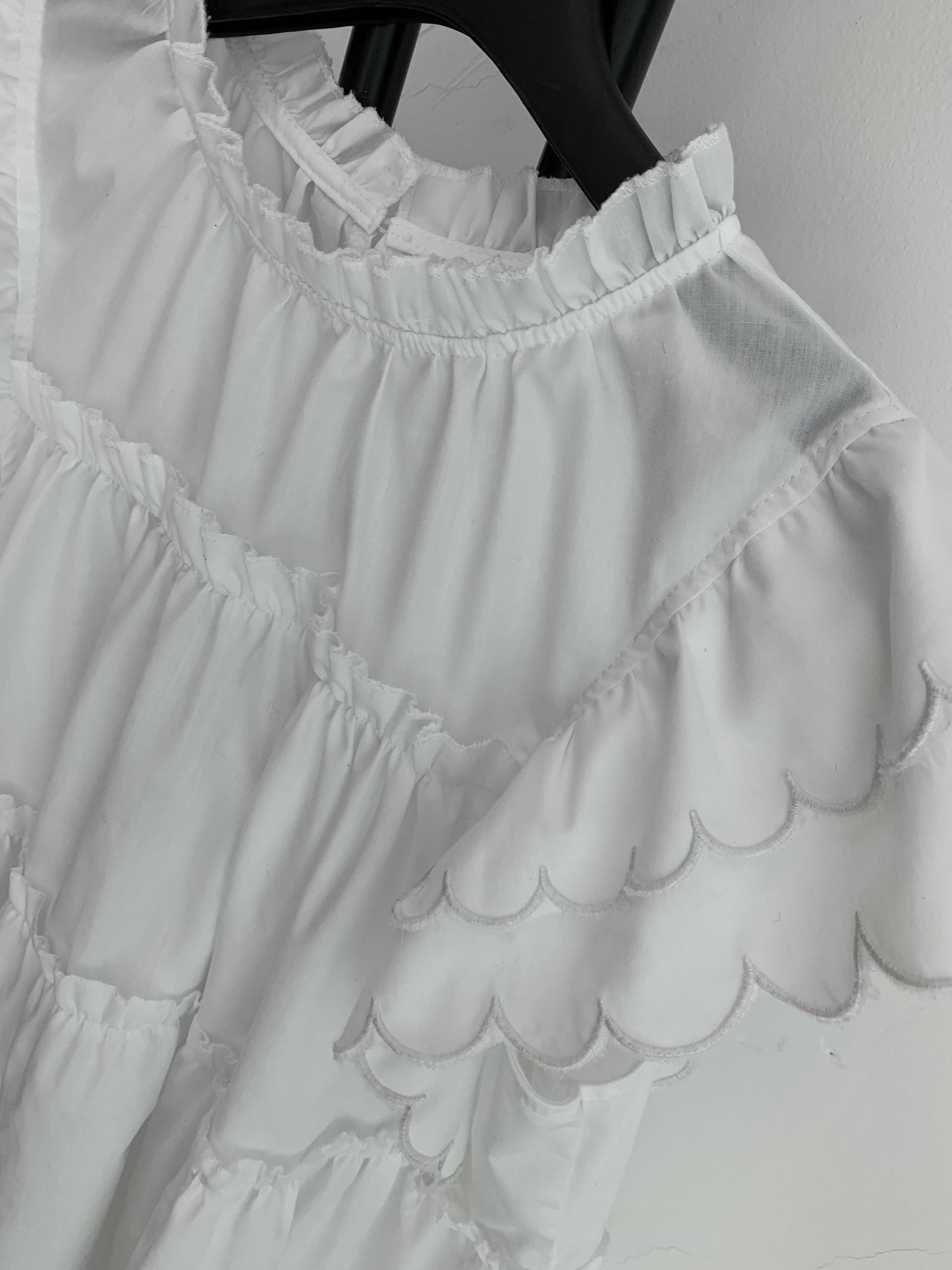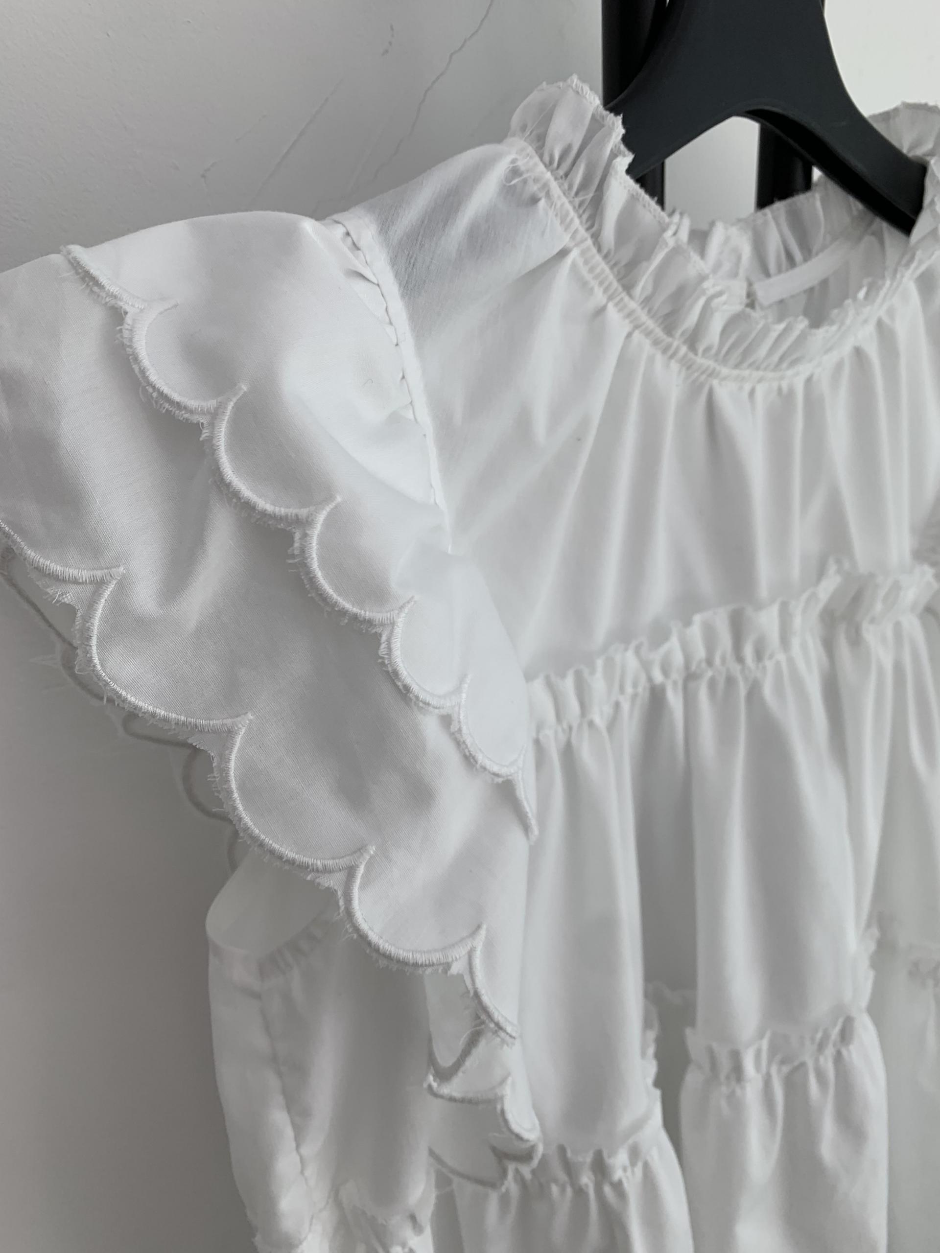 소매의 물결 프릴 디테일이 로맨틱한 포인트가 되어,