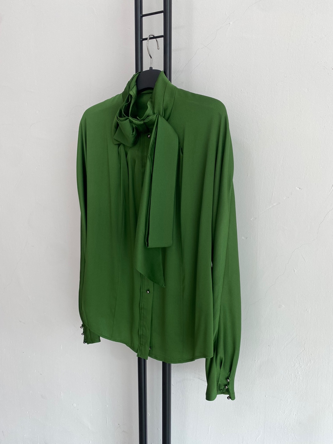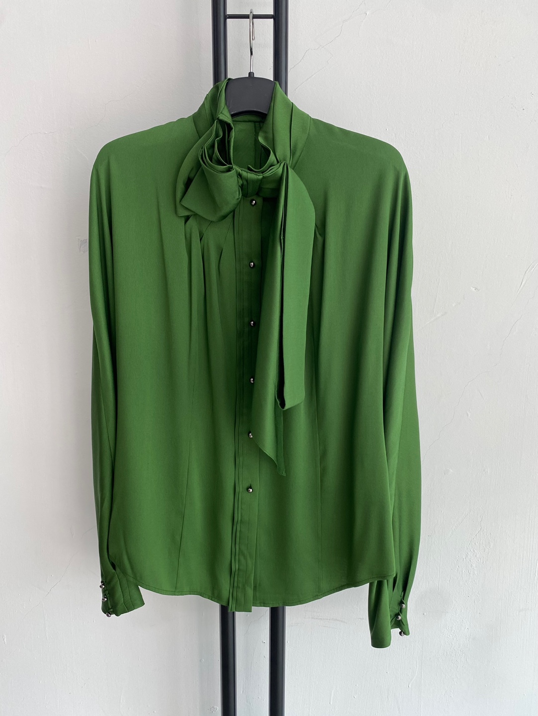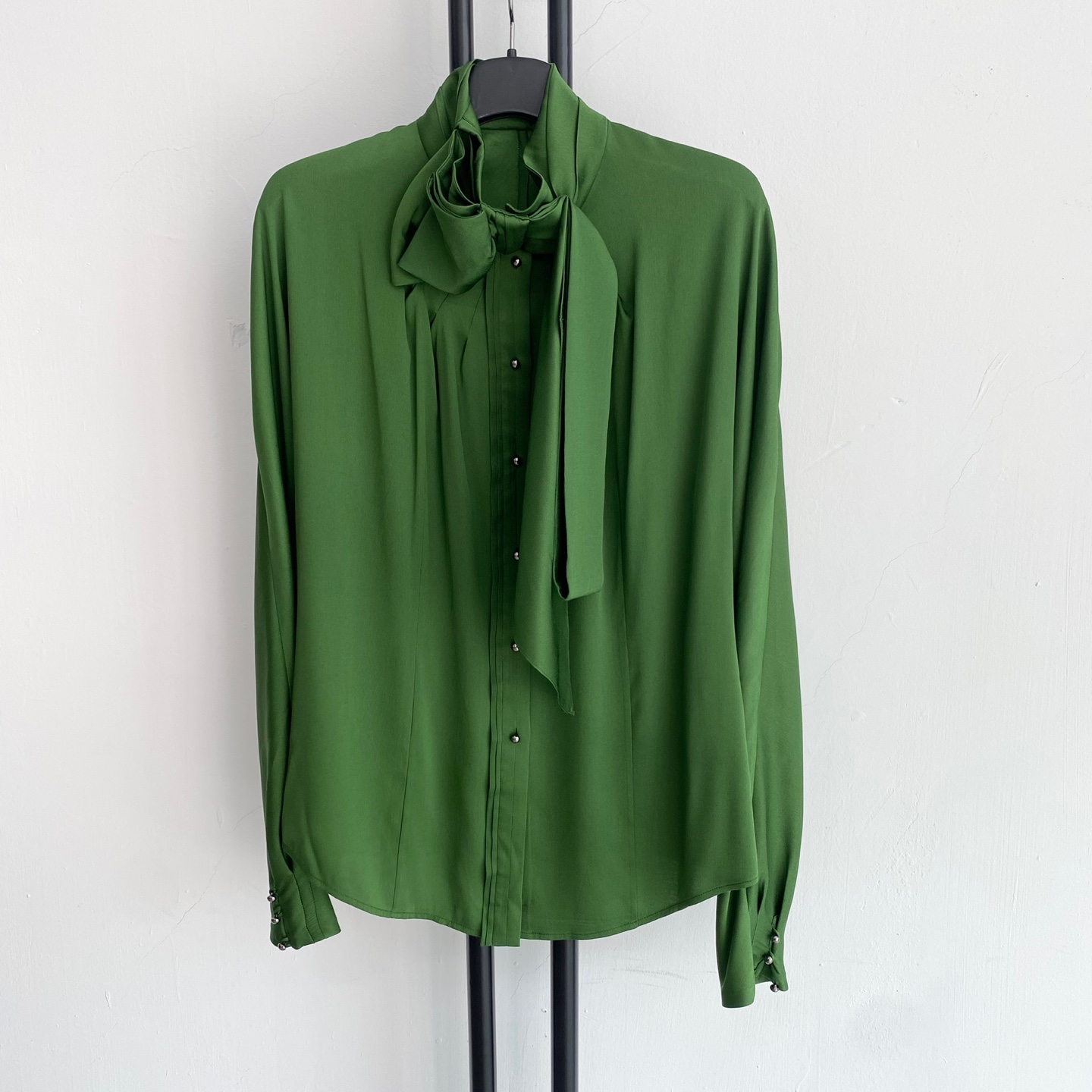 선명한 그린 컬러가 돋보이는 미샤의 실크 블라우스입니다.