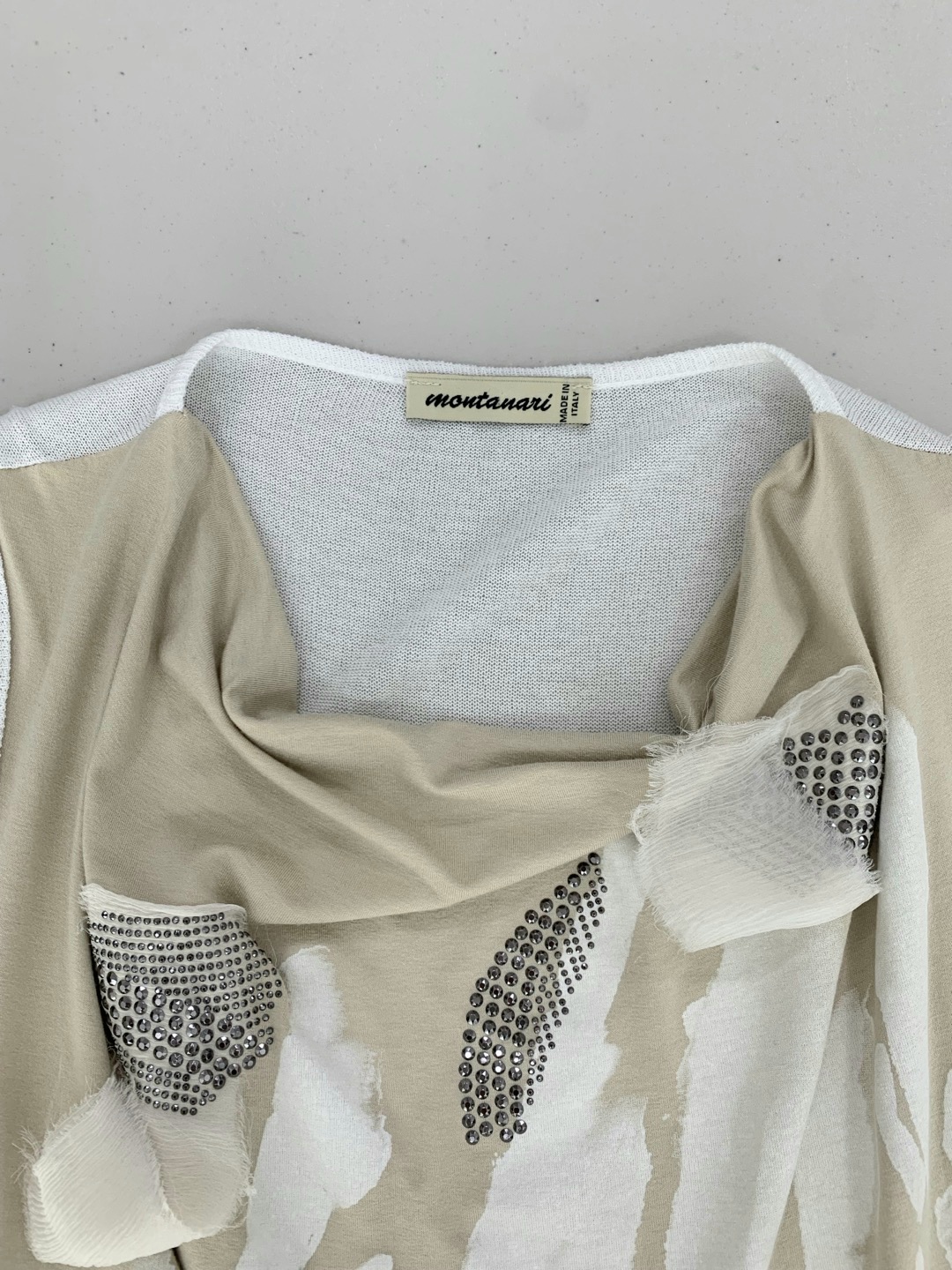 늘어진 넥라인과 앞뒤가 다른 디자인이 멋스럽습니다