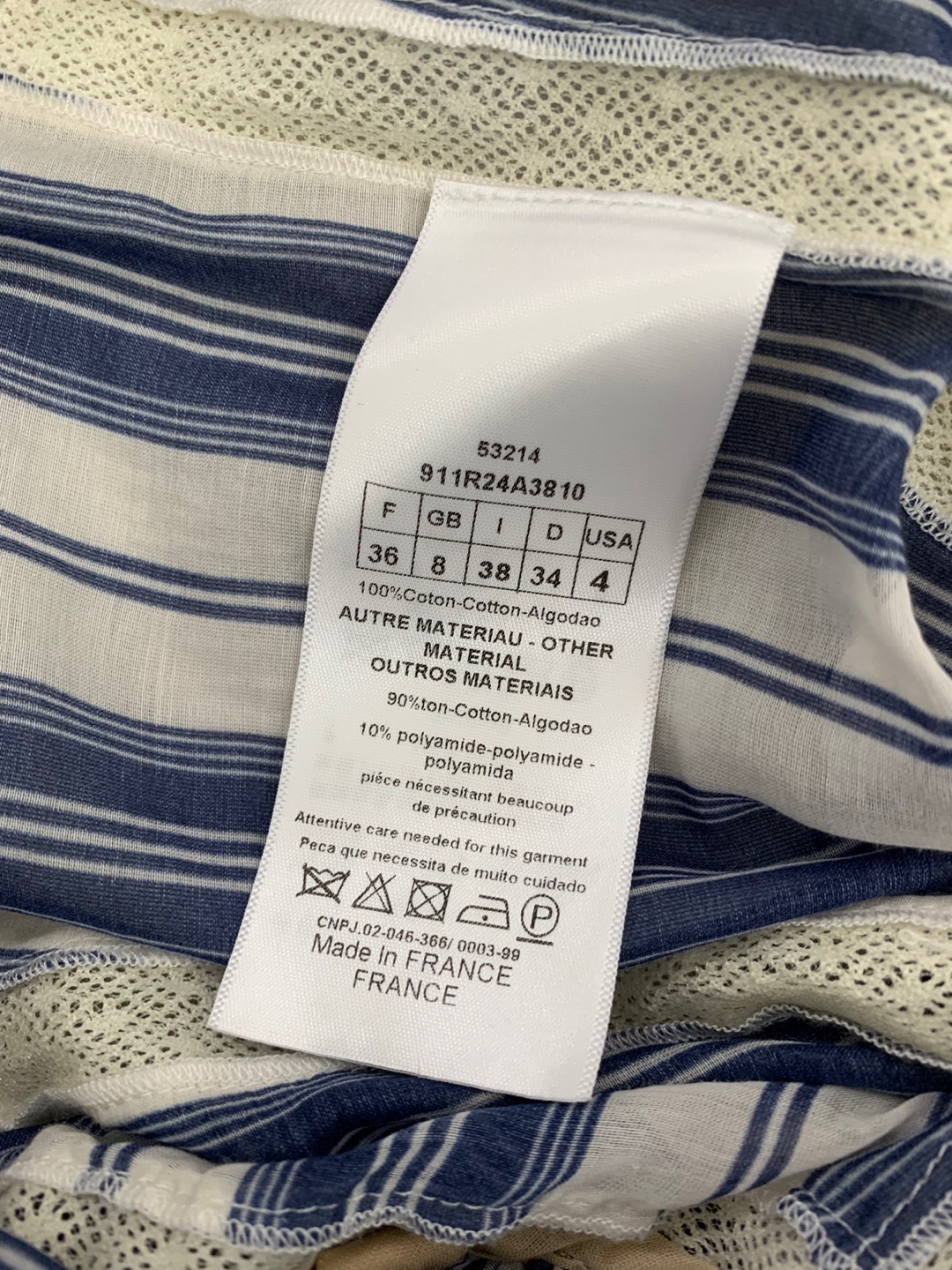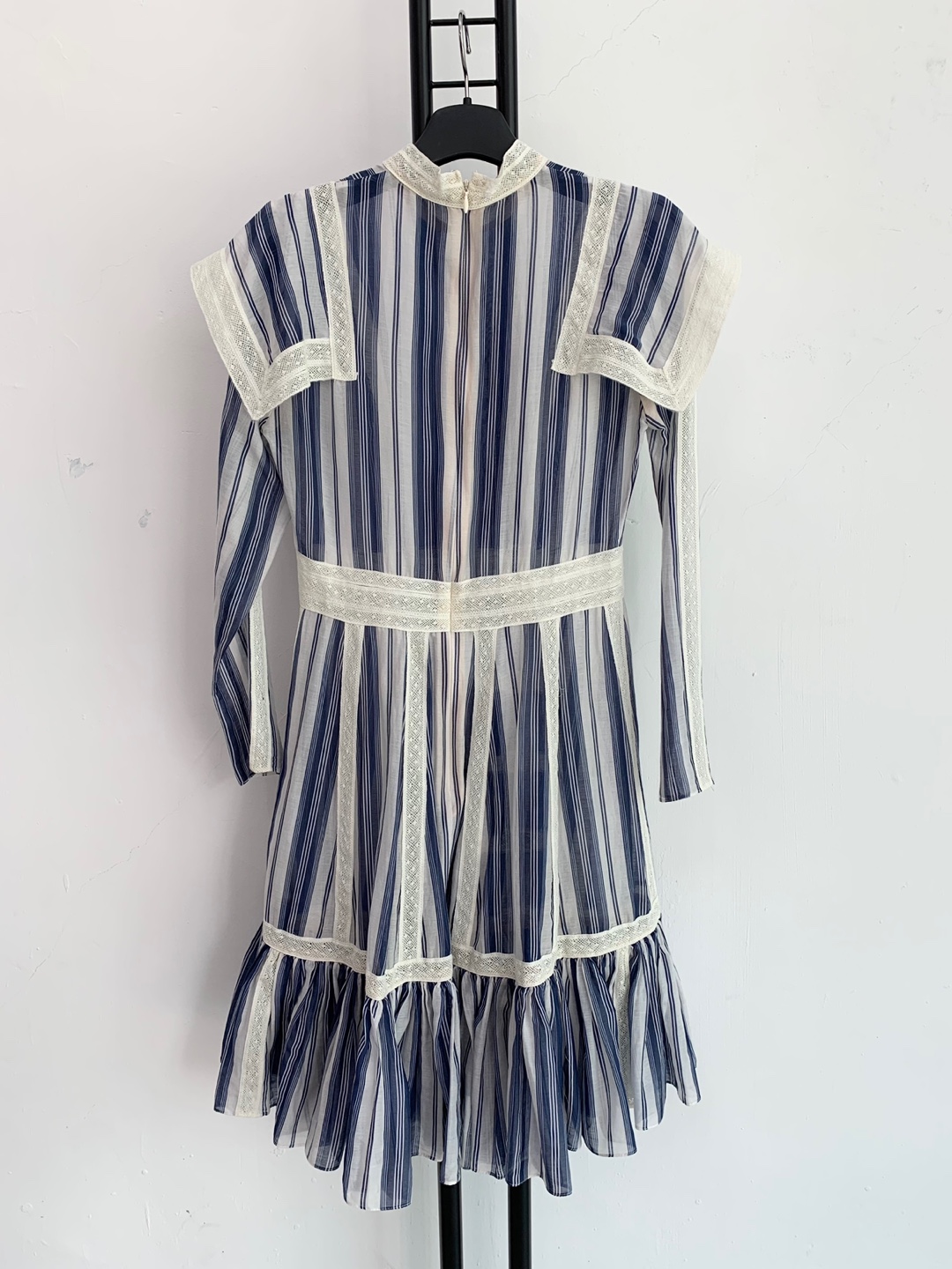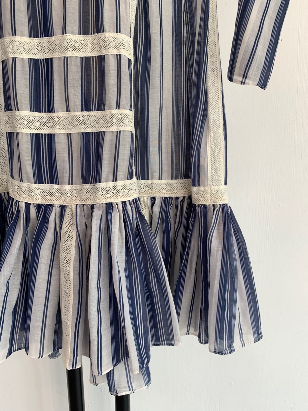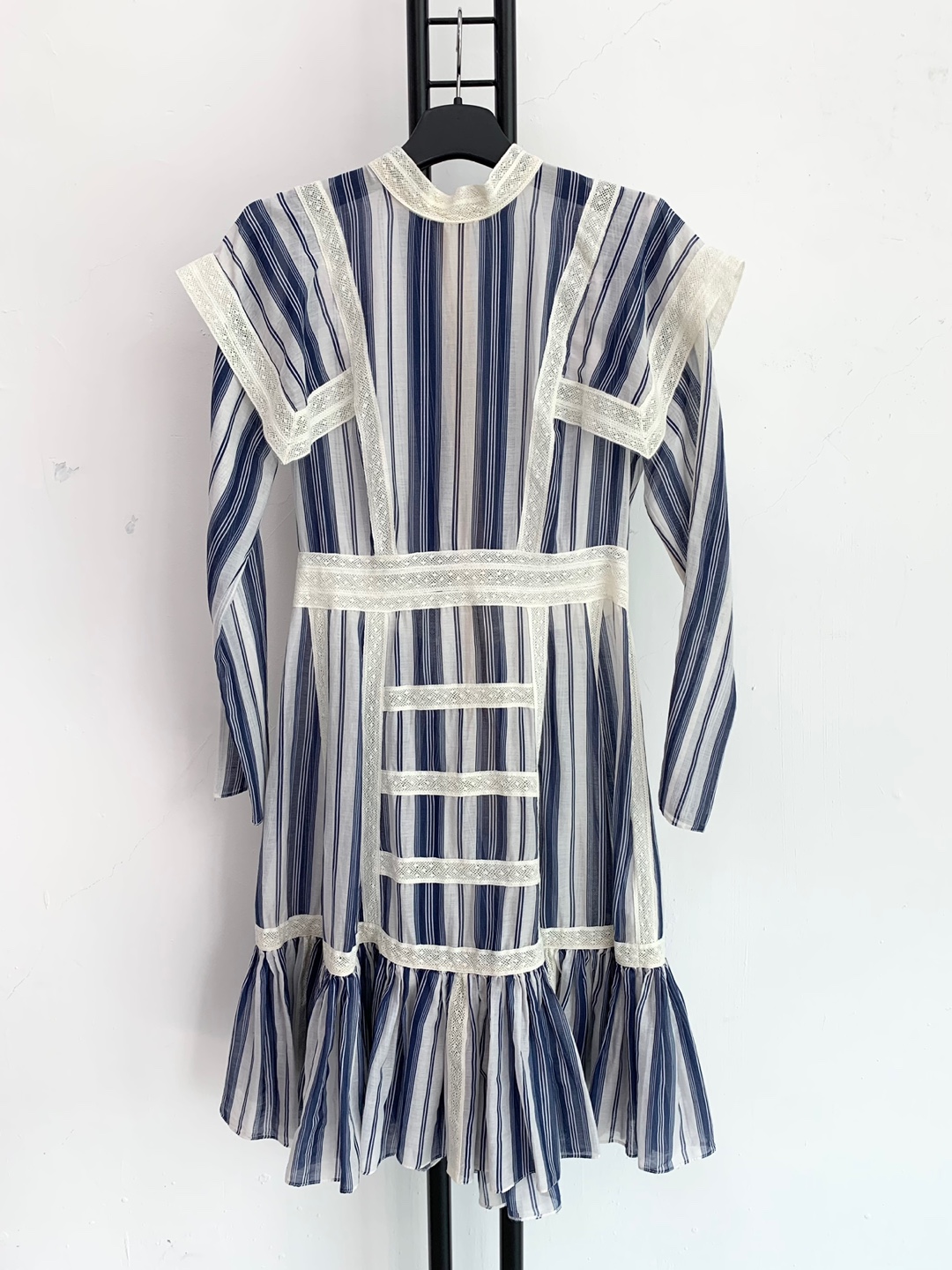 스트라이프 레이스 블루 여성 면 원피스 입니다