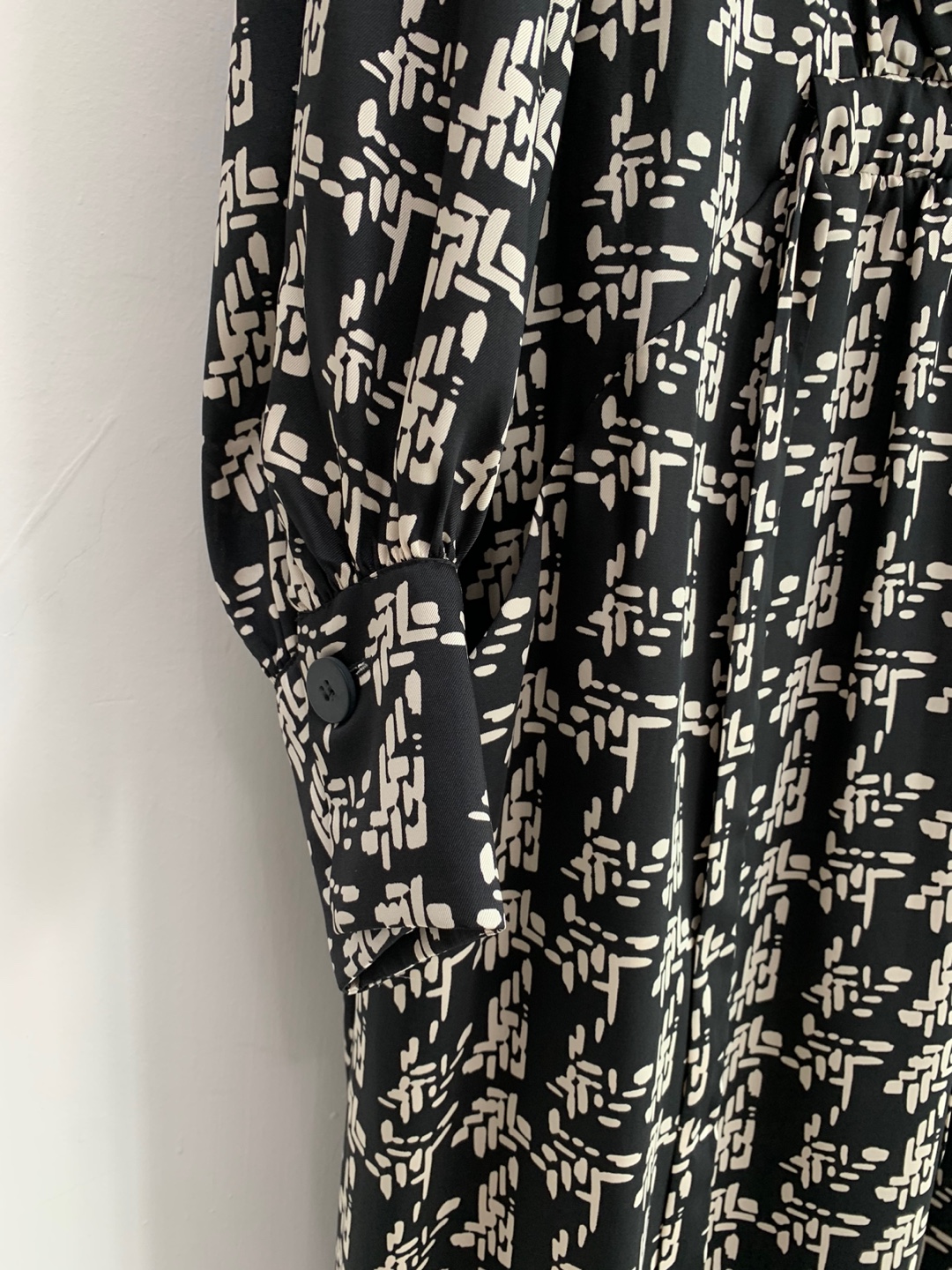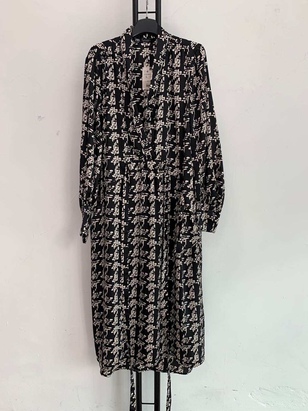 블랙 베이스에 감각적인 아이보리 패턴이 더해진 ZARA의 롱 원피스입니다.