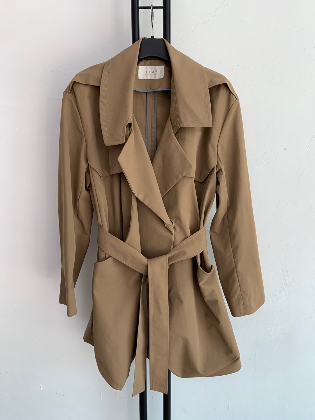 타임 TIME 카멜 여성 벨트 트렌치 정품입니다