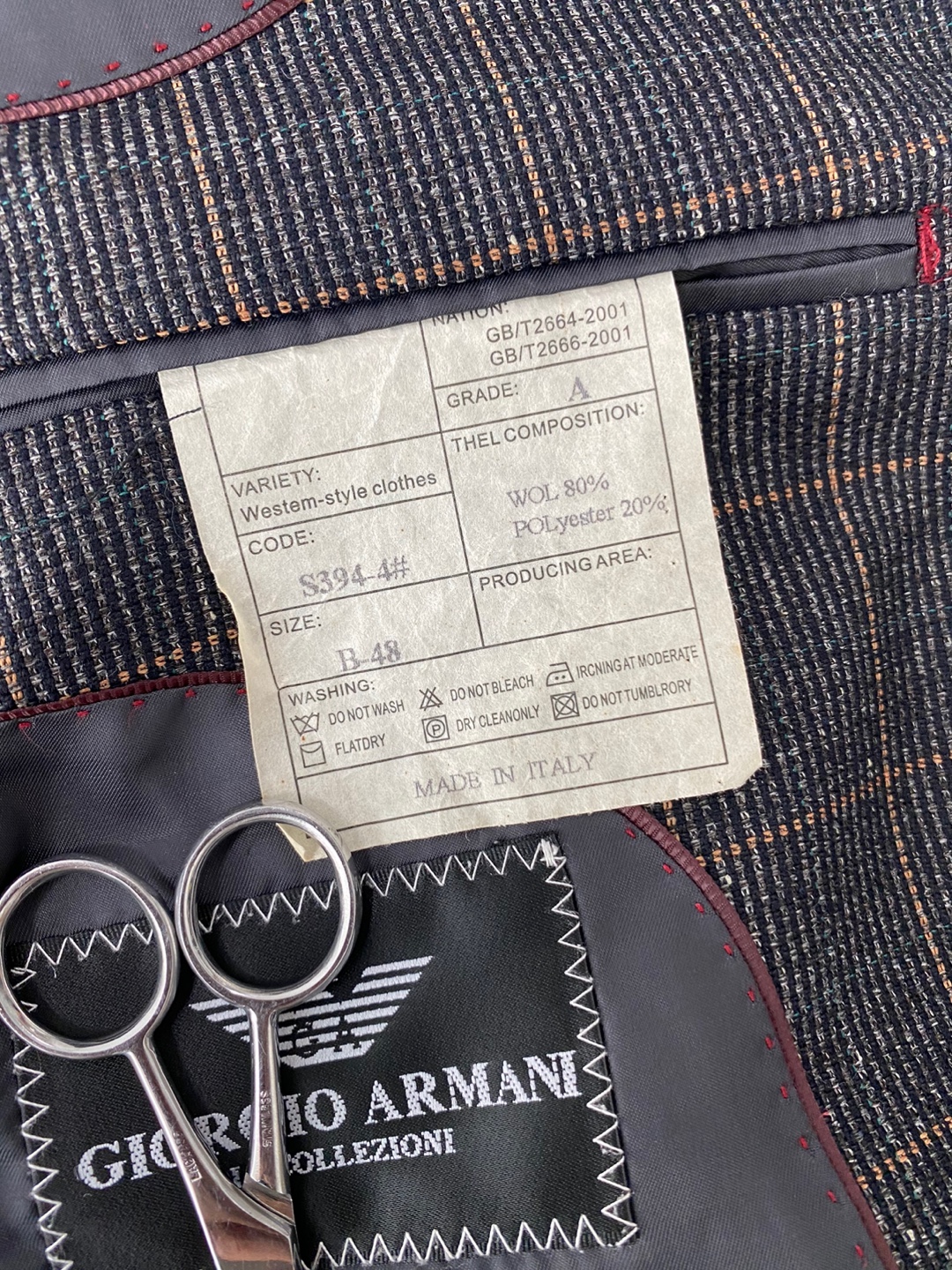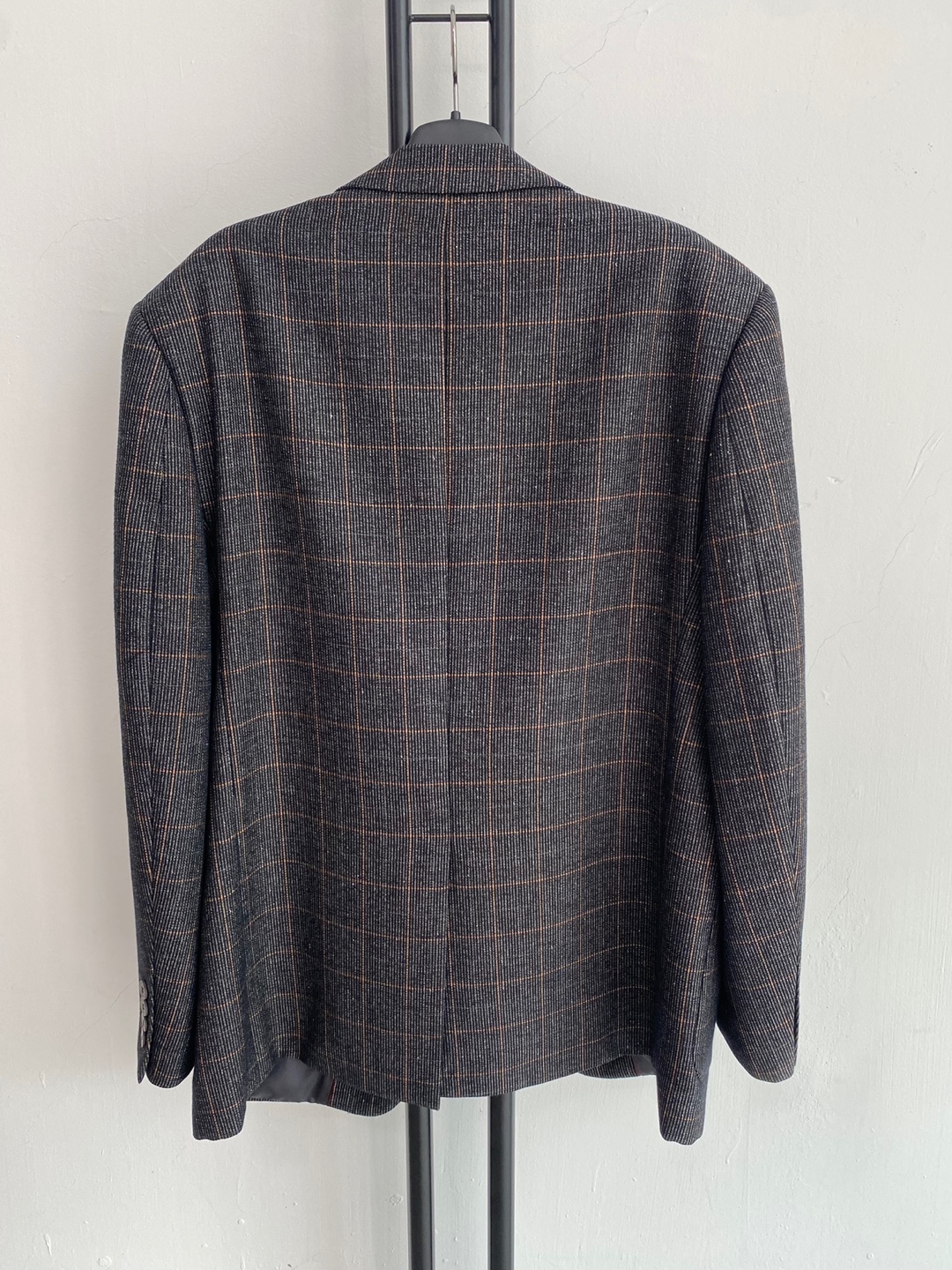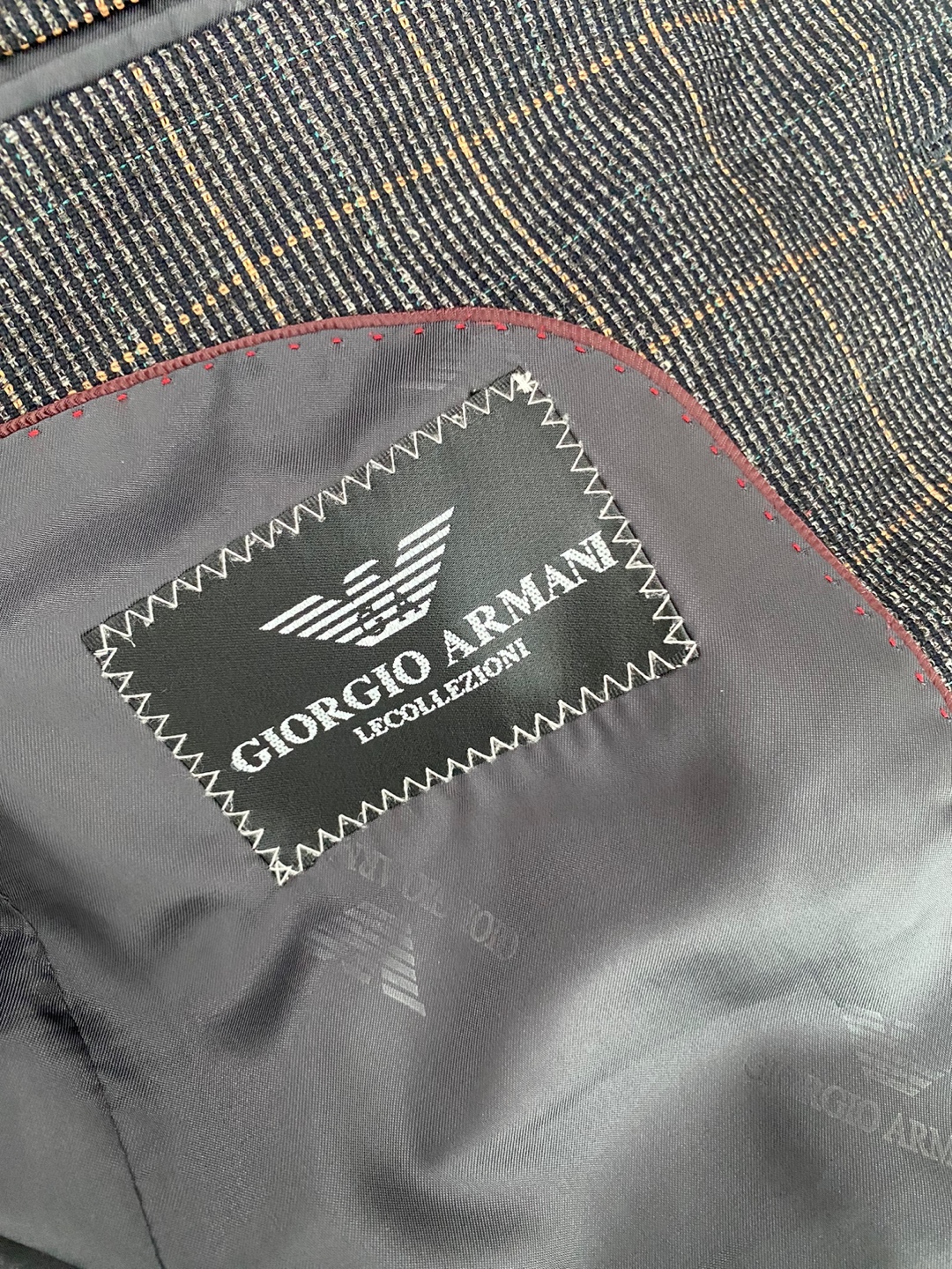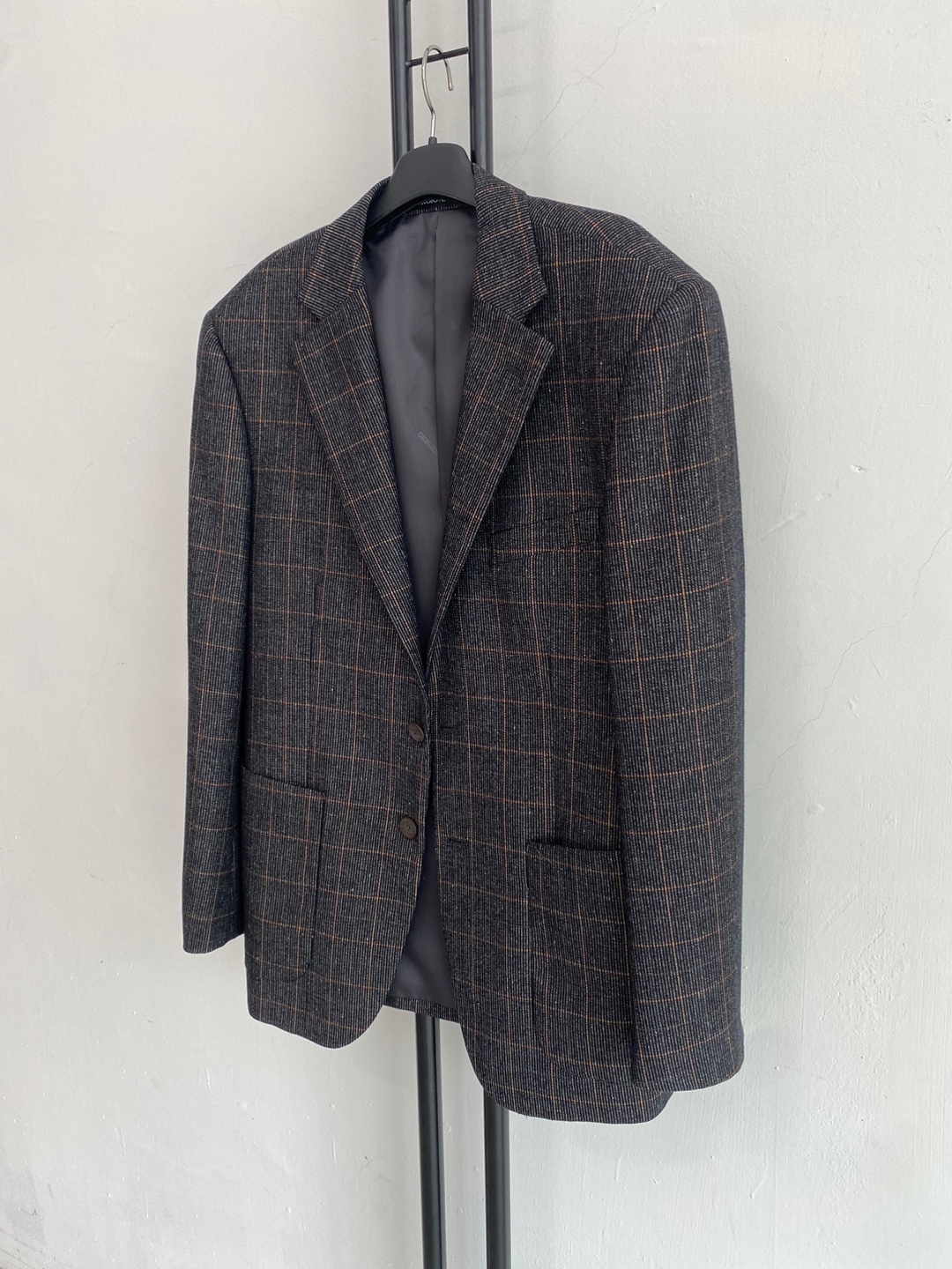 품격 있는 남성을 위한 이 자켓은 알마니 특유의 세련된 감각이 담긴 체크 패턴으로,