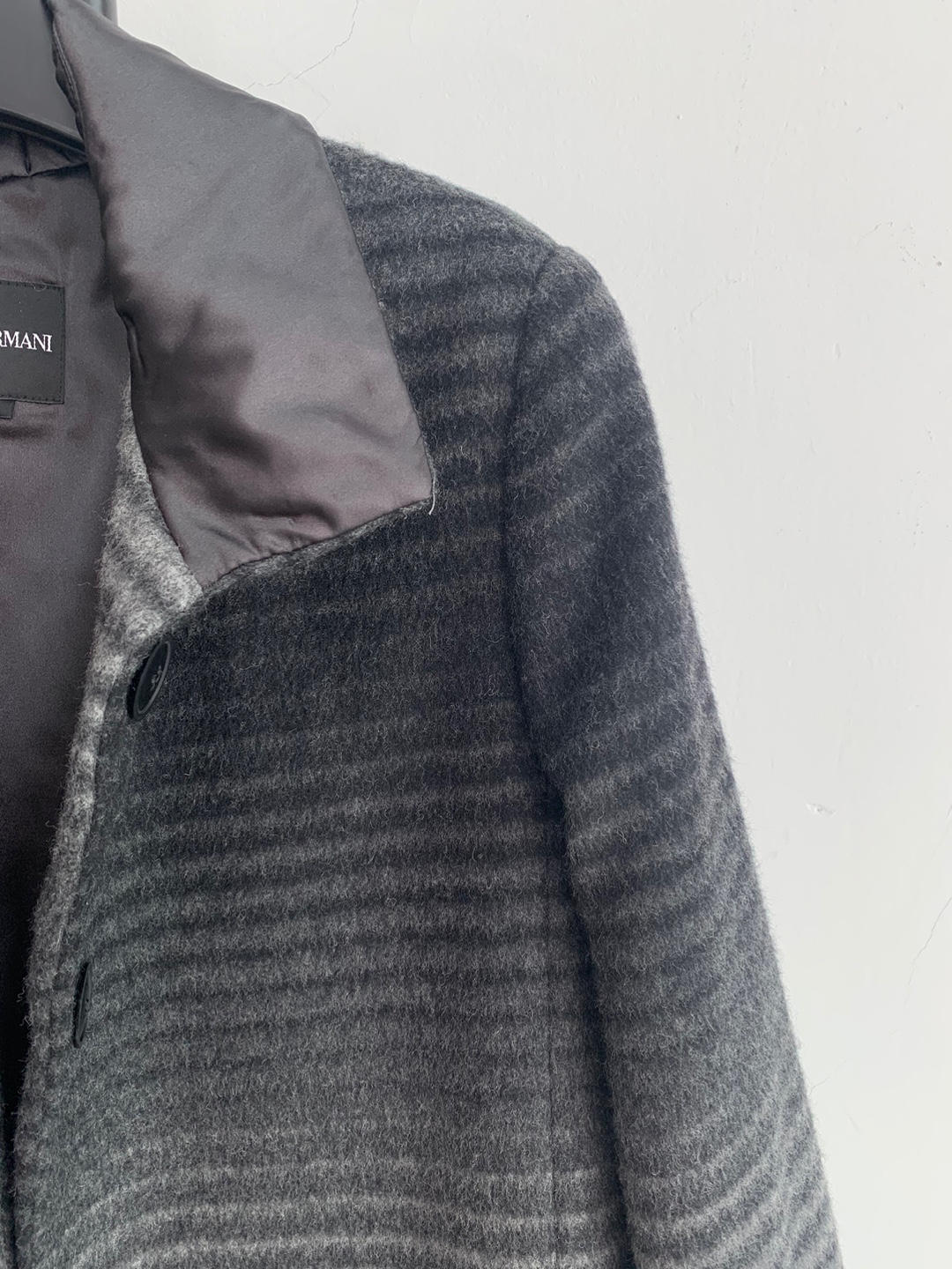 은은한 그라데이션 스트라이프 패턴이 돋보이는 엠포리오 알마니 코트입니다.