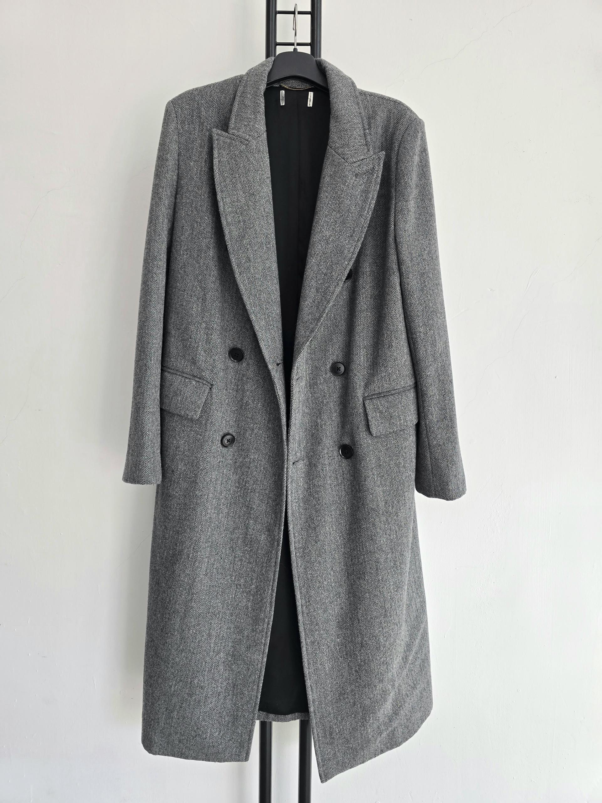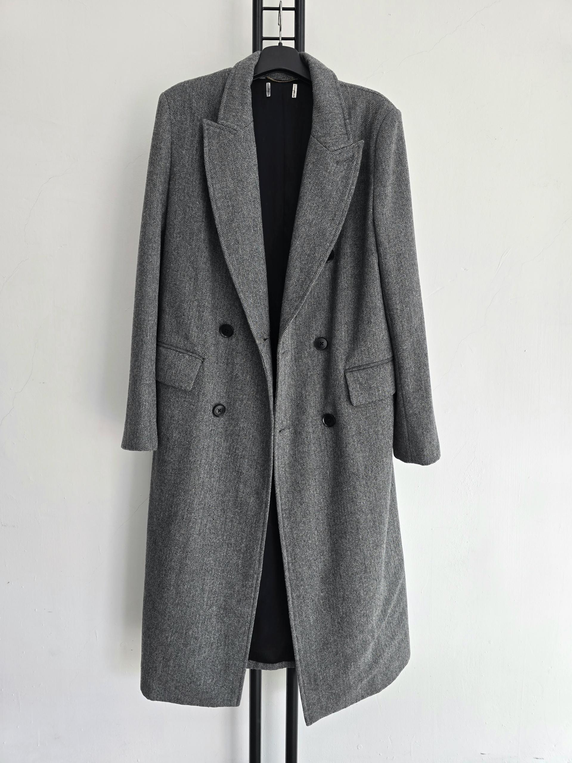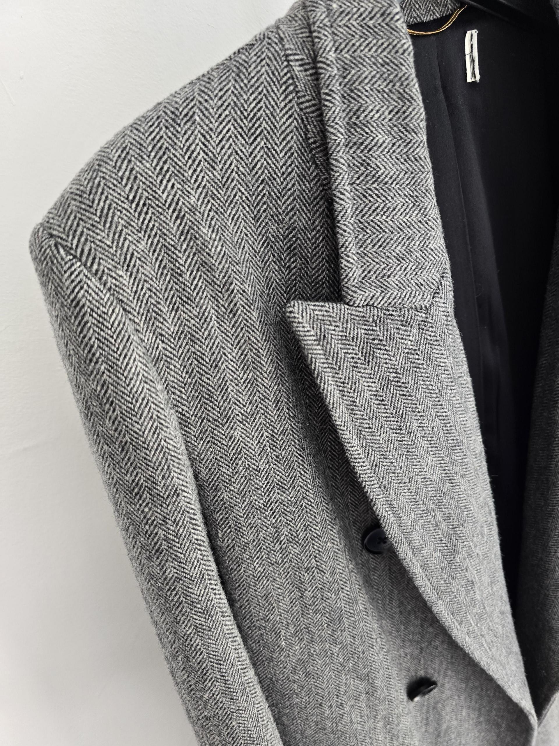 고급스러운 이태리 라나울100% 헤링본 롱코트입니다.