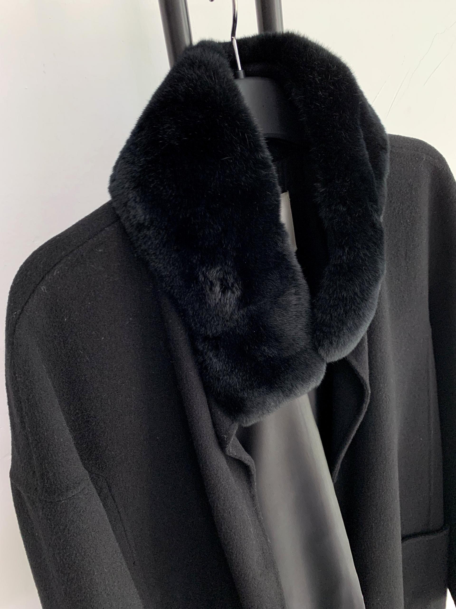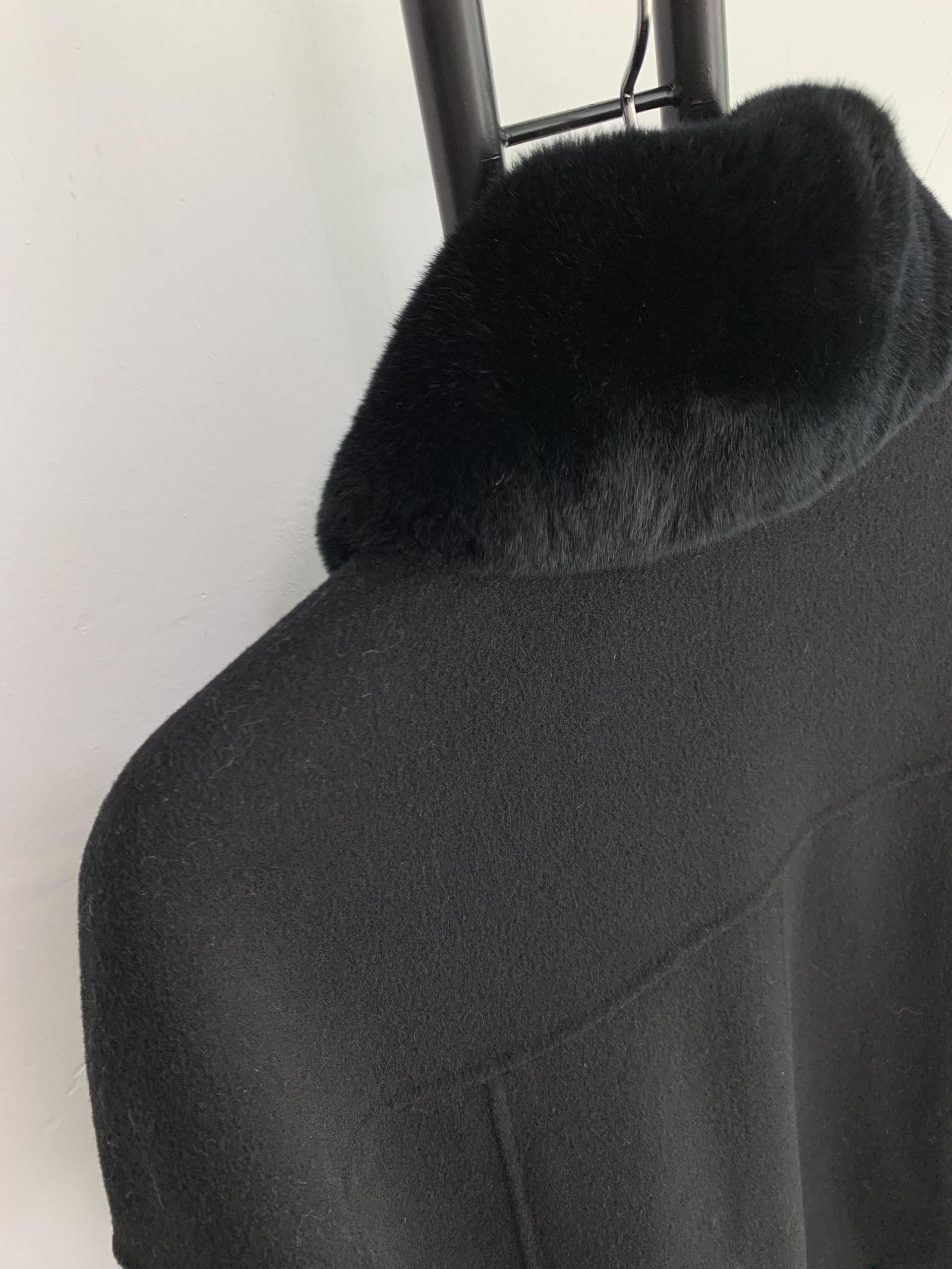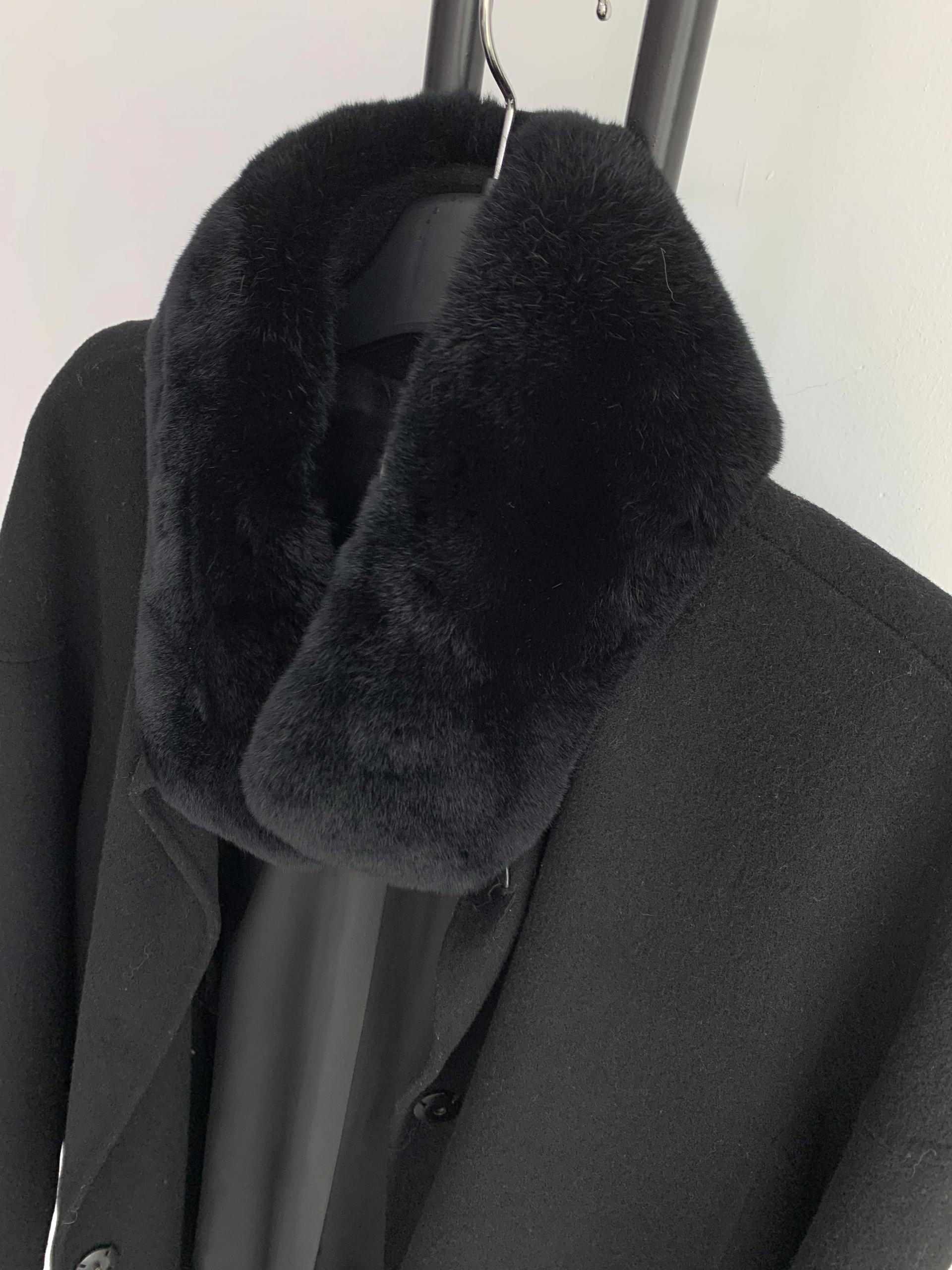 고급스러운 블랙 천연모피 토끼털 카라가 포인트입니다. 상태 좋은 코트 저렴하게 판매합니다.