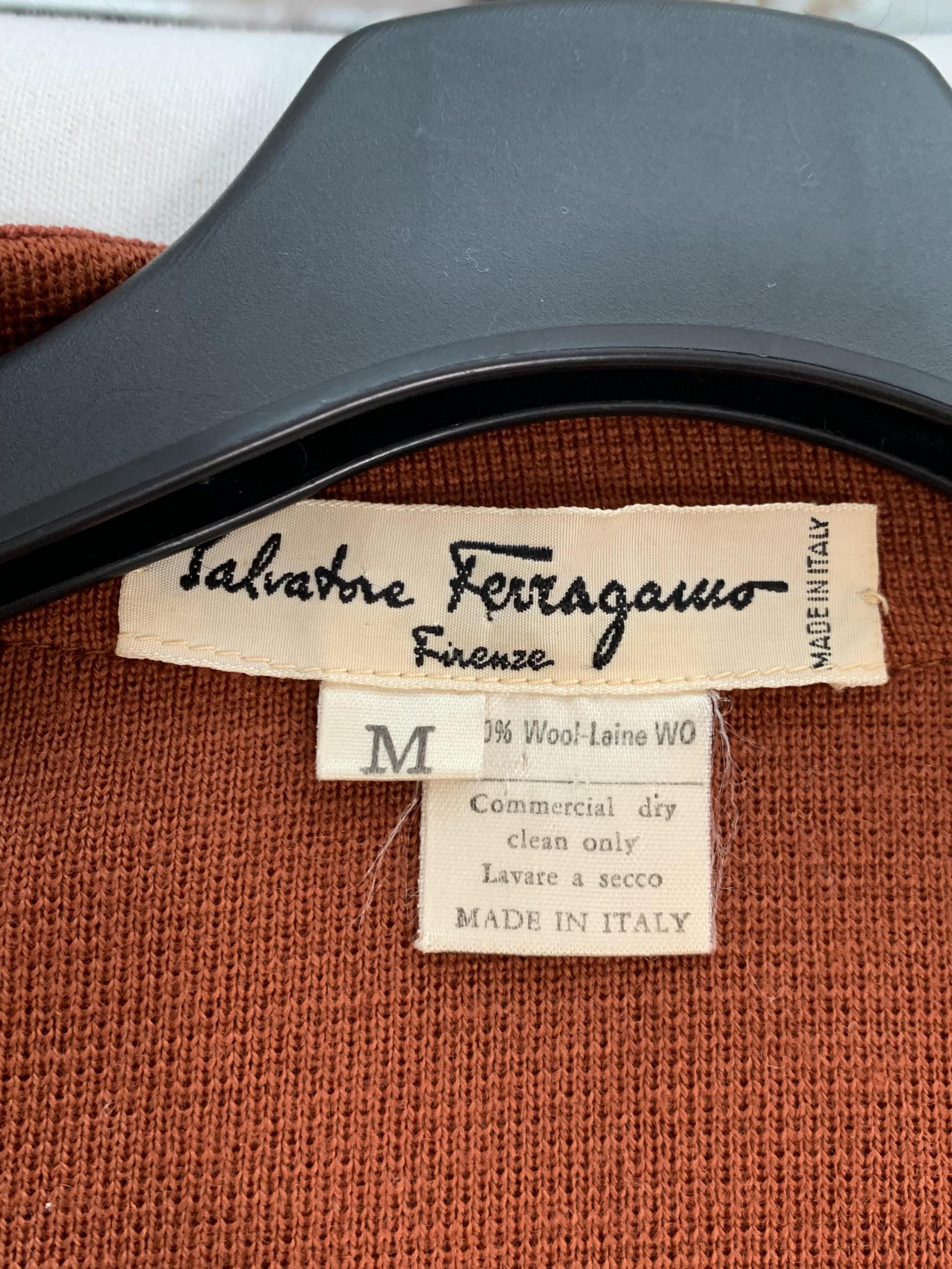 이태리 라나울 100% 소재로 고급스러움을 더했습니다. 브릭 컬러에 금장 단추가 포인트입니다. 정품입니다