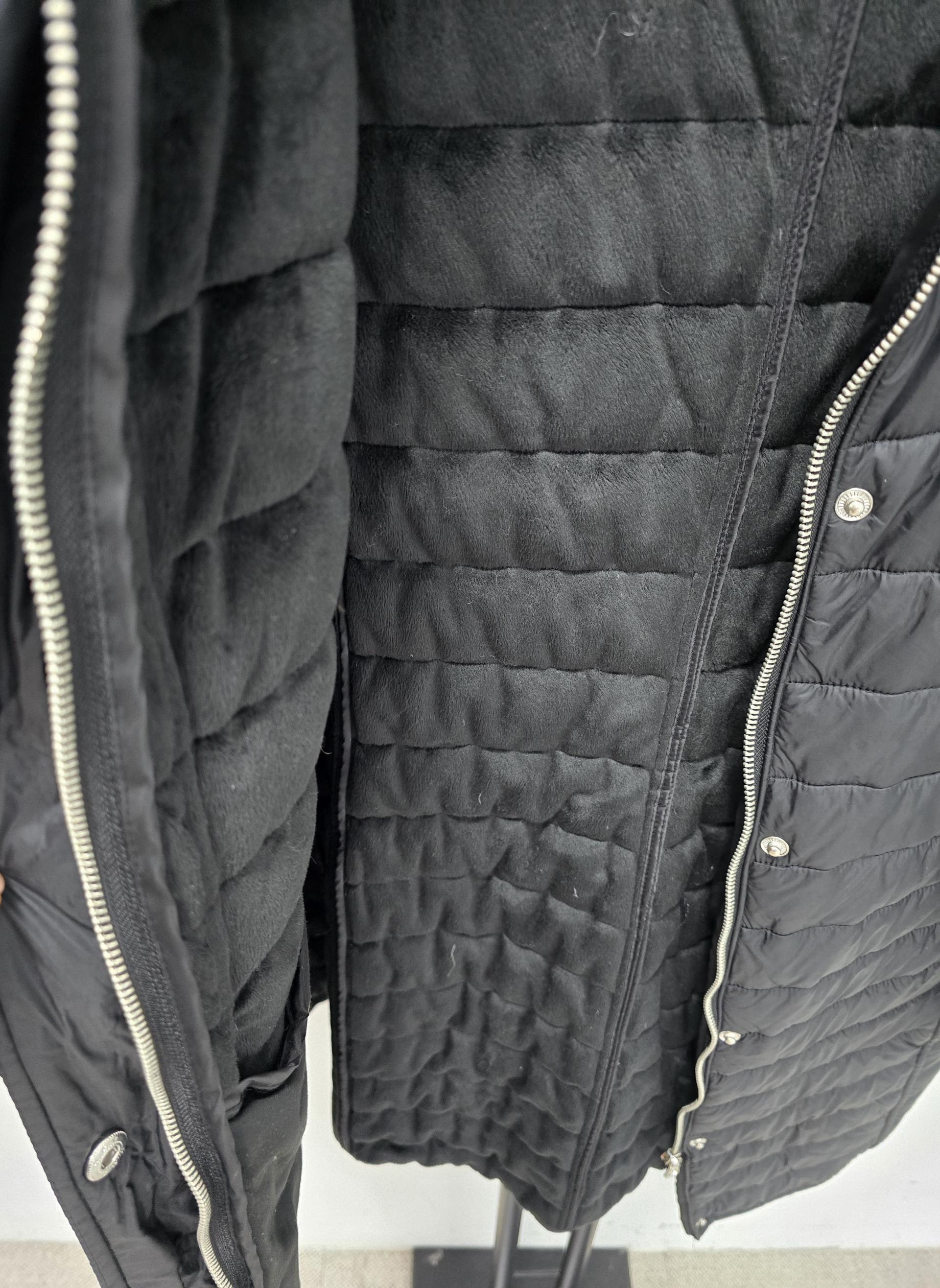검정색상에 넥 라인에 퍼 장식이 있고 내피 극세사라 고급스러우며