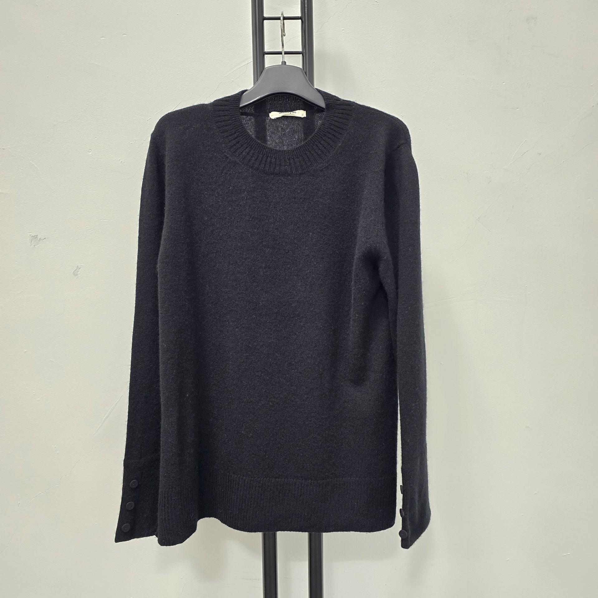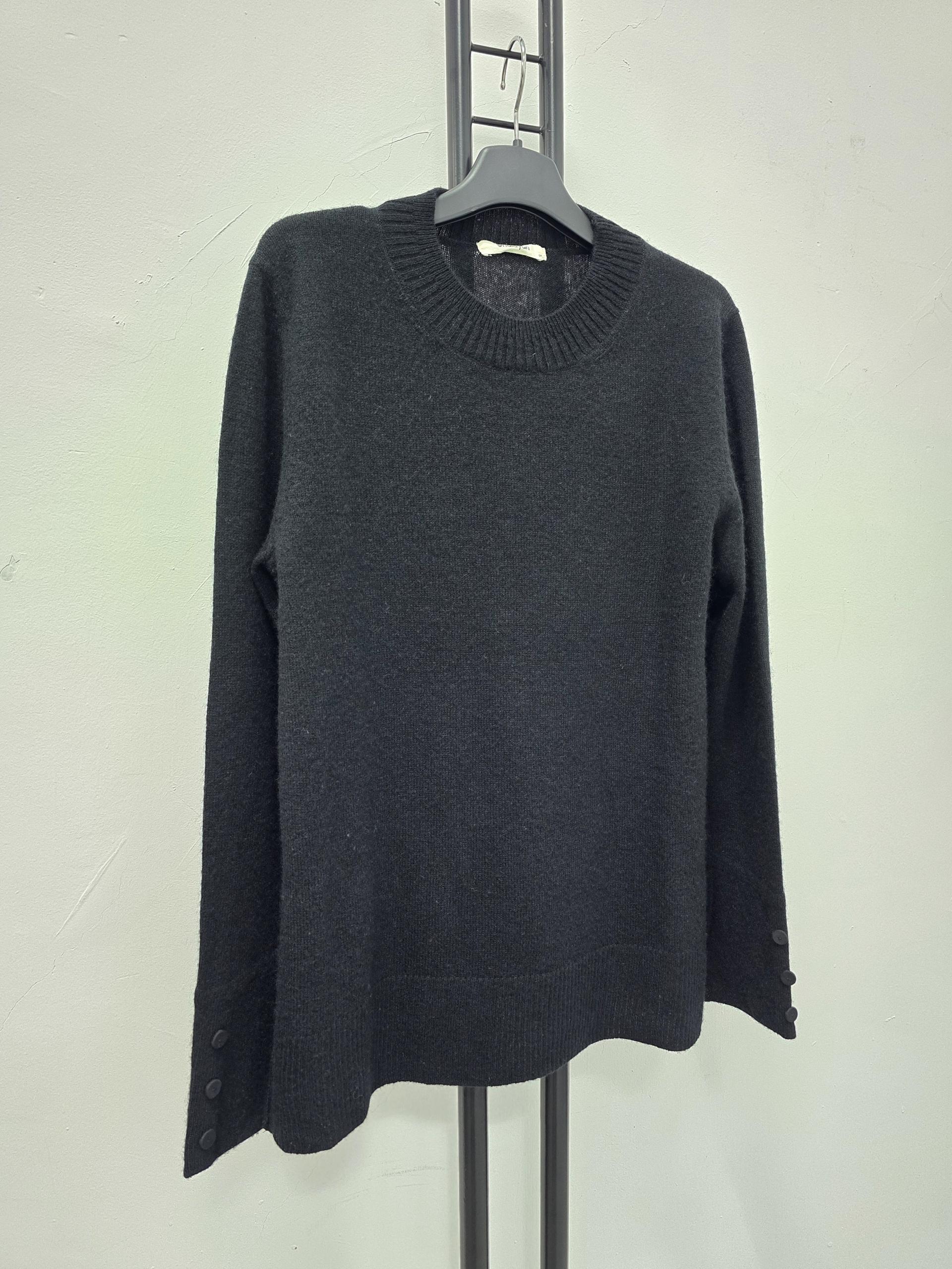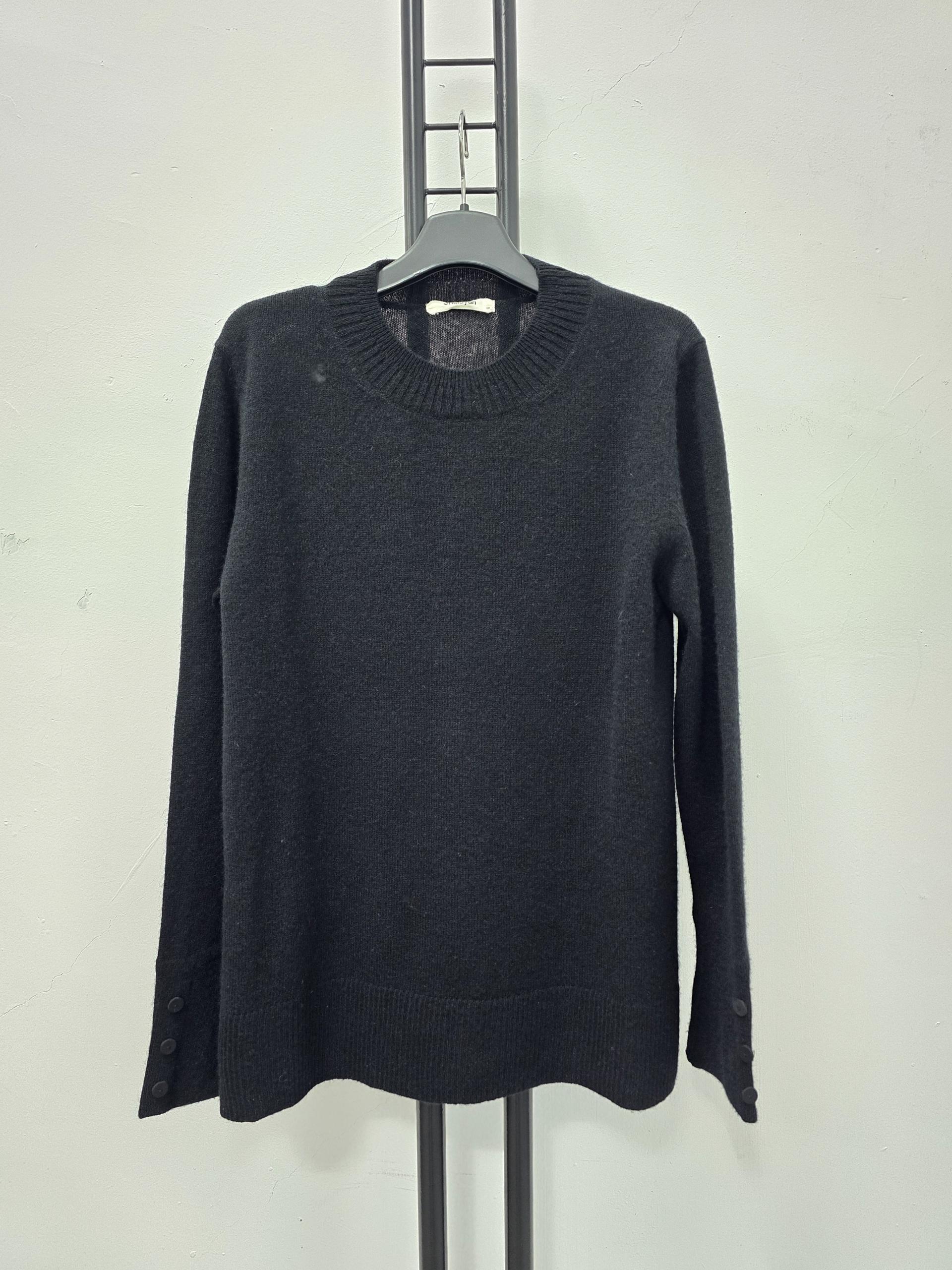 부드러운 블랙 캐시미어 100% 소재의 라운드넥 니트입니다.