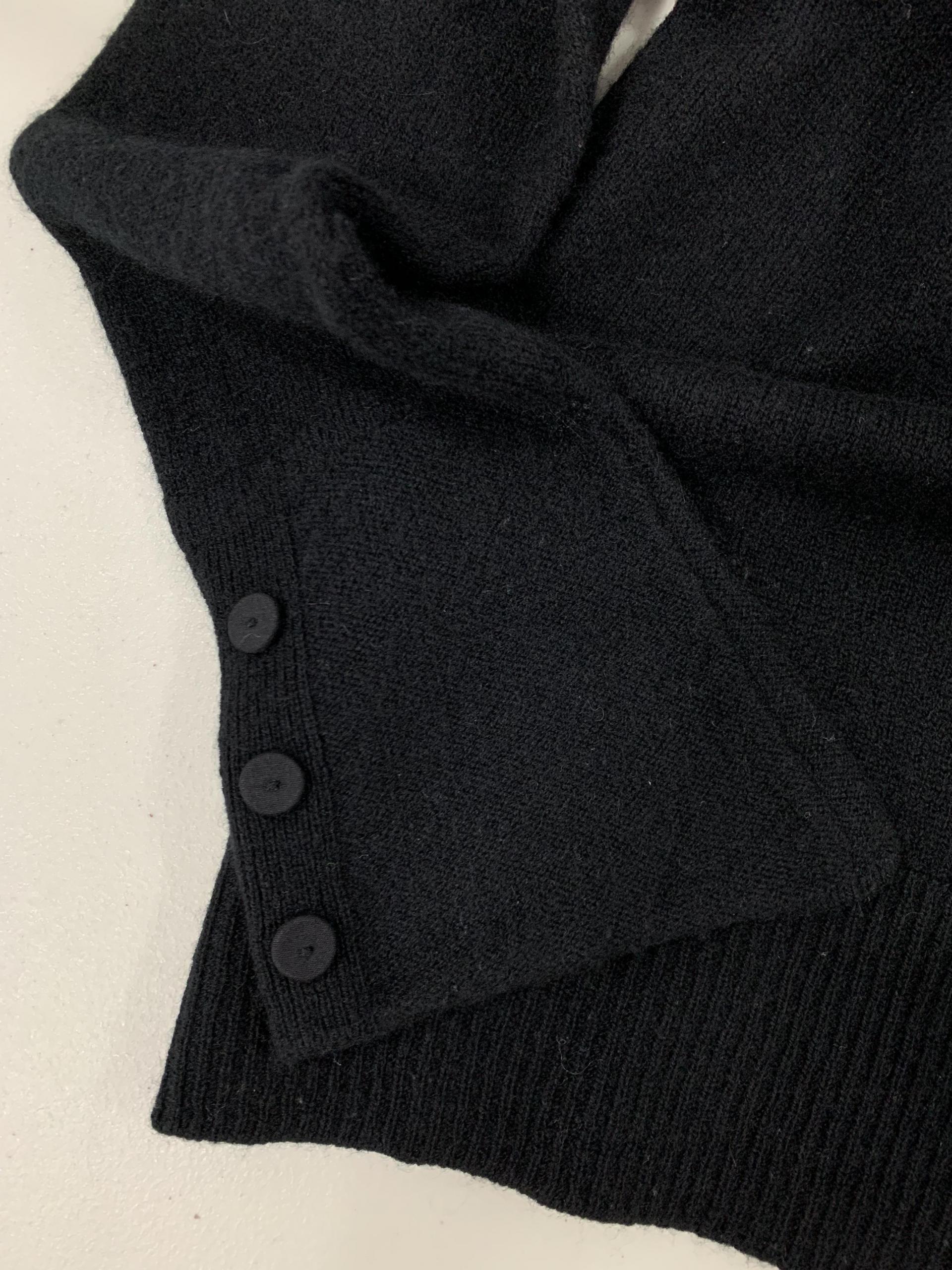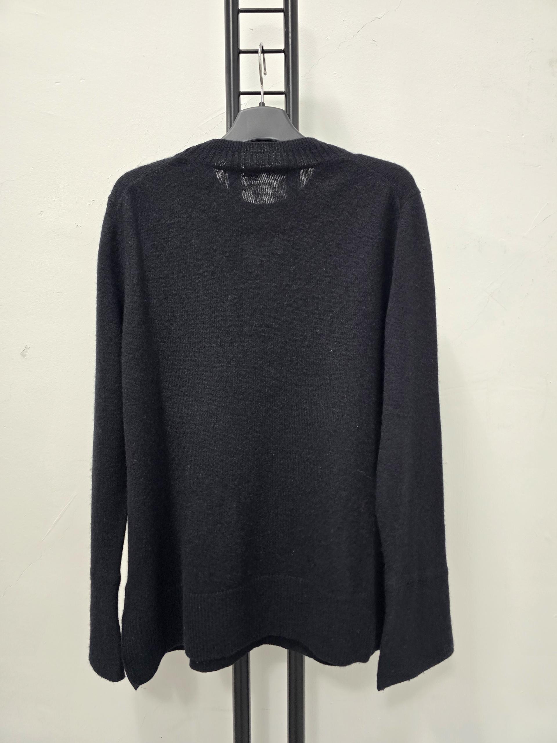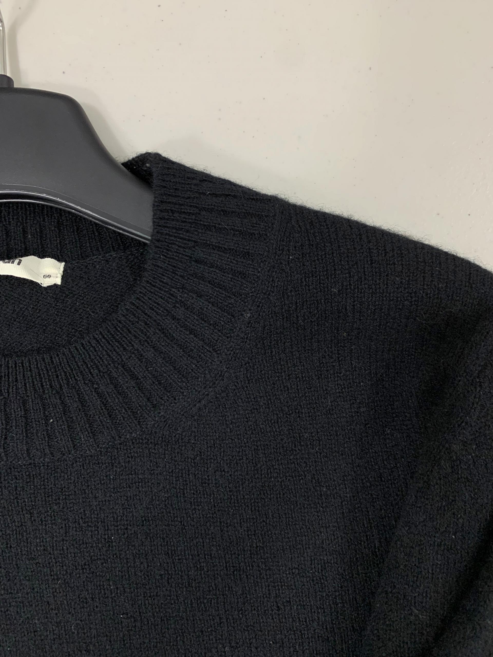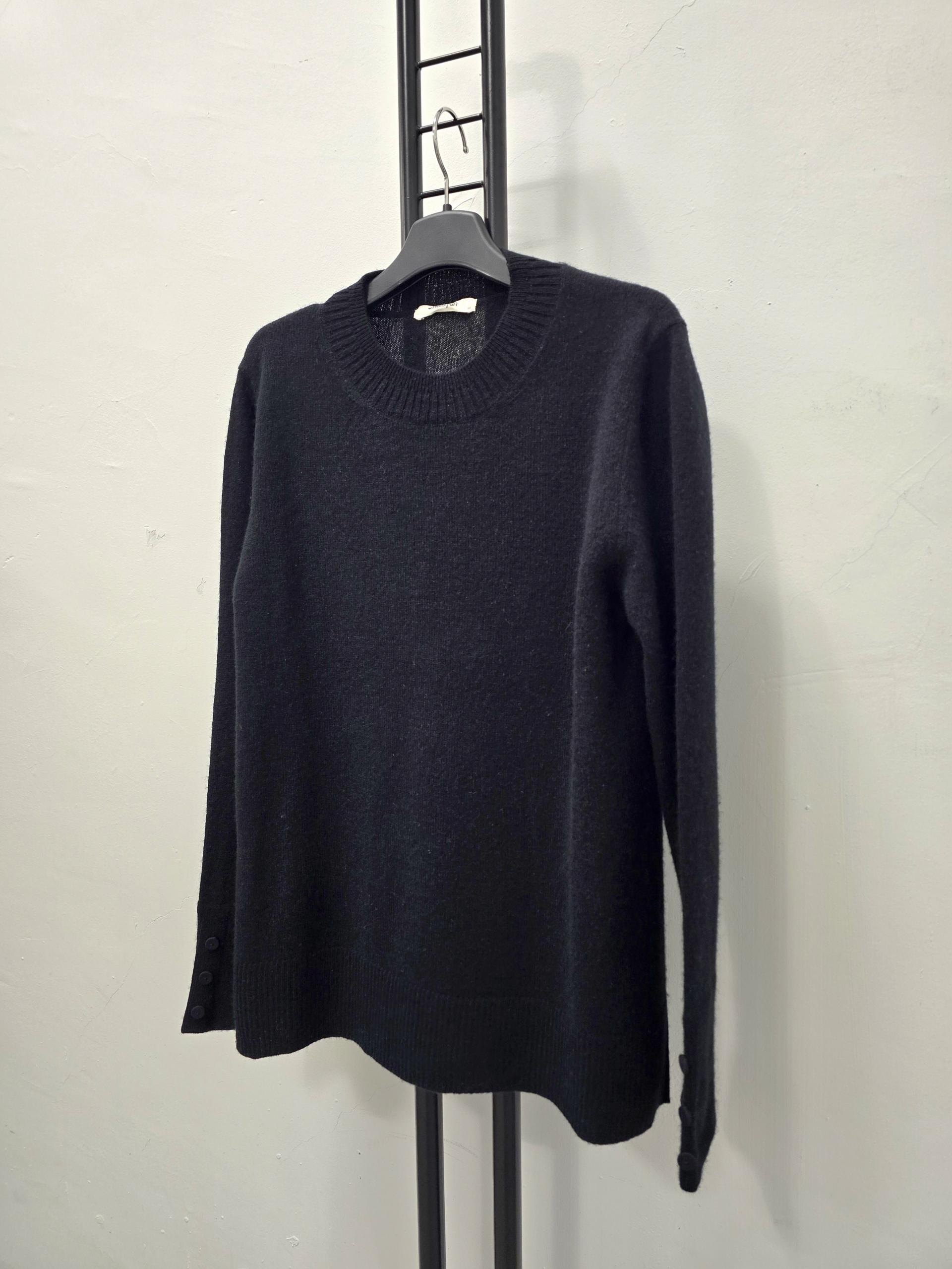 부드러운 블랙 캐시미어 100% 소재의 라운드넥 니트입니다.