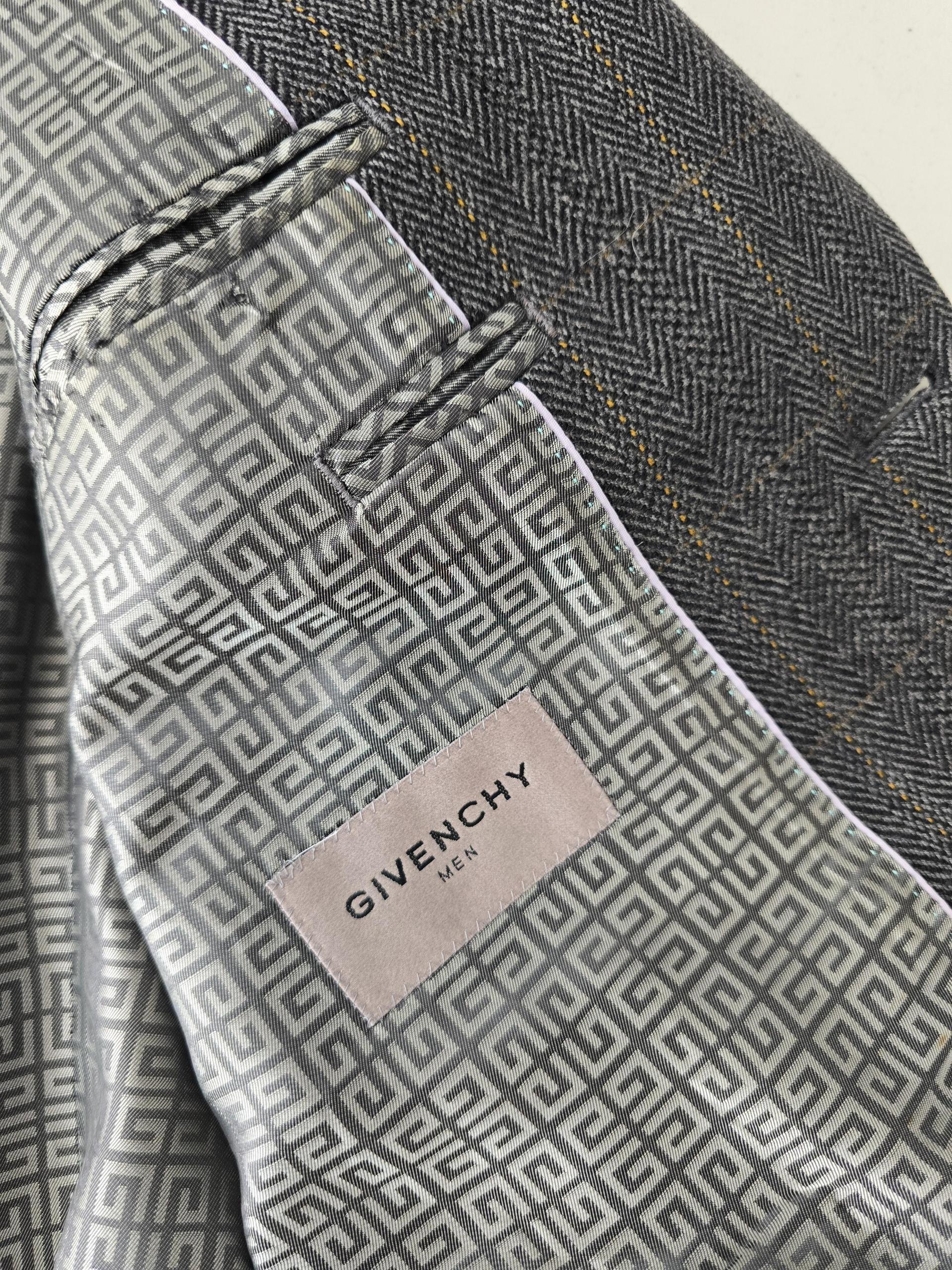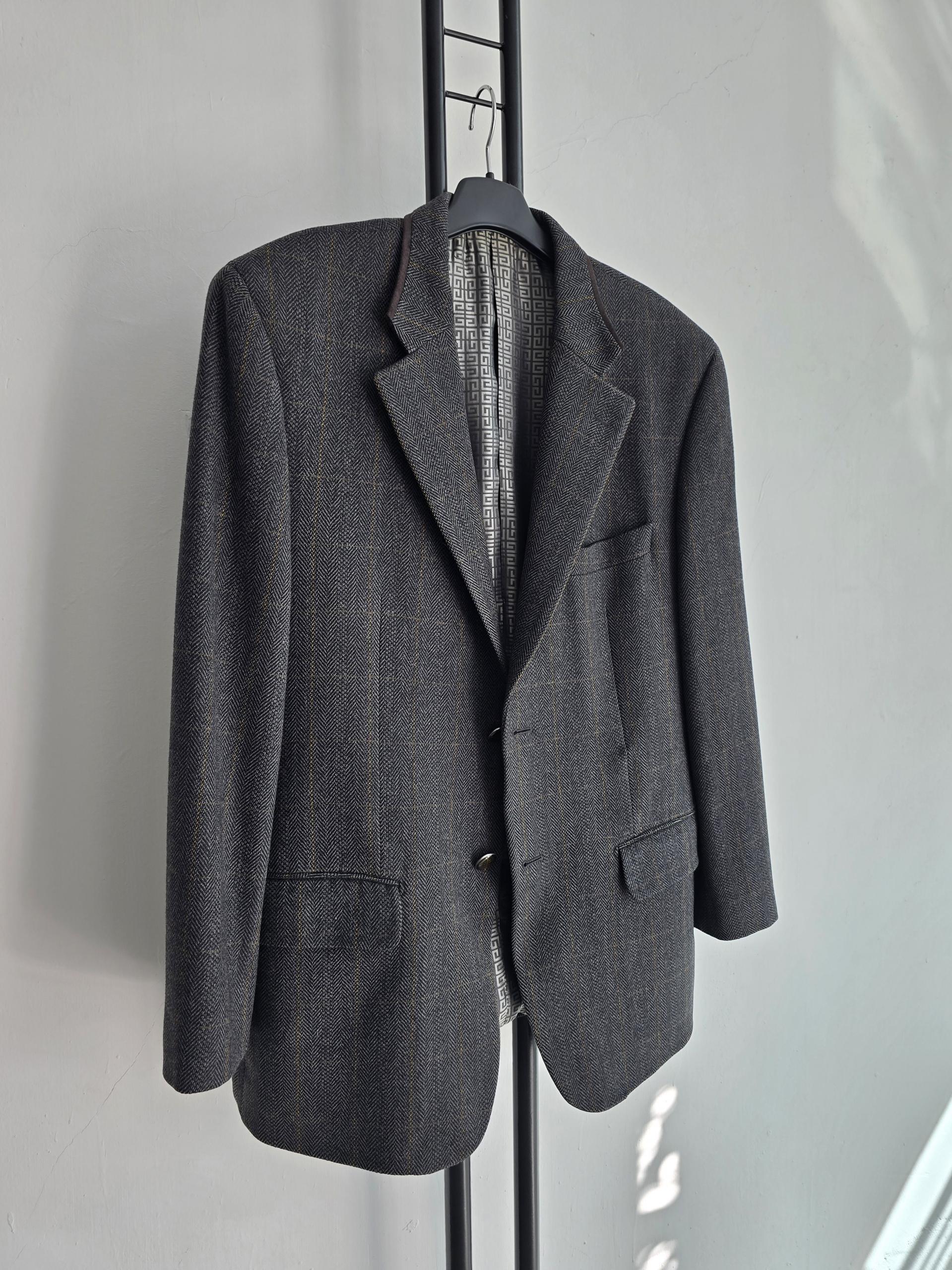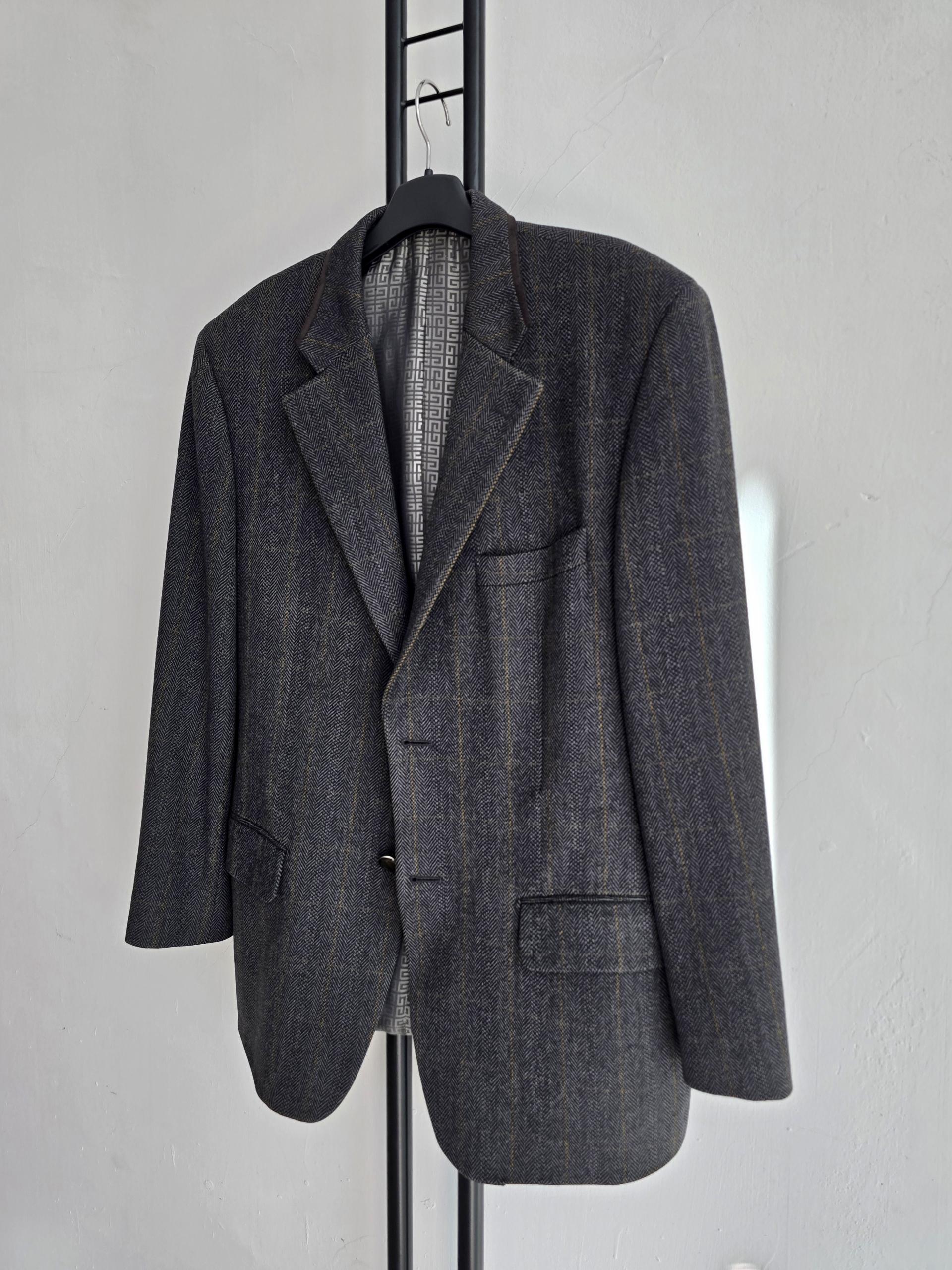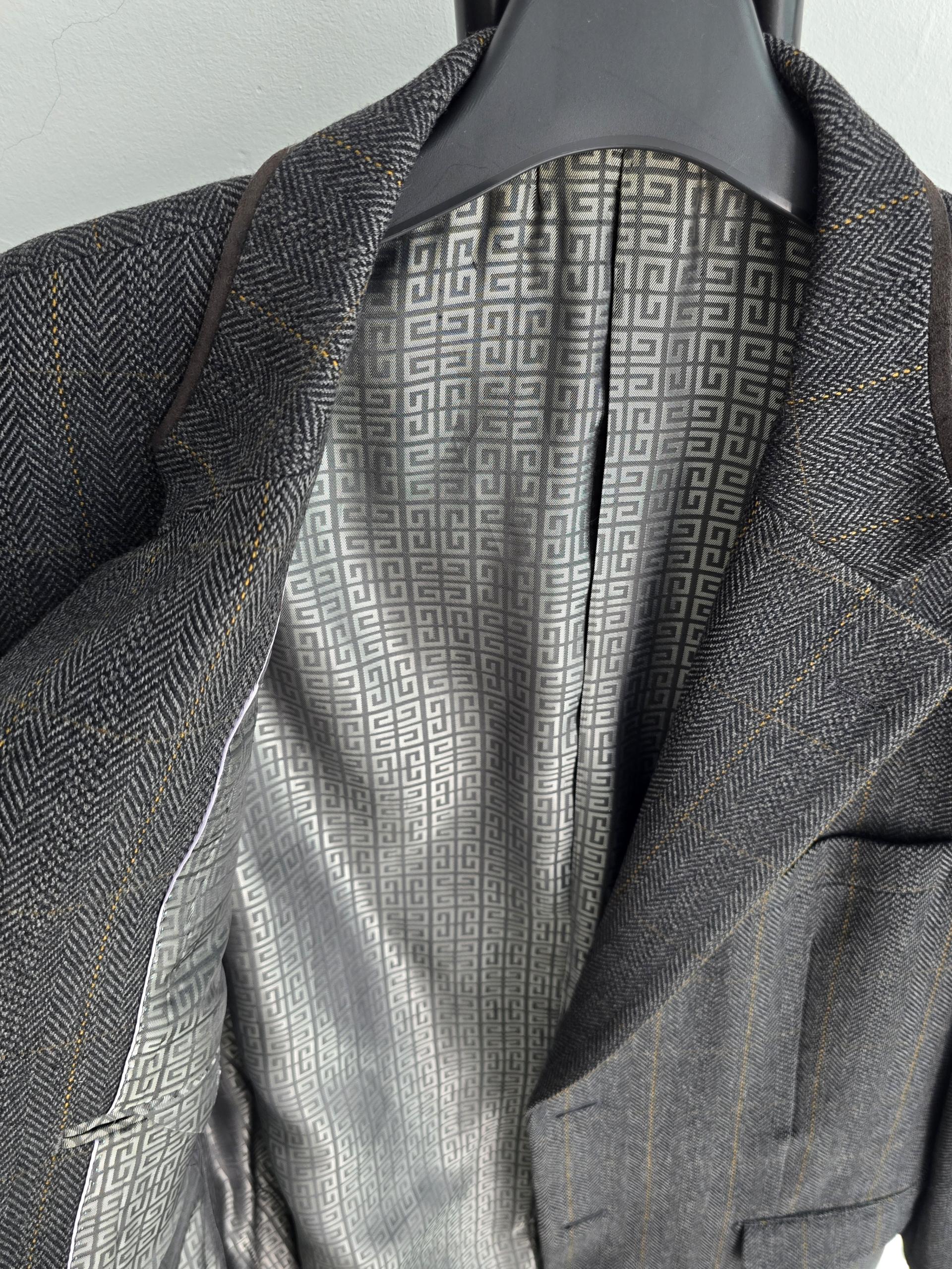 고급스러운 헤링본 패턴의 울 자켓으로, 클래식한 실루엣과 견고한 테일러링이 돋보입니다.