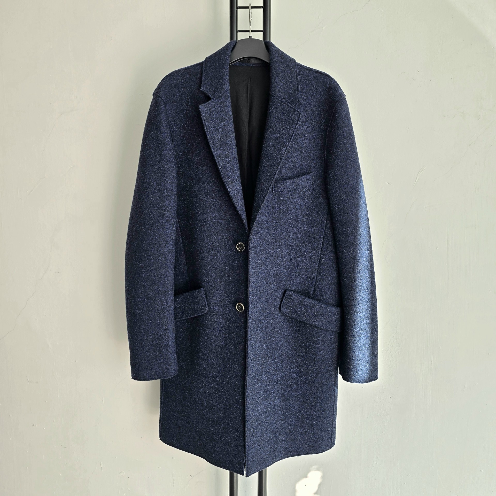 정품 한섬 타임 남성 모직 코트 네이비 색상입니다.