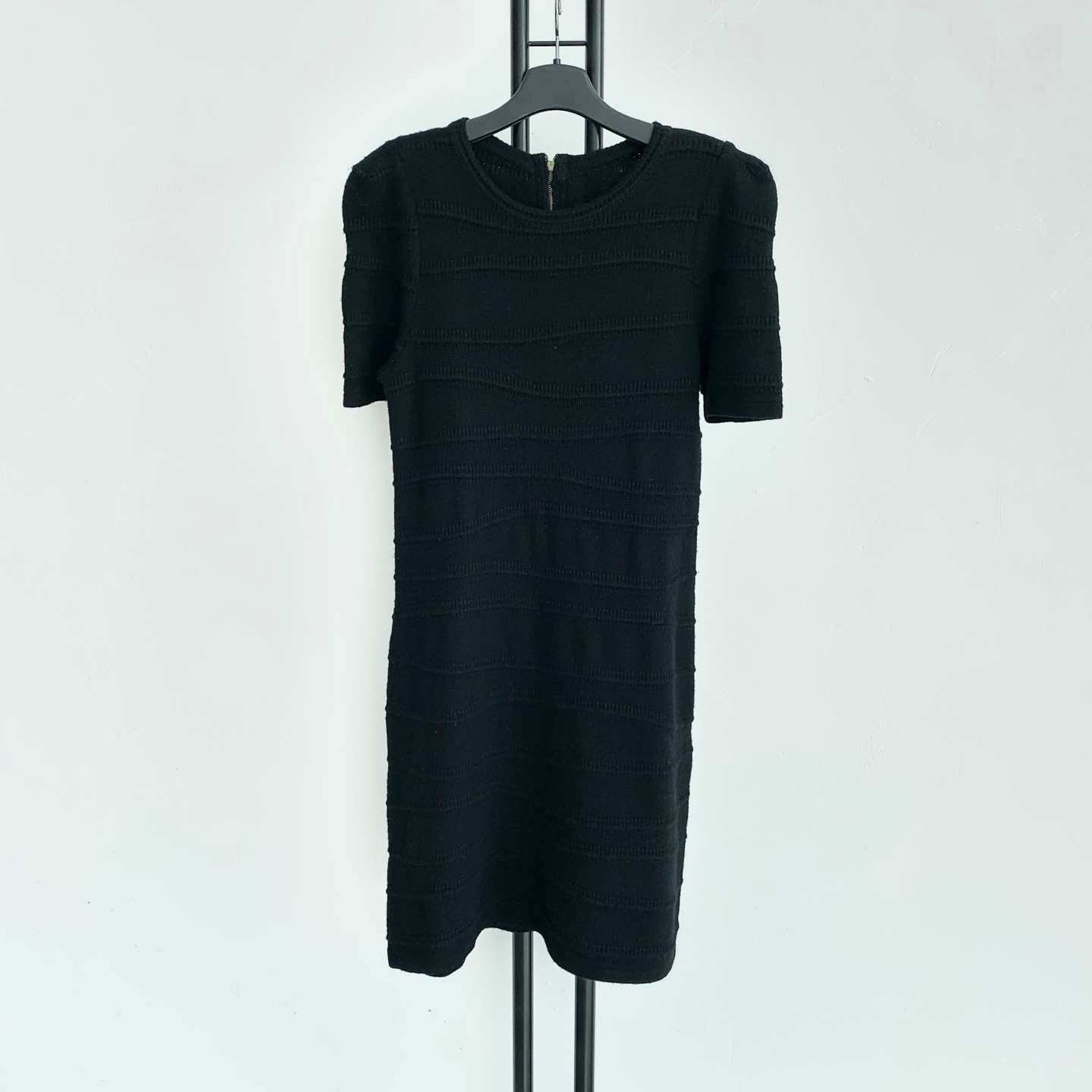 블랙 색상의 시스템 니트 반팔 원피스 정품 입니다.