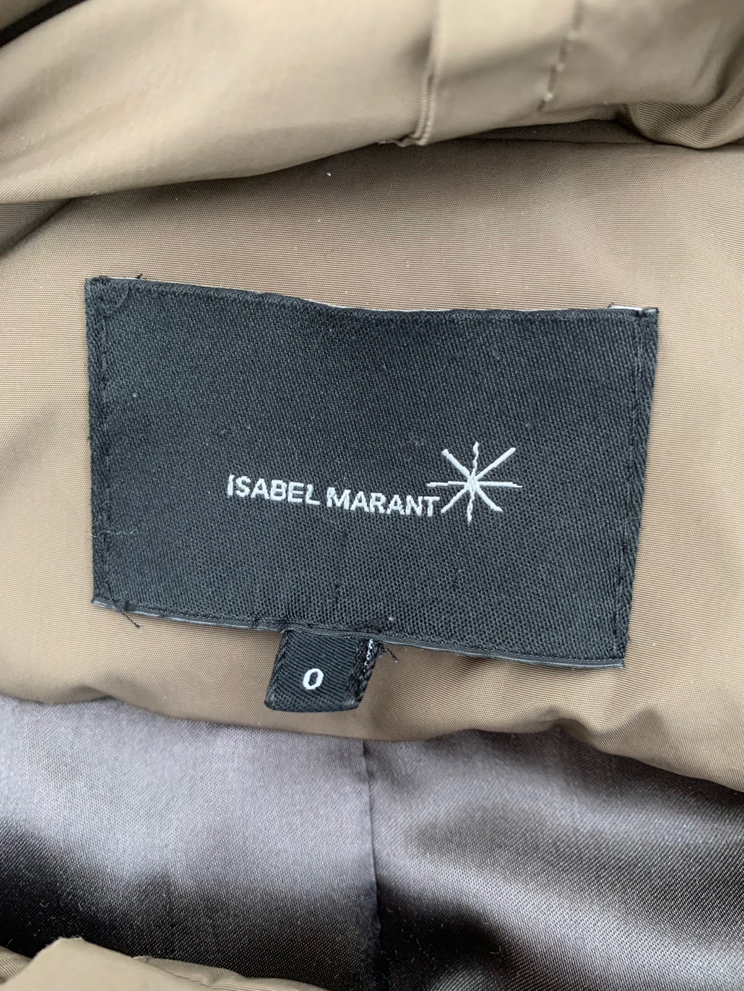 이자벨마랑 후드 롱 코트 카키색상입니다.