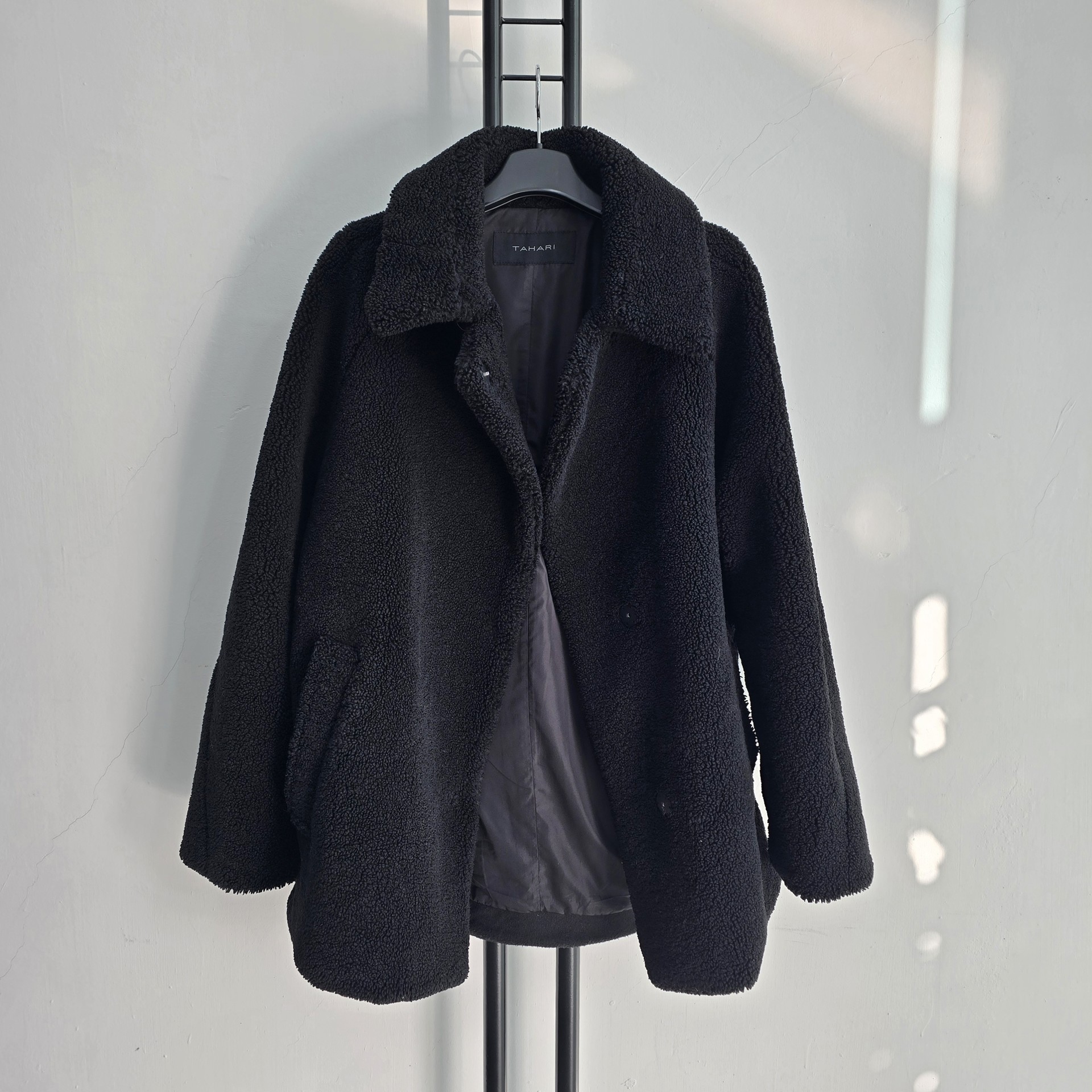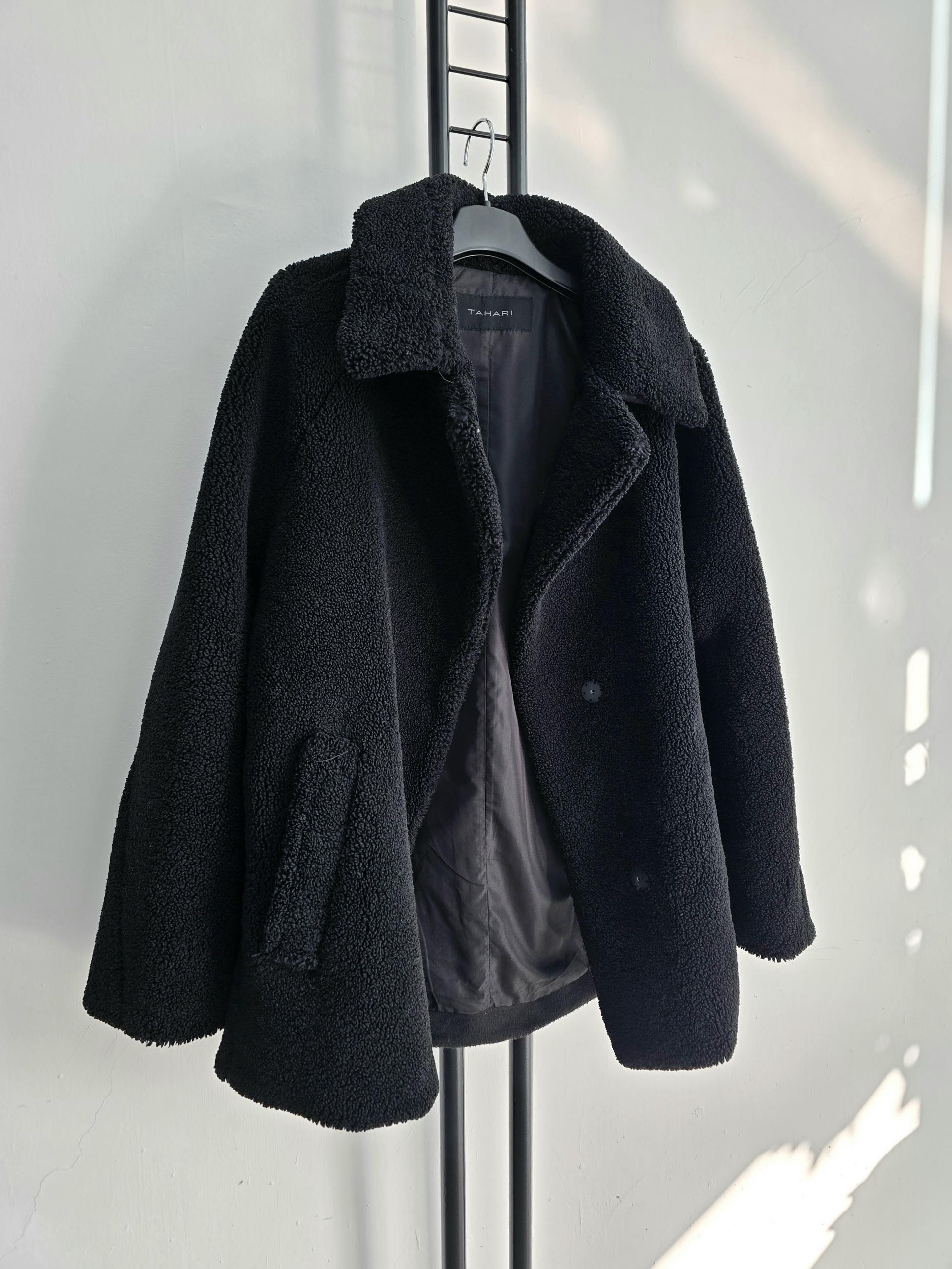 타하리 뽀글이 부클 코트 블랙색상입니다.