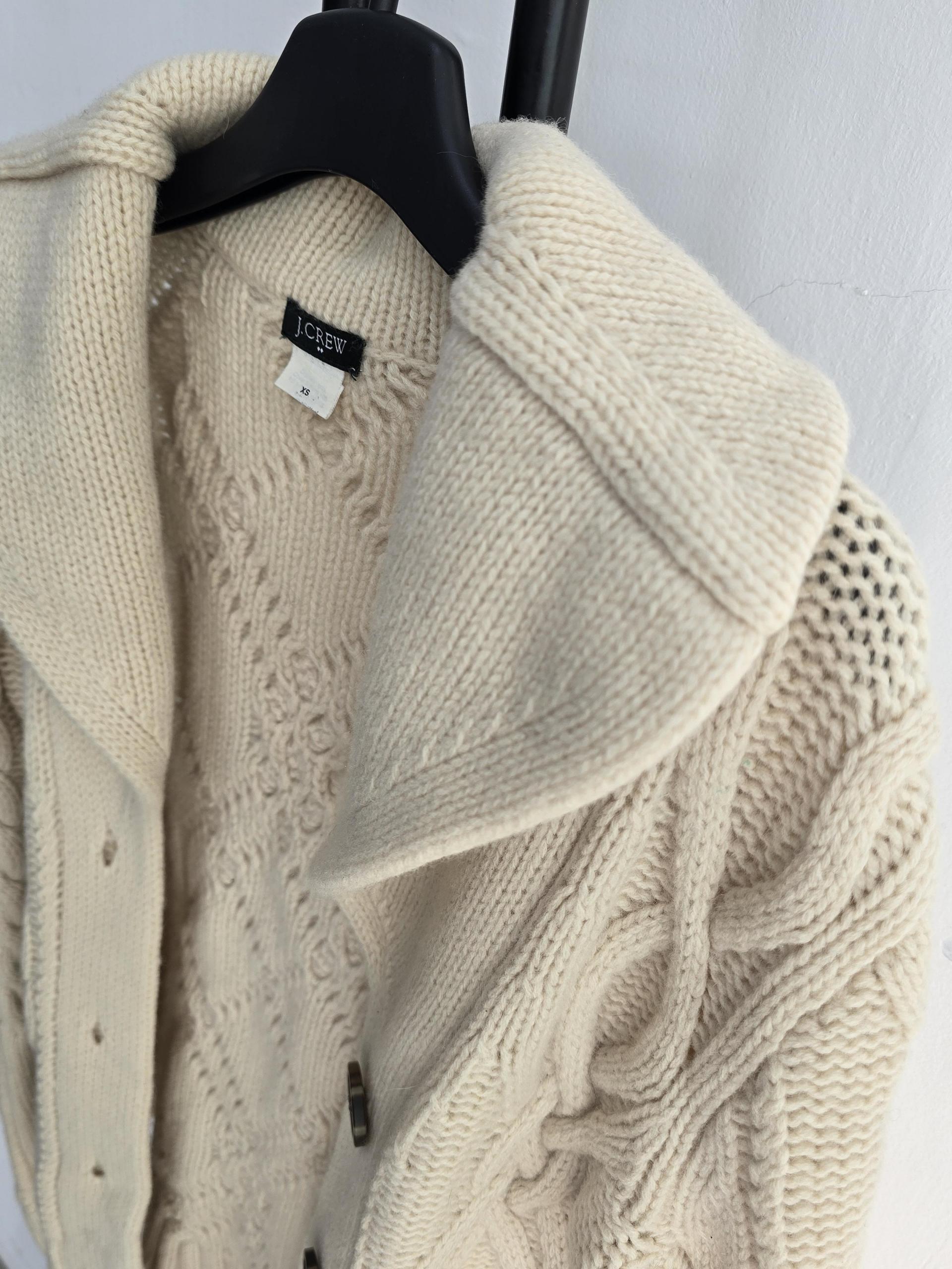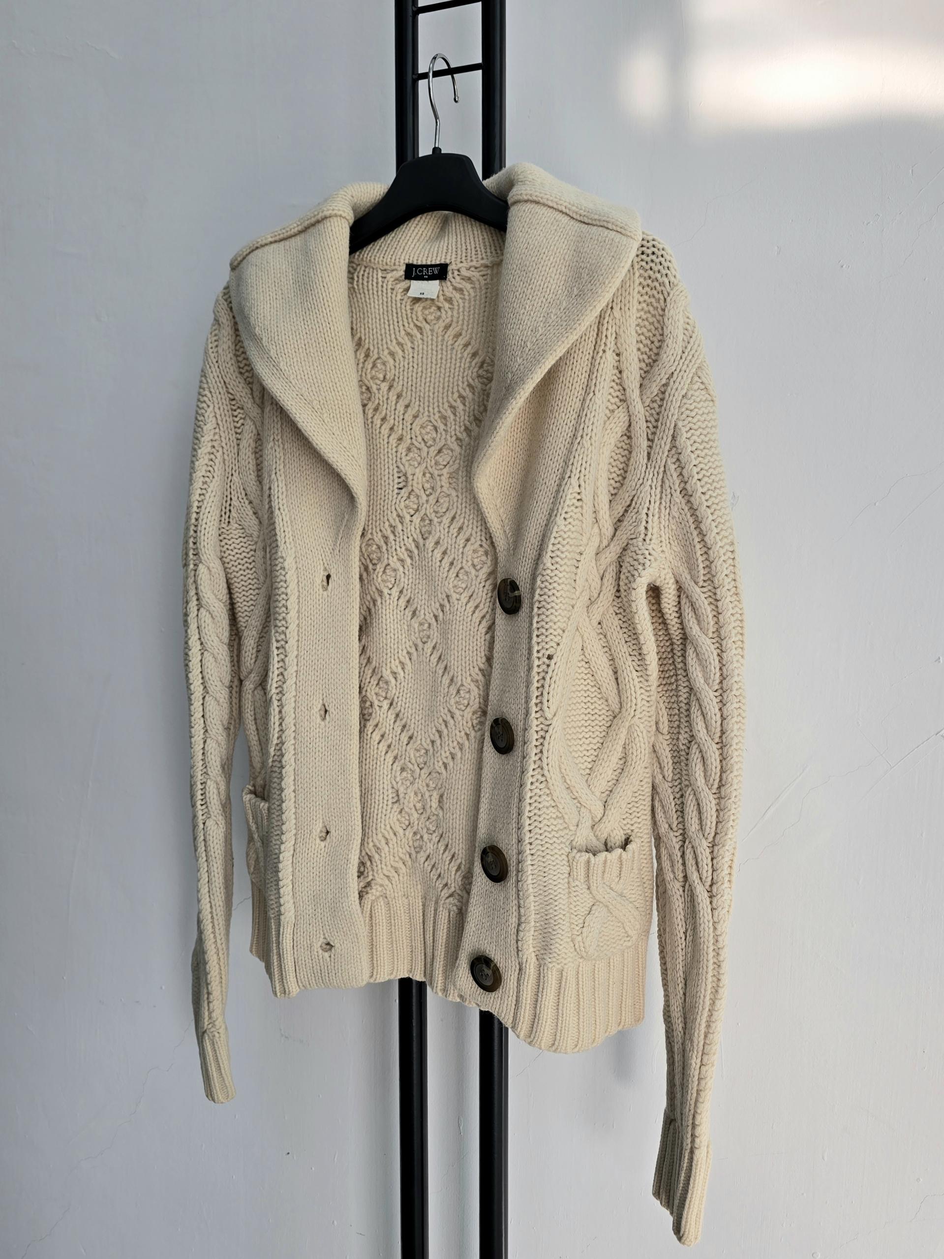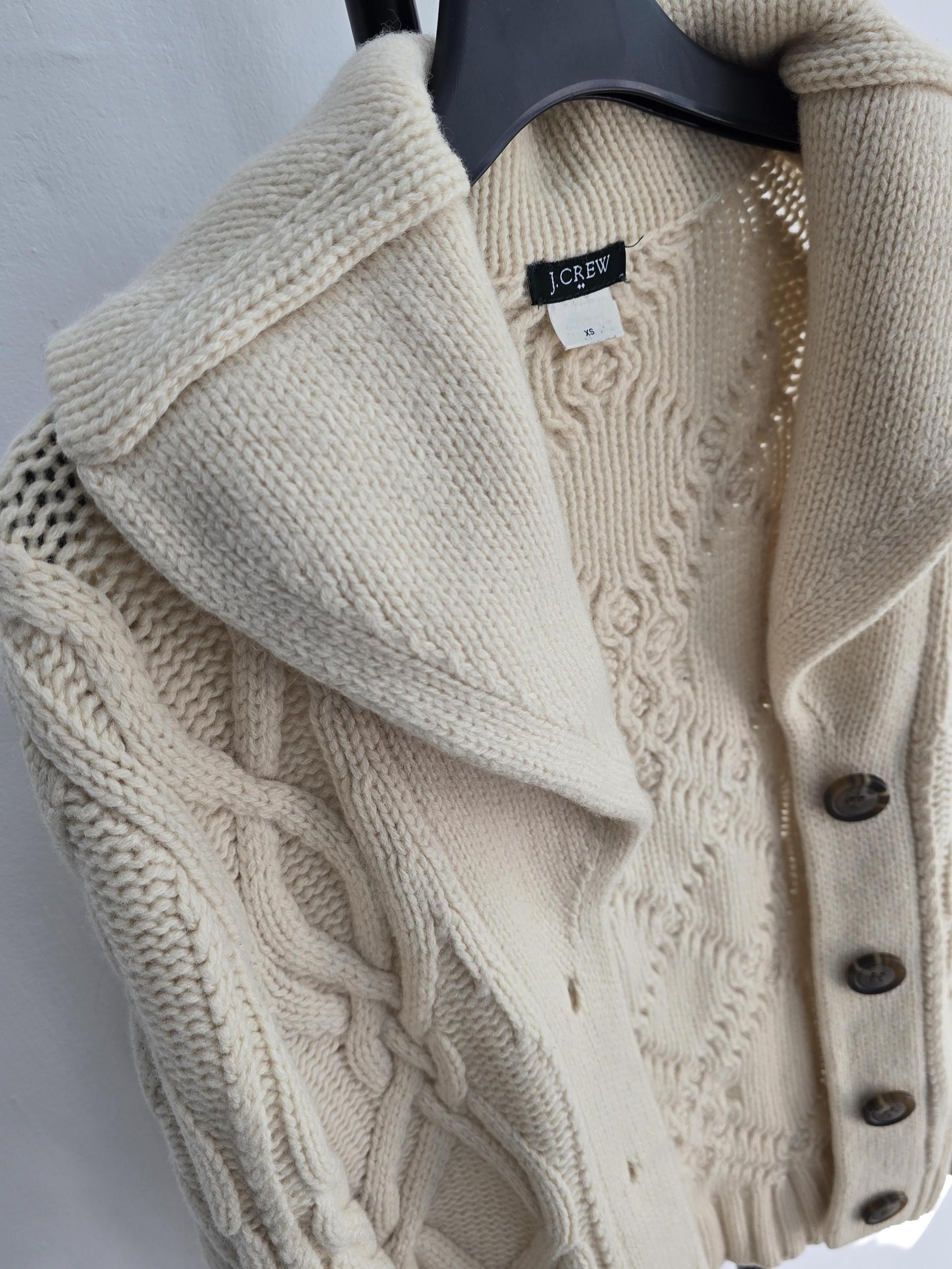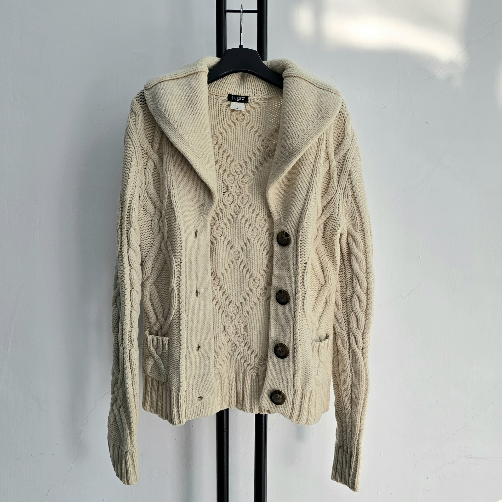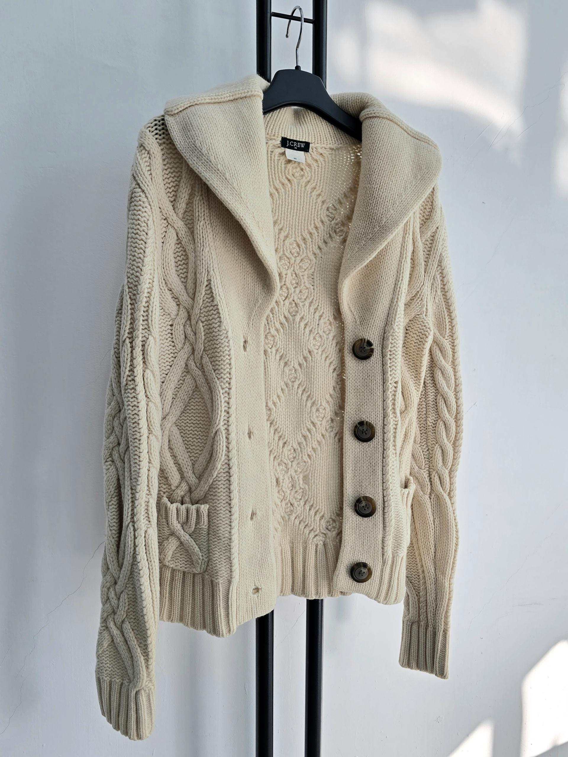 아이보리 색상의 제이크루 꽈배기 니트 가디건입니다.