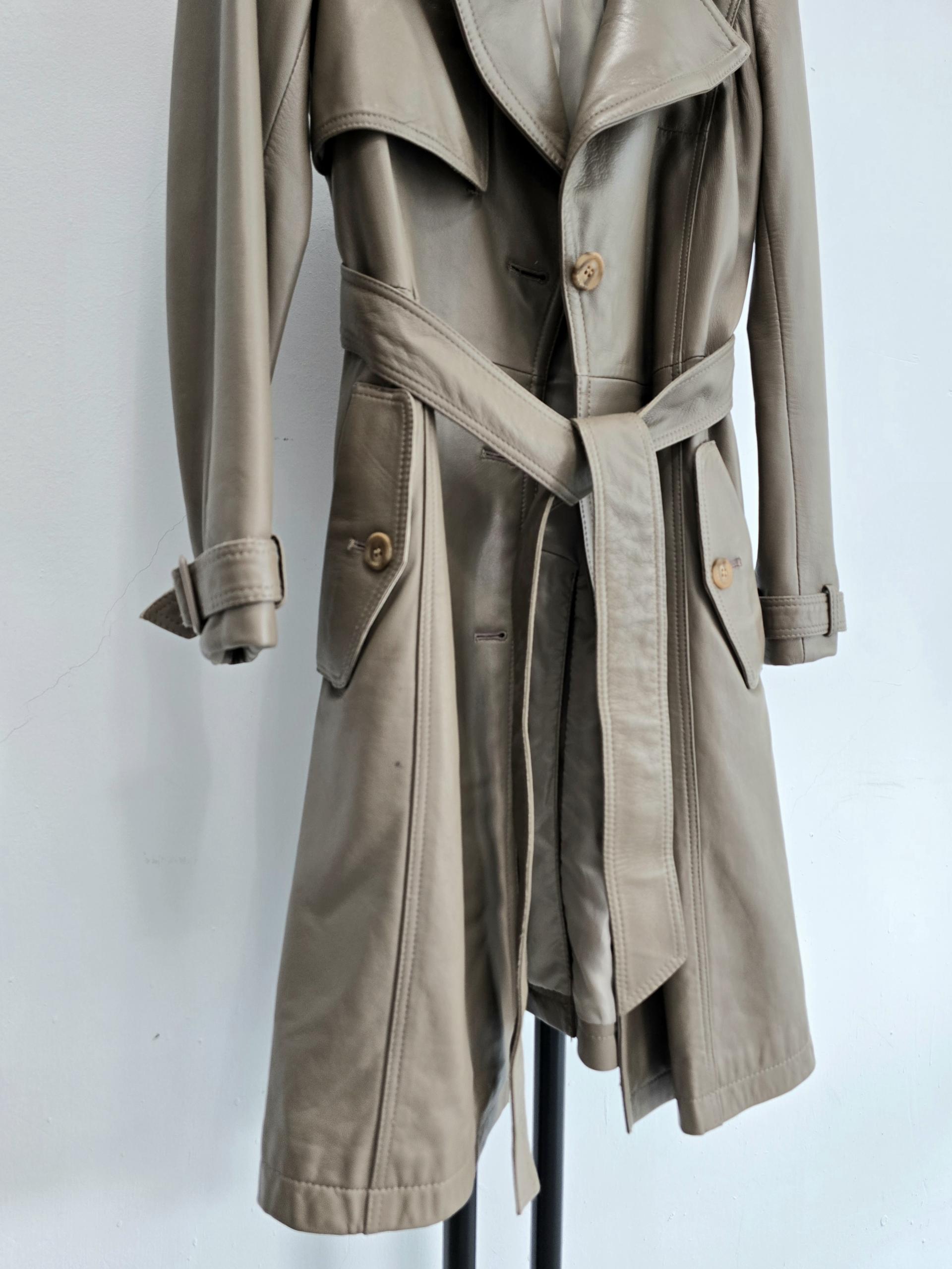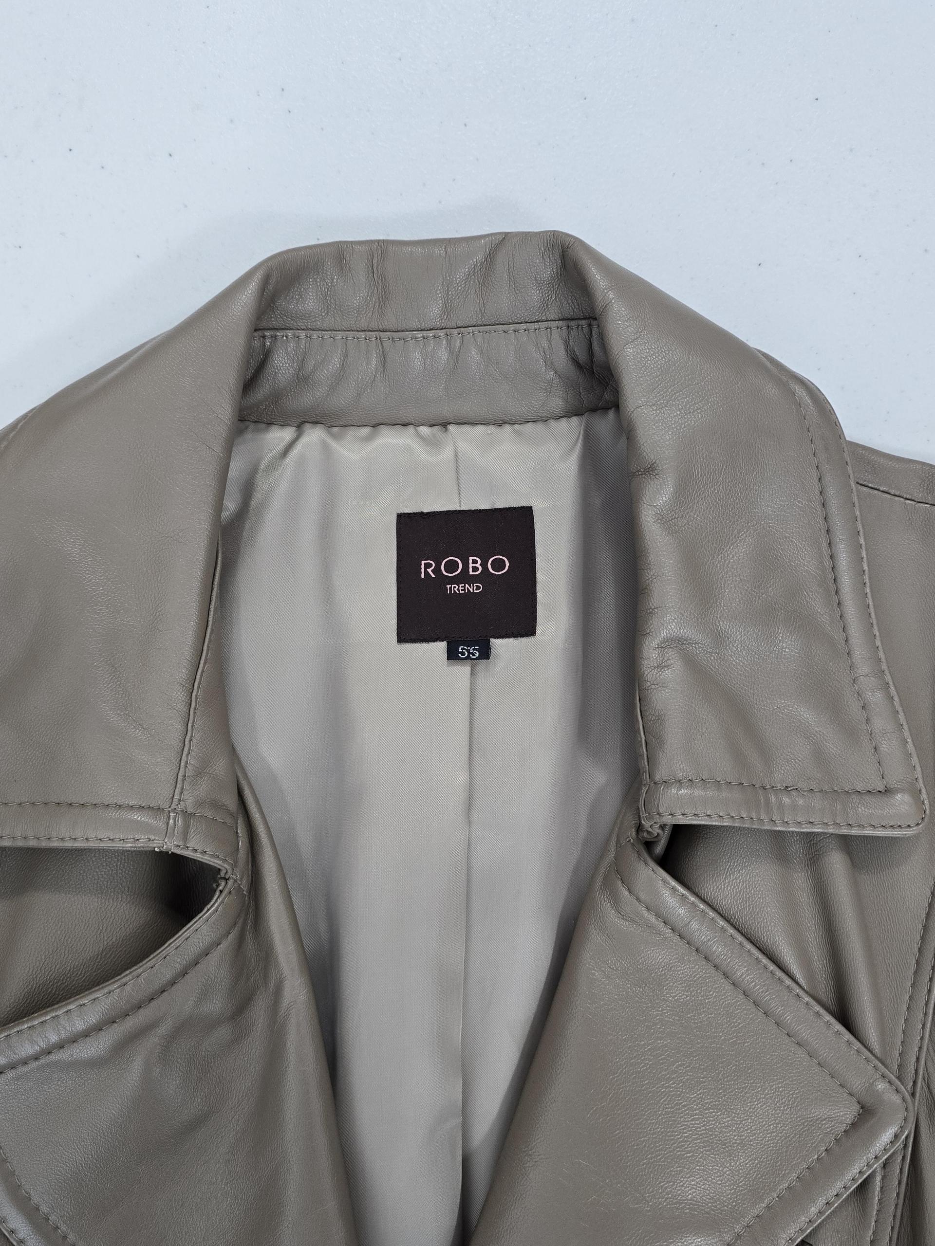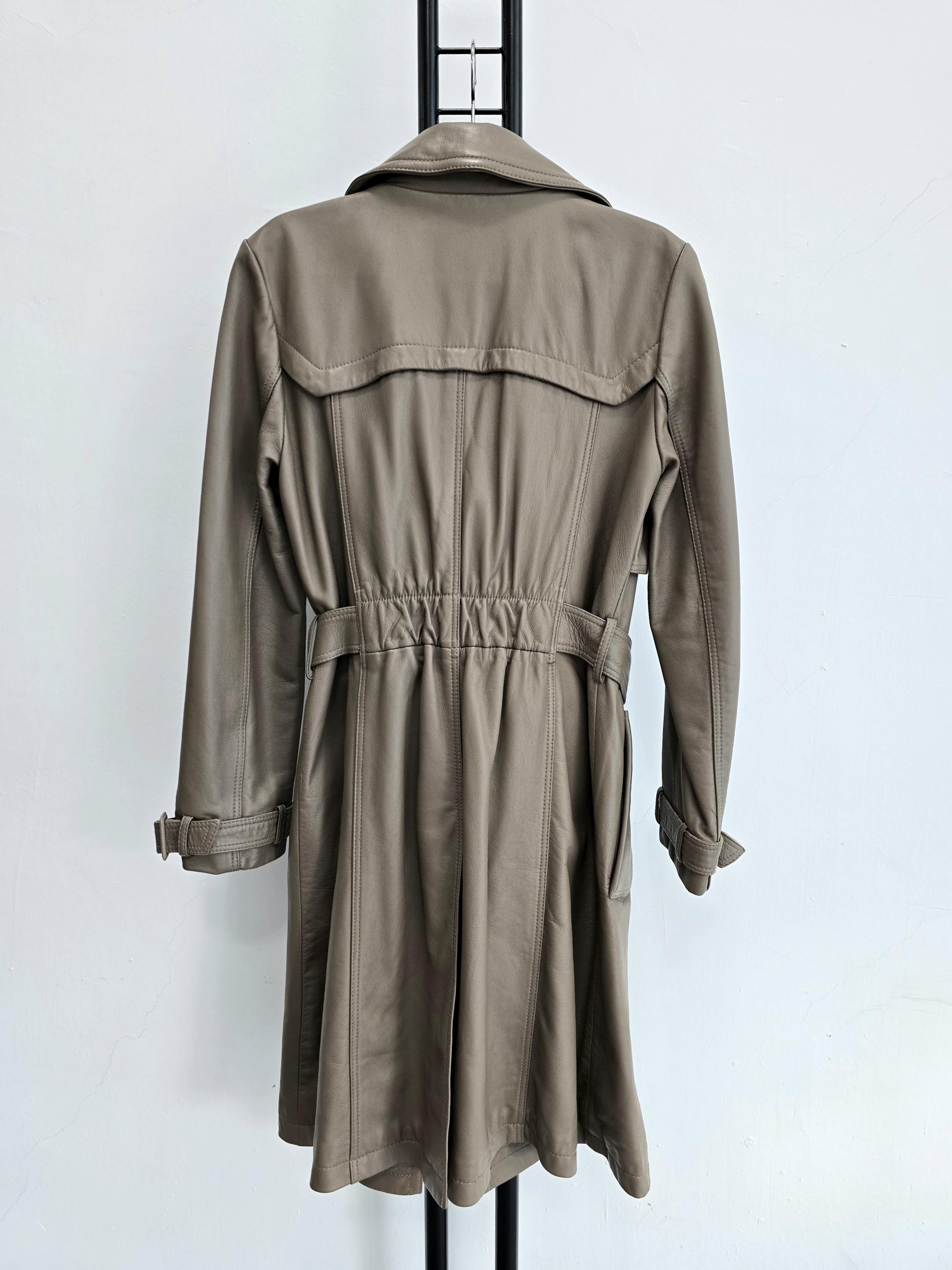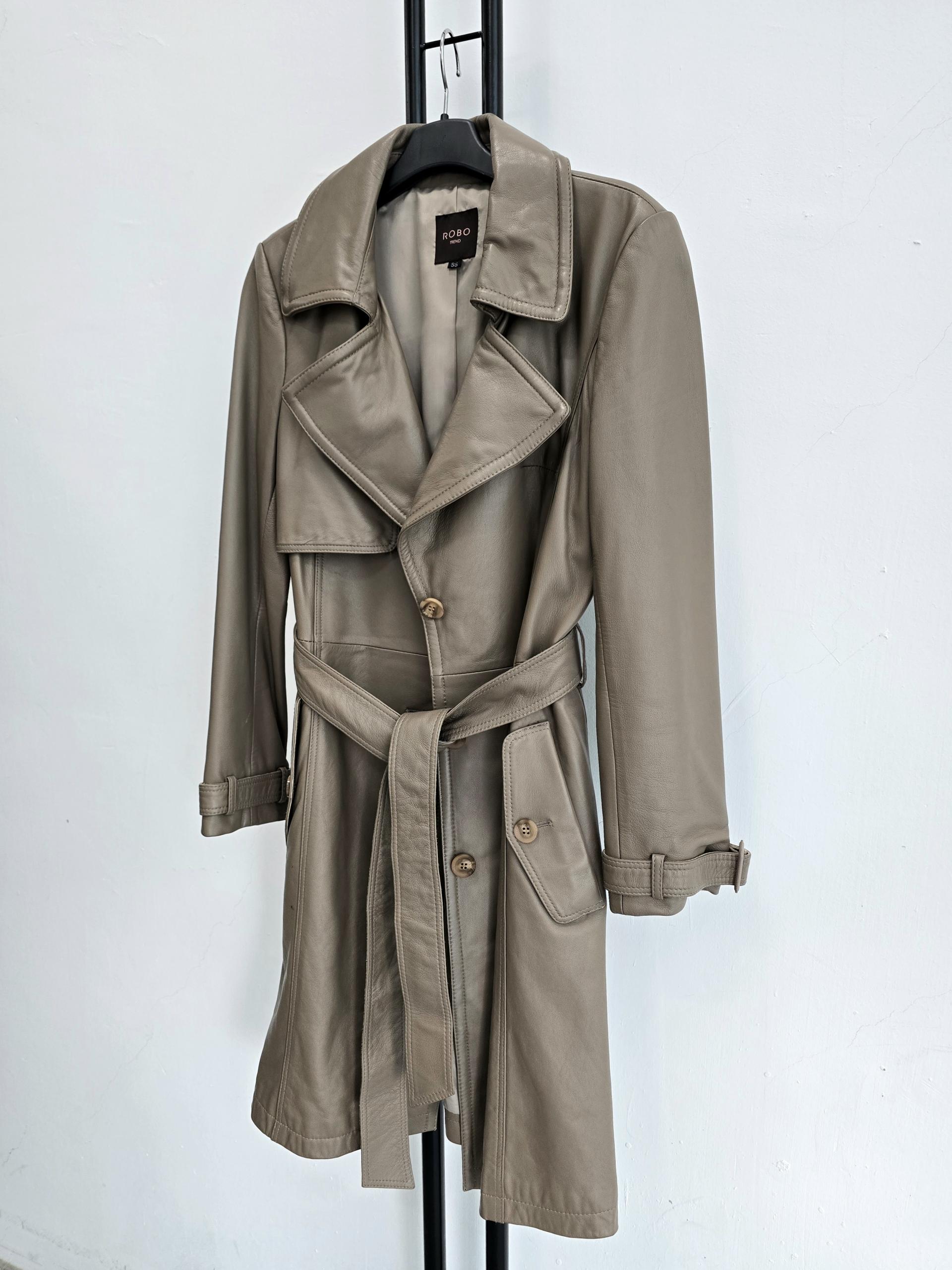 고급스러운 로보 양가죽 트렌치 코트입니다. 은은한 광택이 감도는
