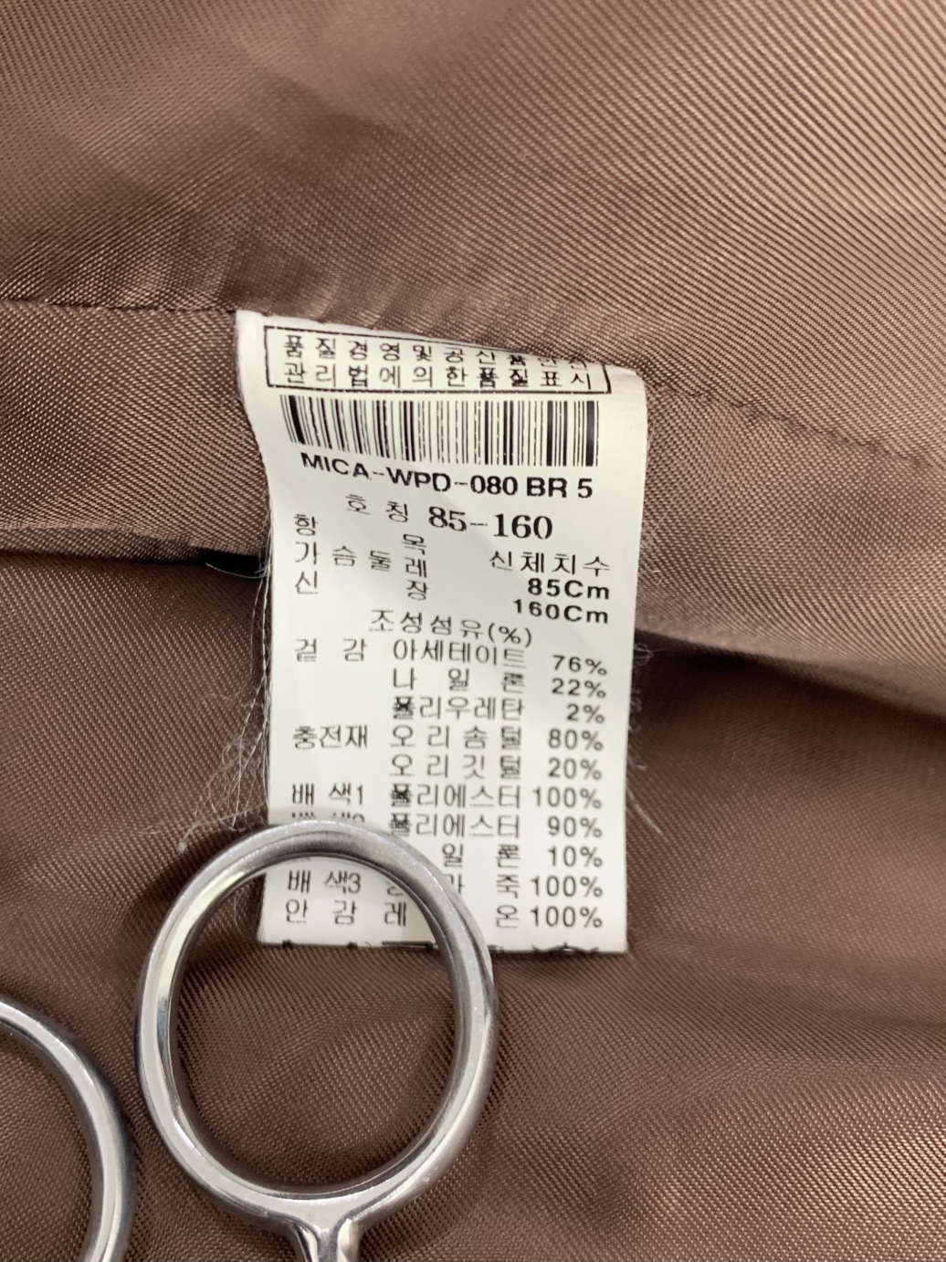 오리털 100프로입니다