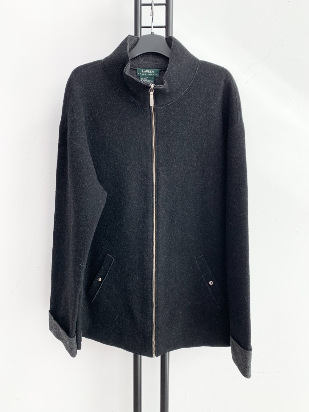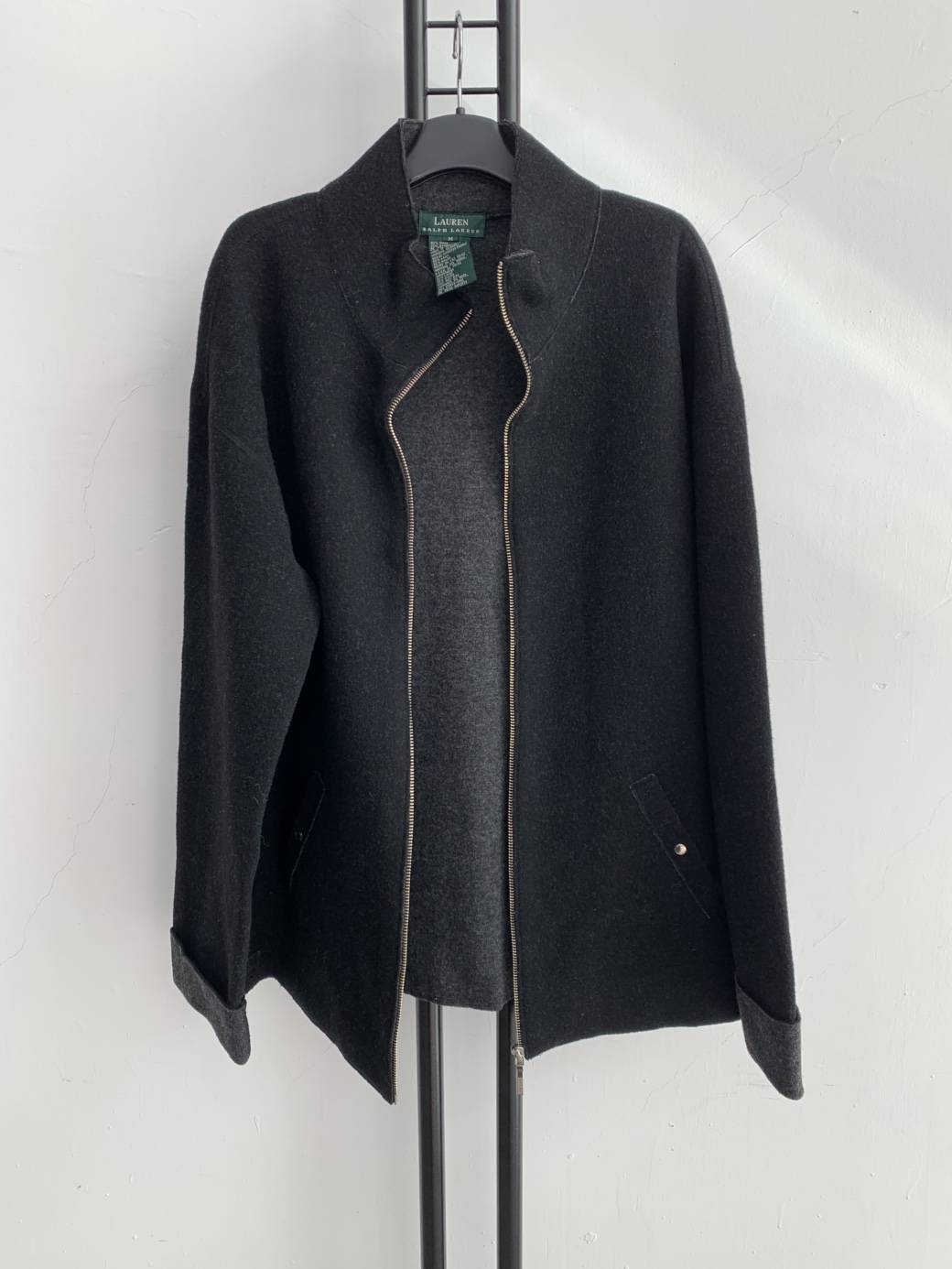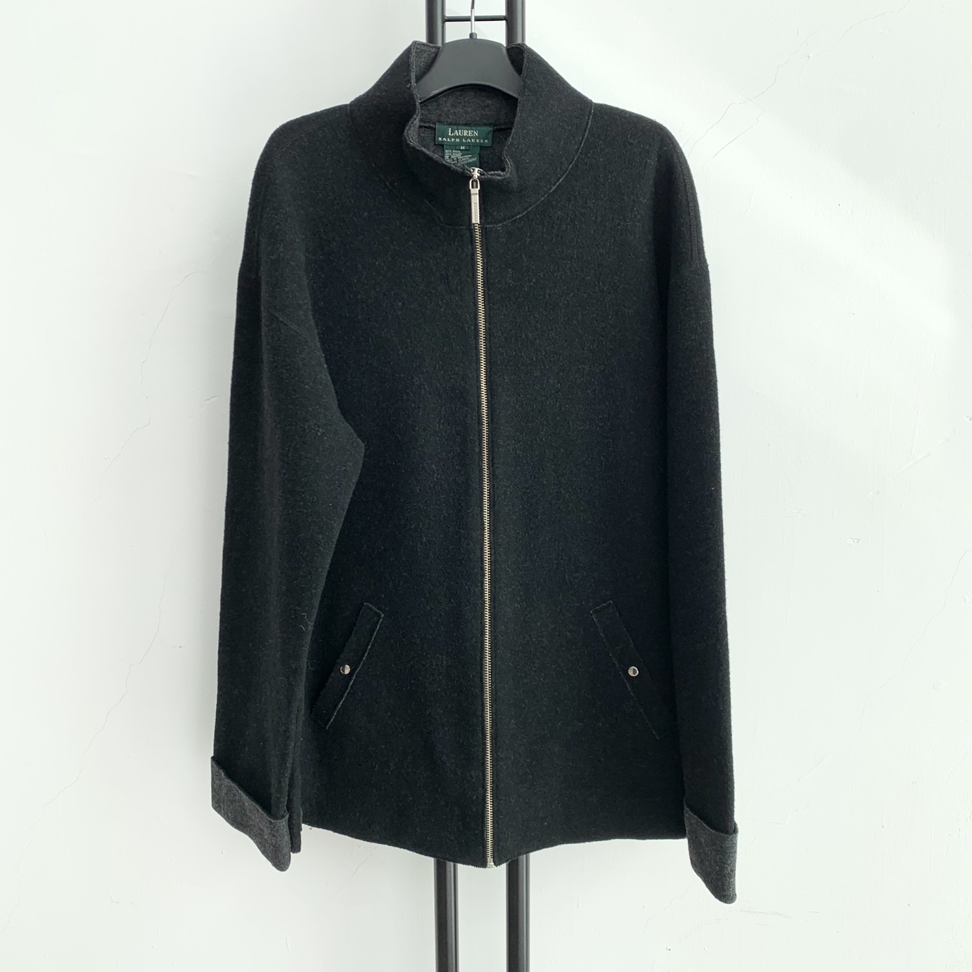 로렌 랄프로렌 블랙 울 집업 자켓입니다.