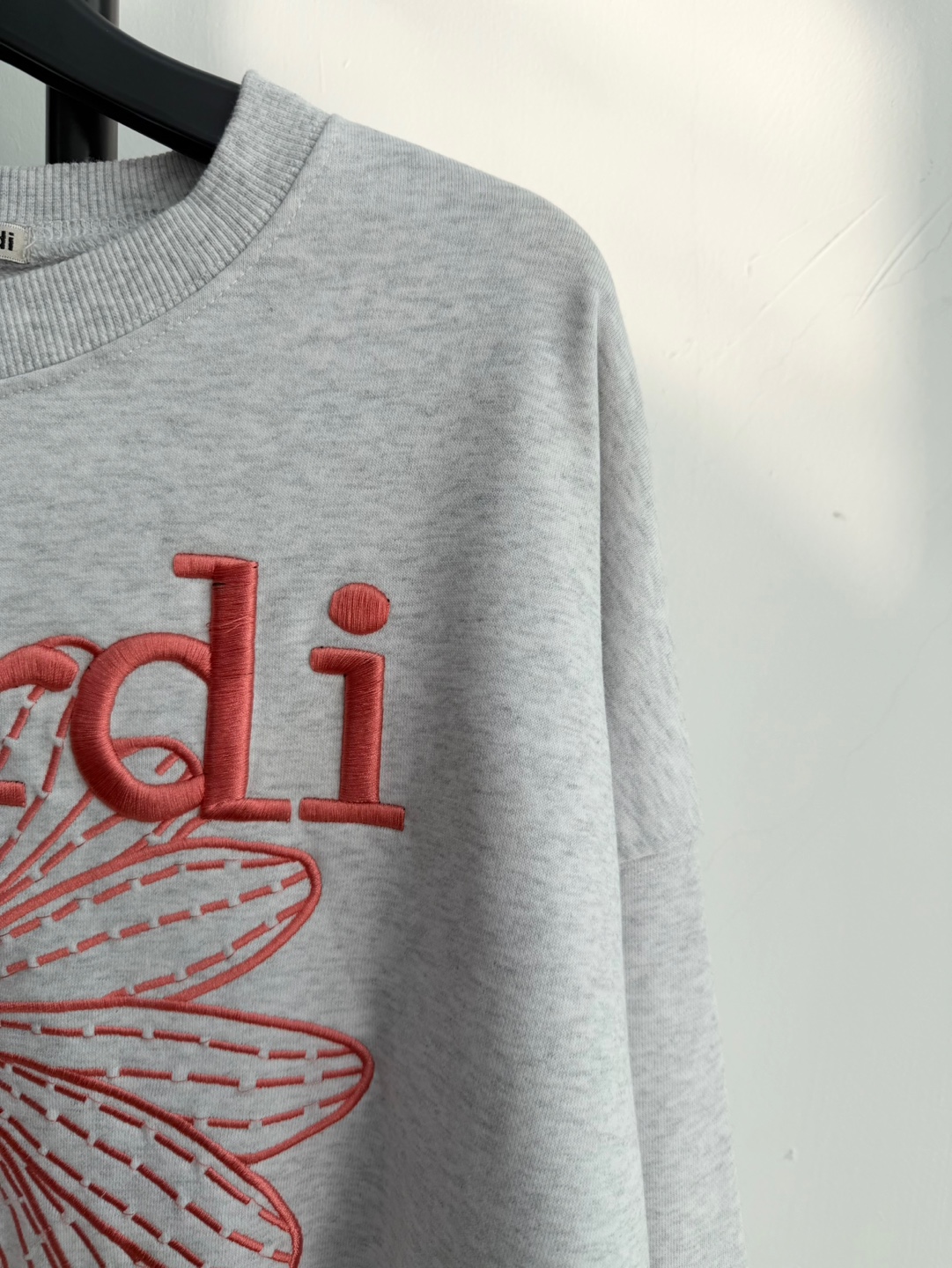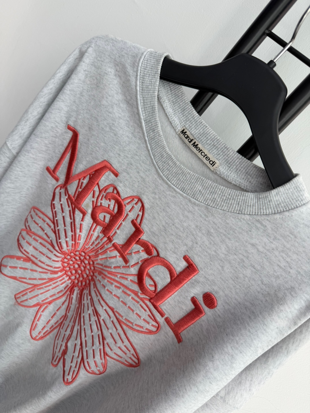 회색 바탕에 빨간색 꽃 자수가 포인트로 들어가 있습니다.