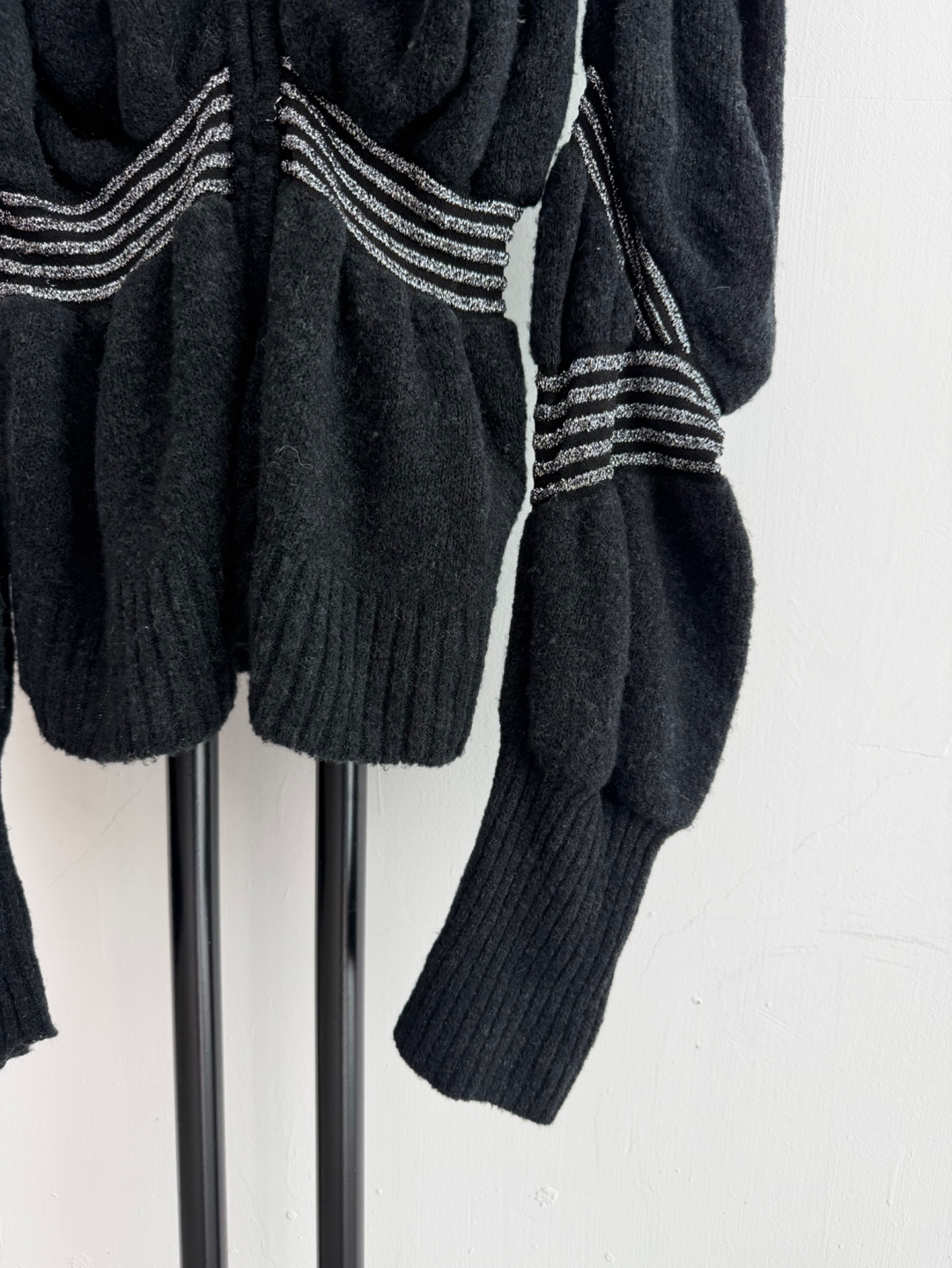 독특한 퍼프 소매 디자인에 은색 라인이 포인트입니다.