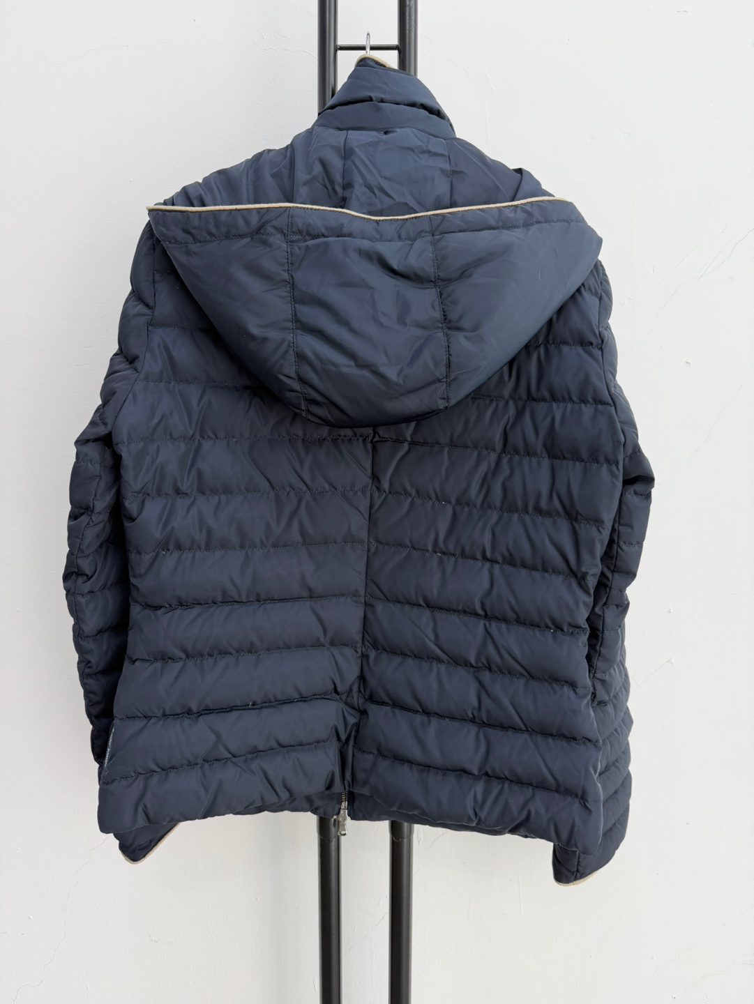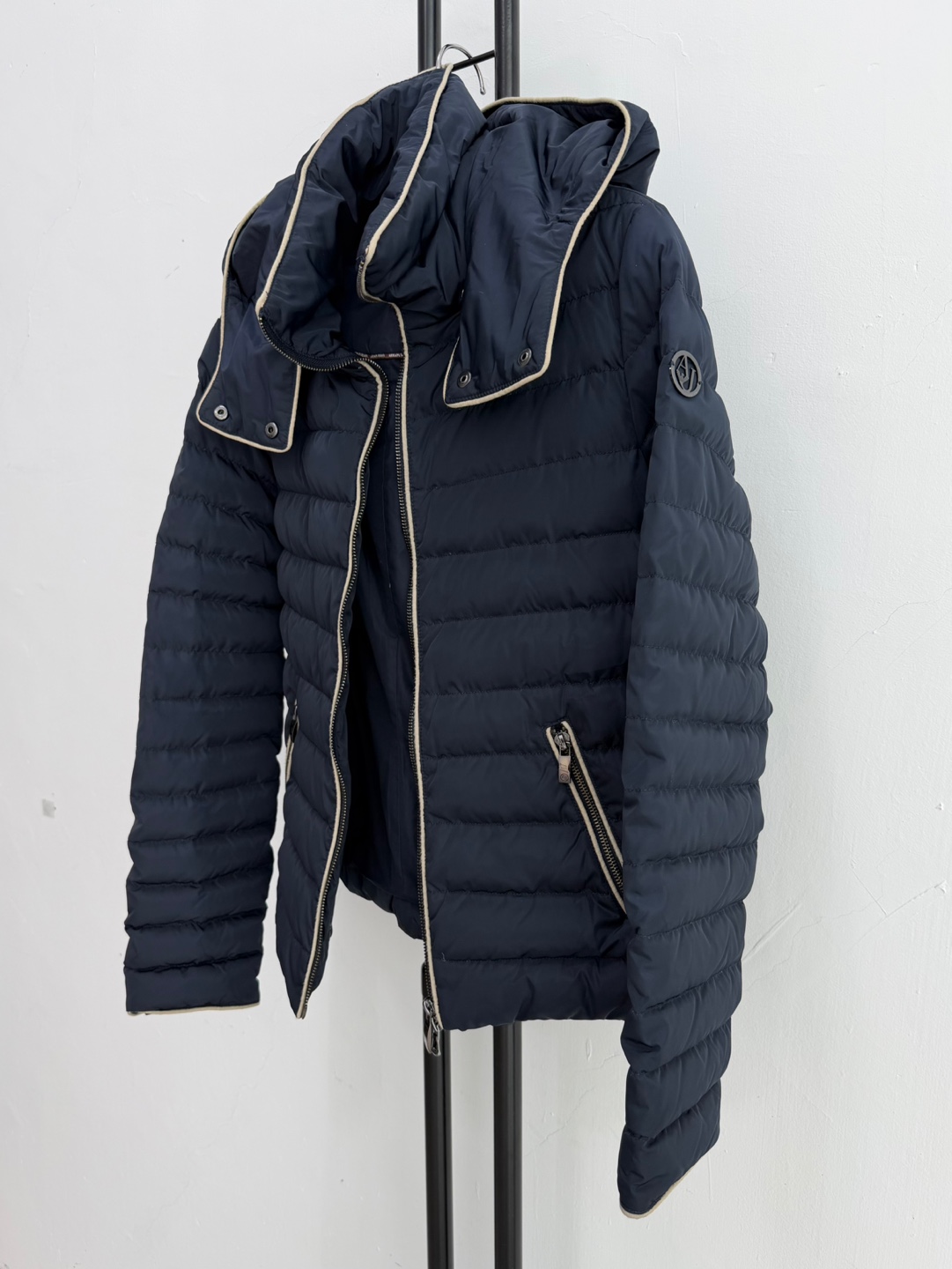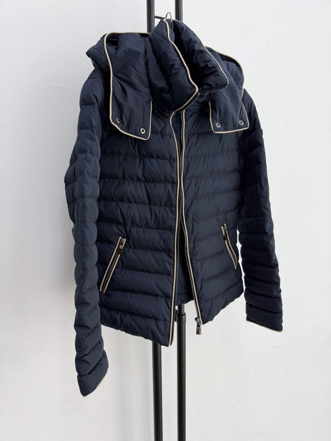 후드 달려있고, 탈부착 가능합니다. 100% 덕다운 충전재로 가볍고 따뜻합니다.