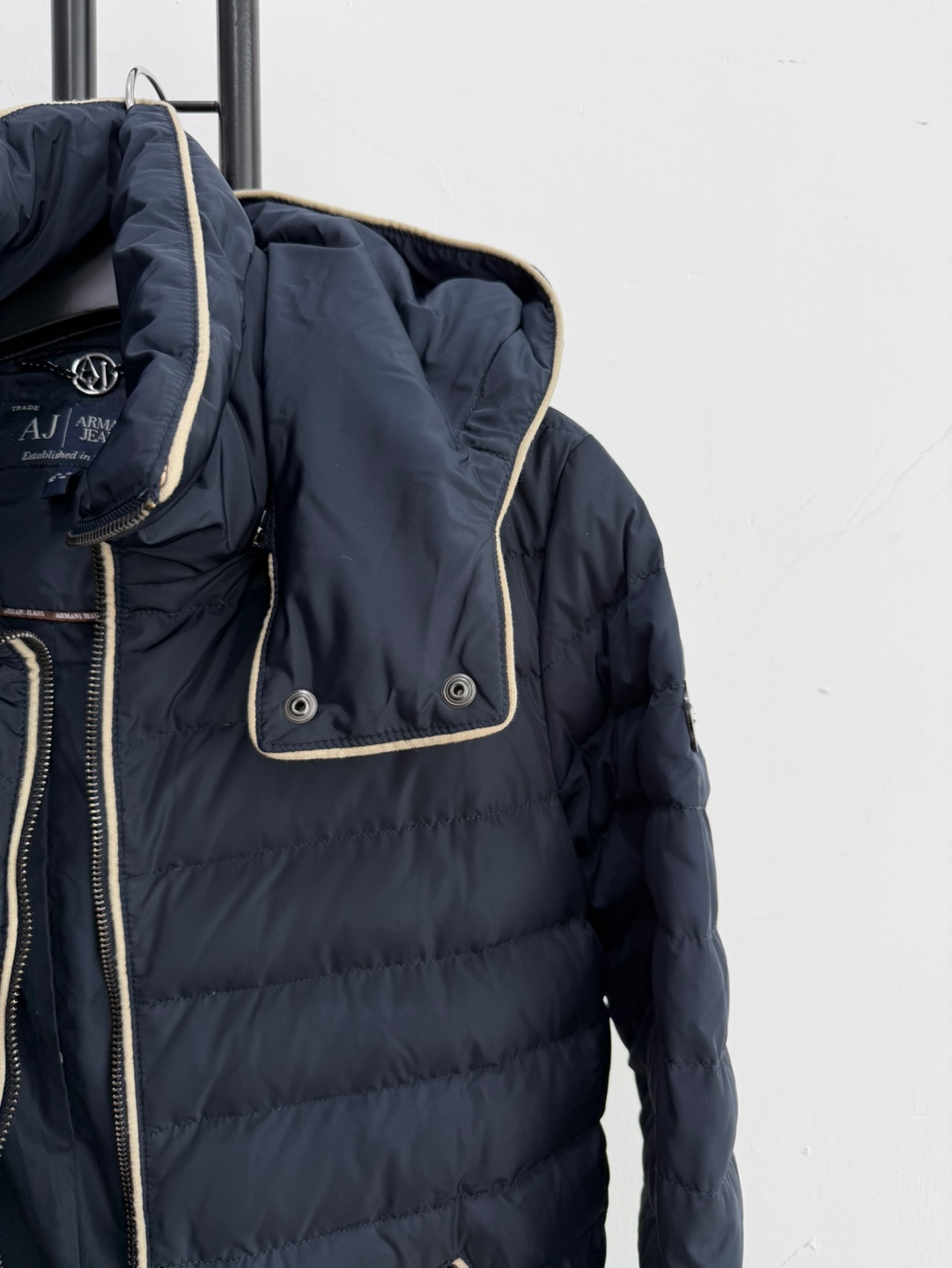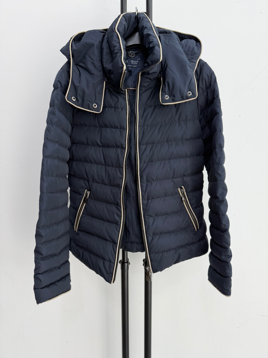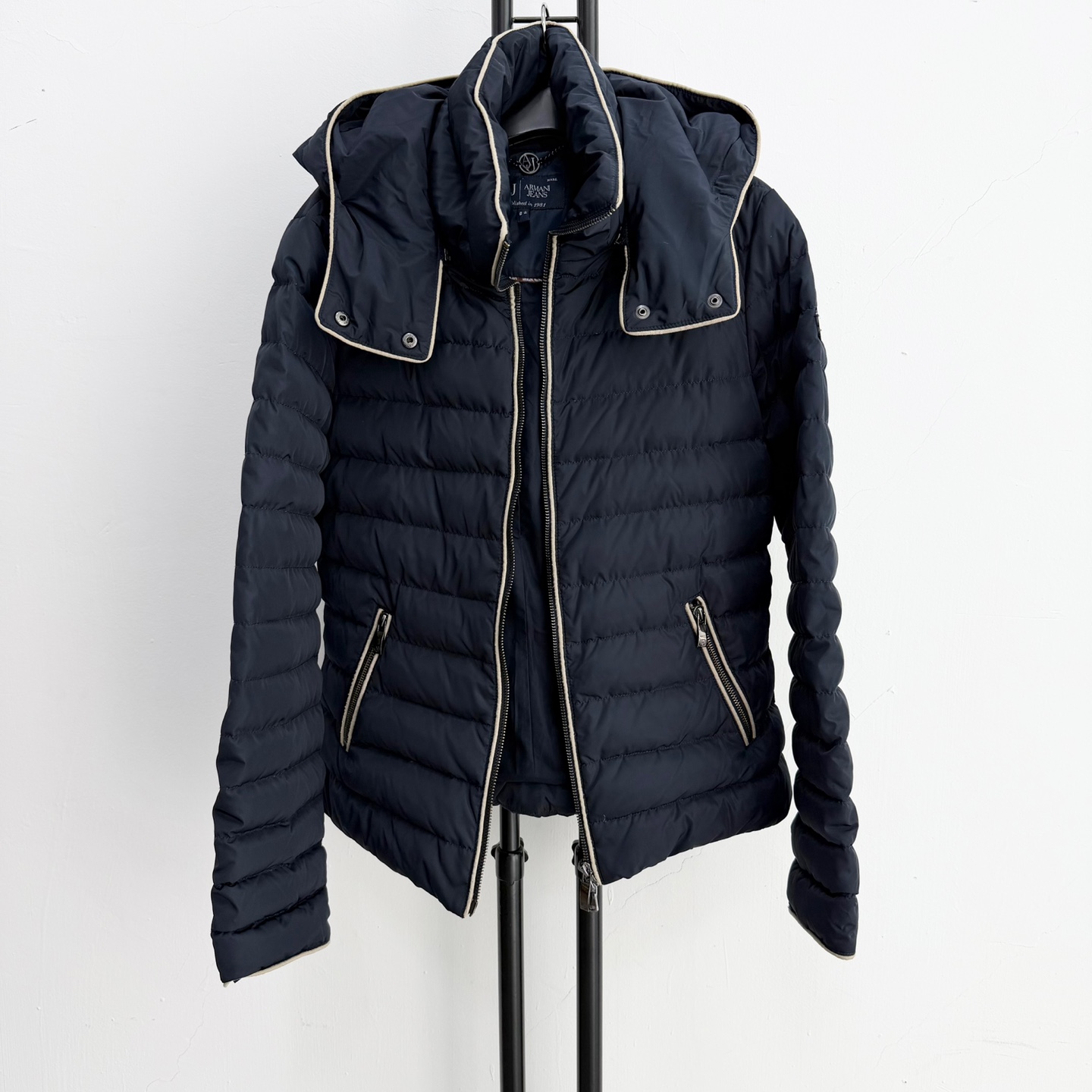 후드 달려있고, 탈부착 가능합니다. 100% 덕다운 충전재로 가볍고 따뜻합니다.