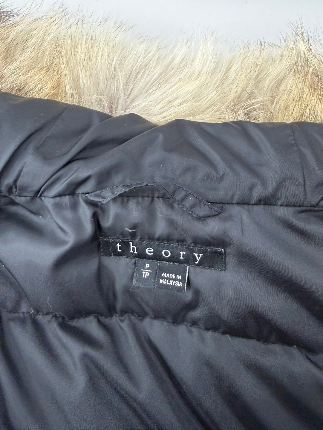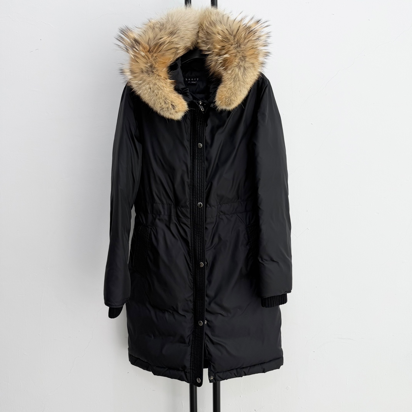 띠어리 블랙 후드 구스 패딩입니다.