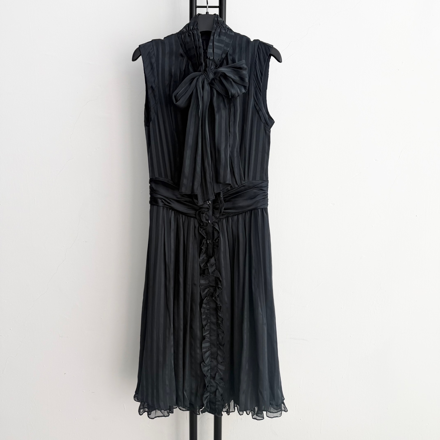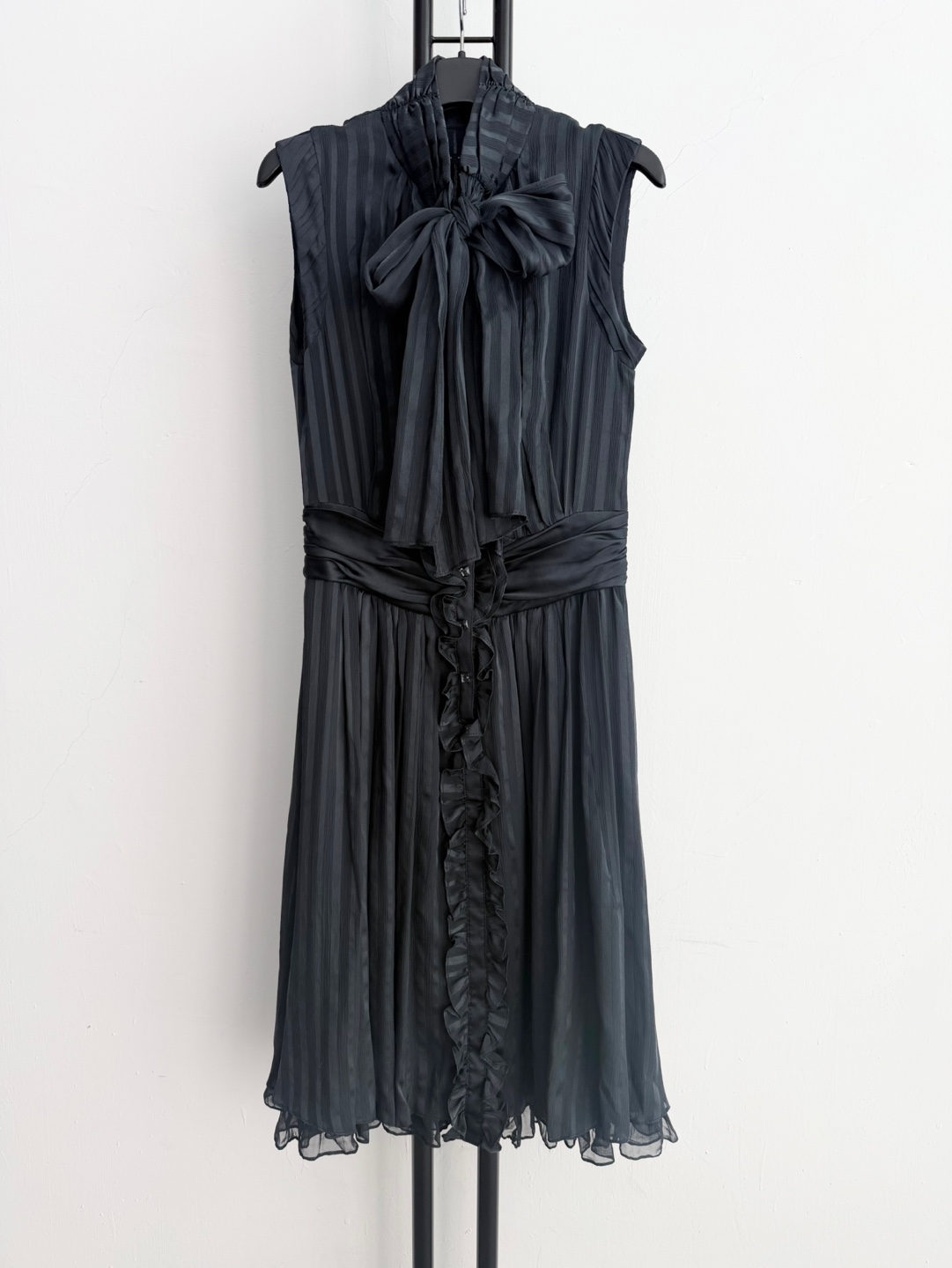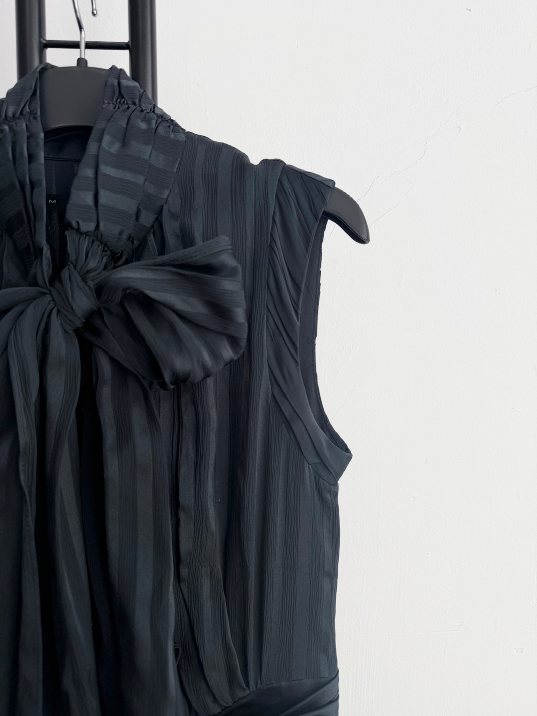 리본과 플리츠 디테일이 여성스러운 느낌을 줍니다.
