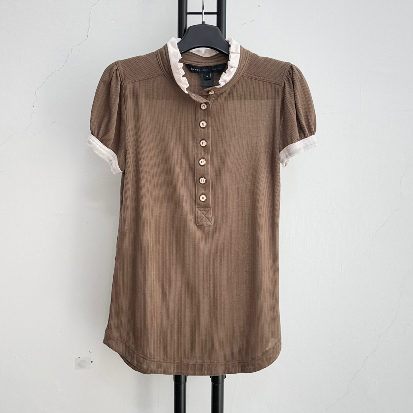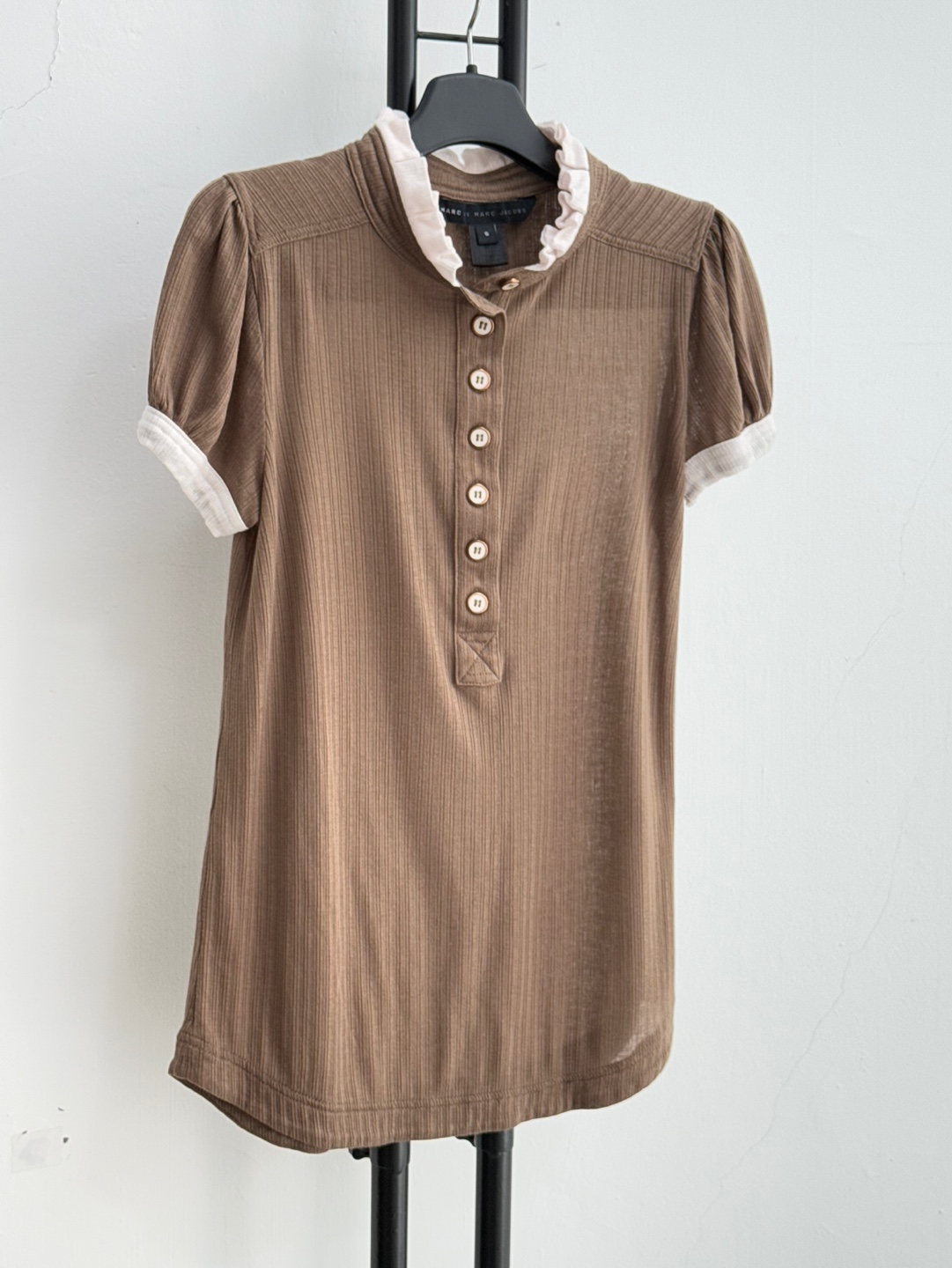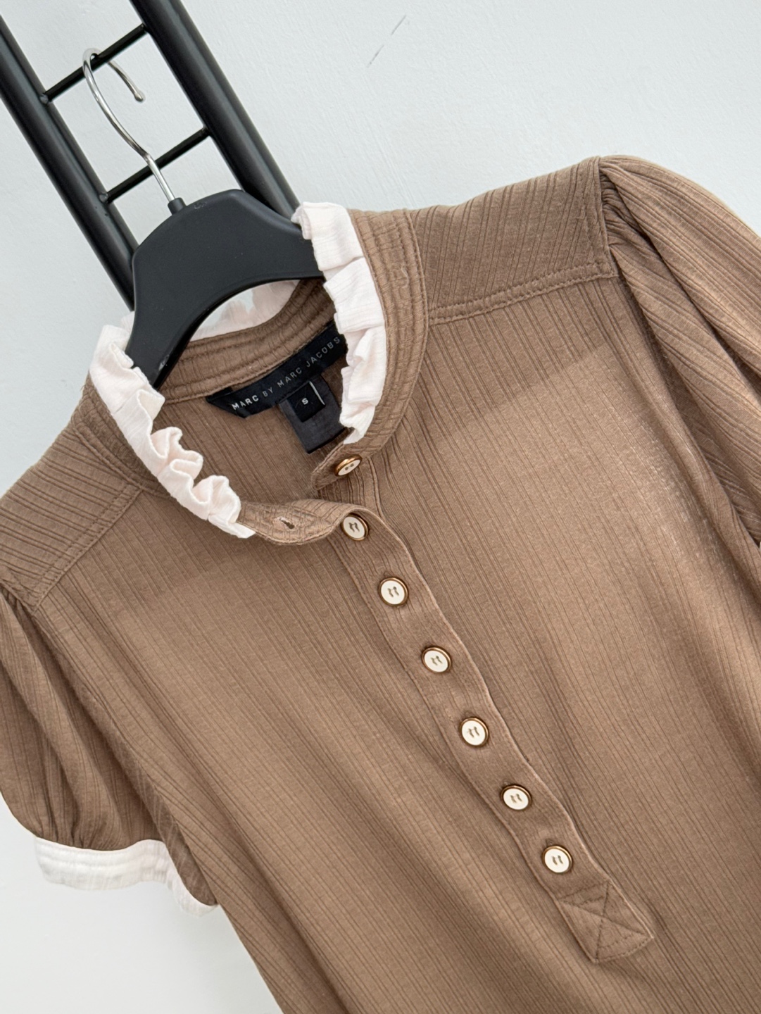 헨리넥 디자인에 프릴이 있어 여성스럽습니다.