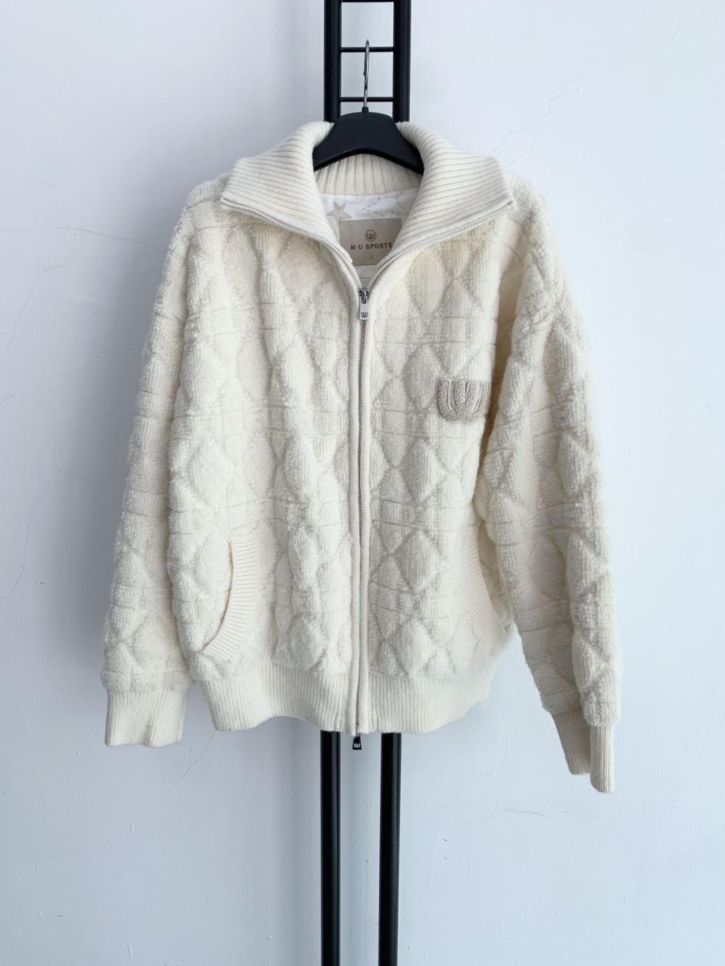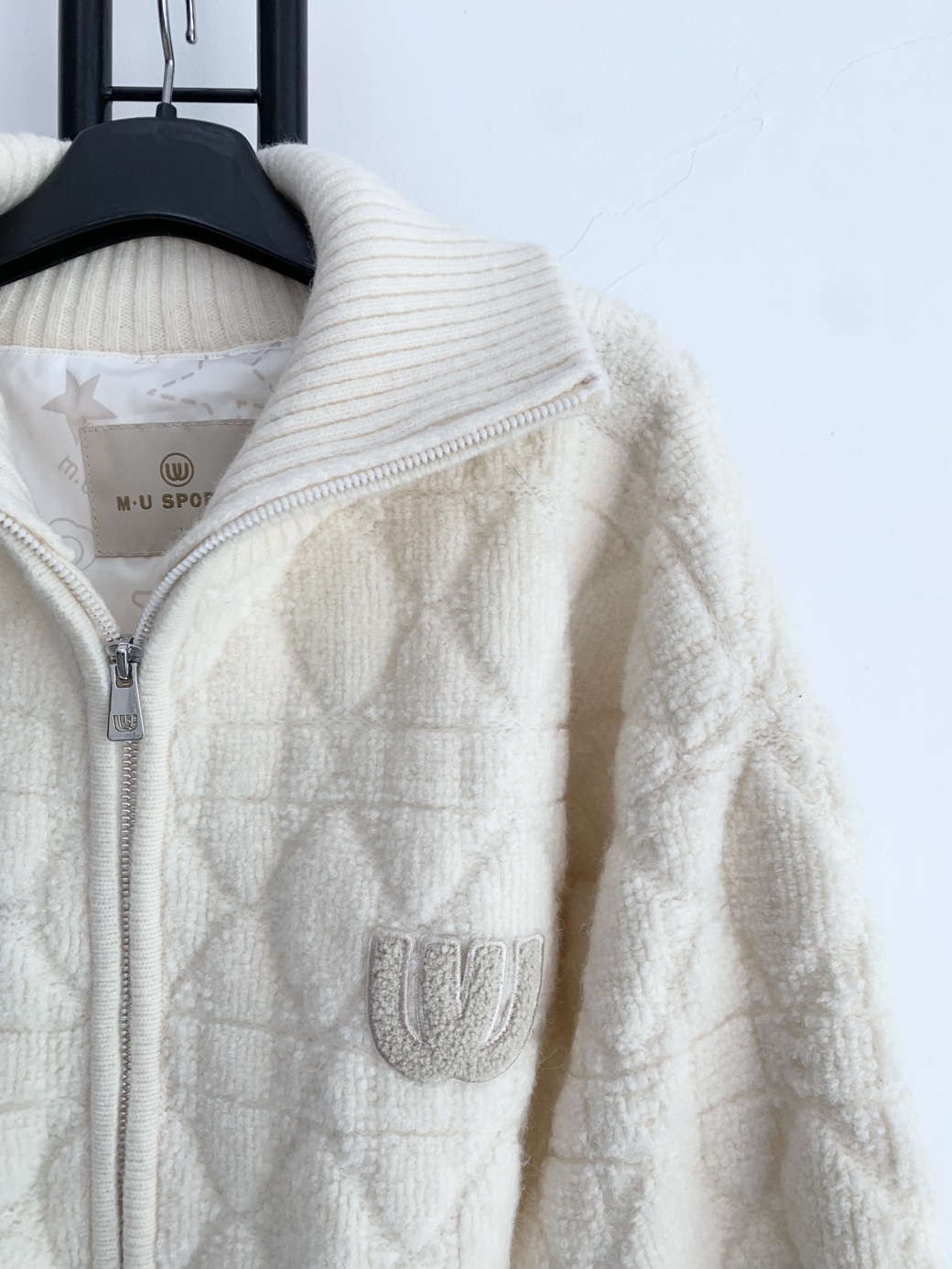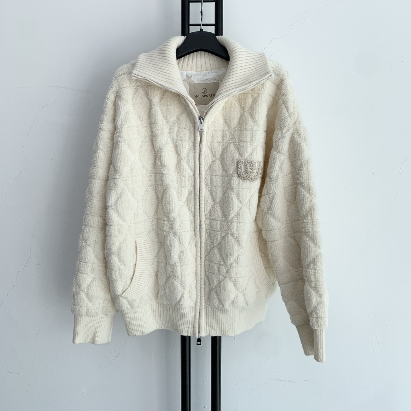 아이보리 색상의 엠유스포츠 뽀글이 집업입니다.