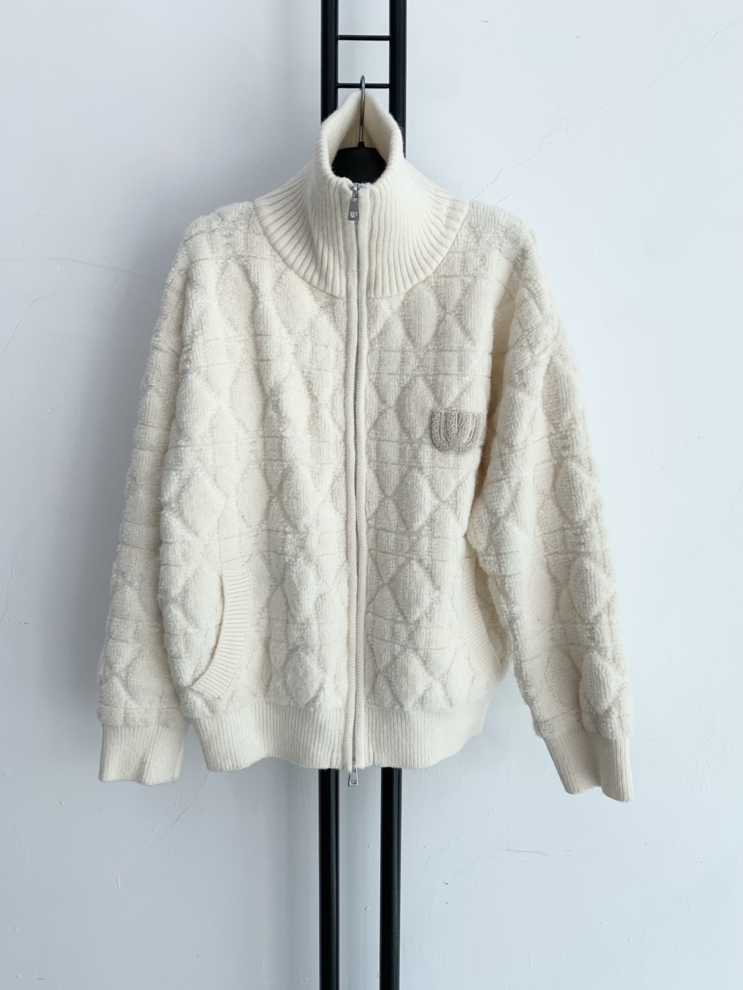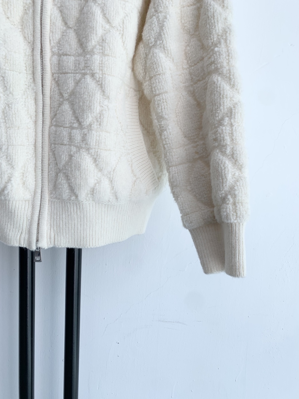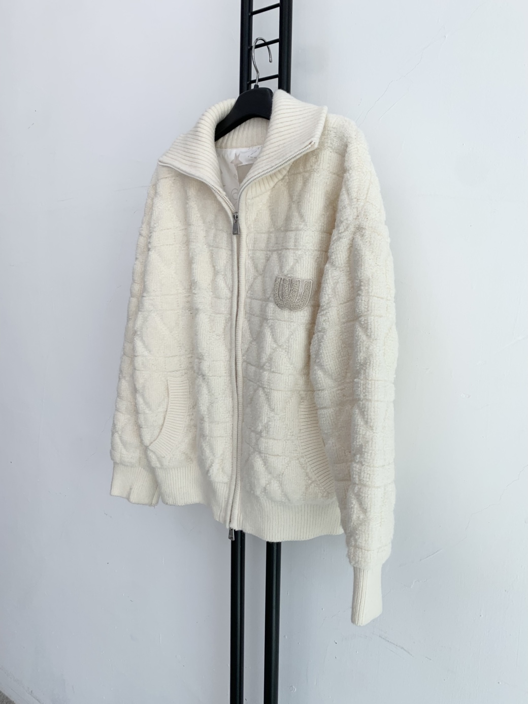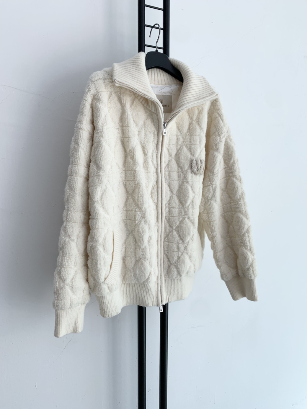 아이보리 색상의 엠유스포츠 뽀글이 집업입니다.