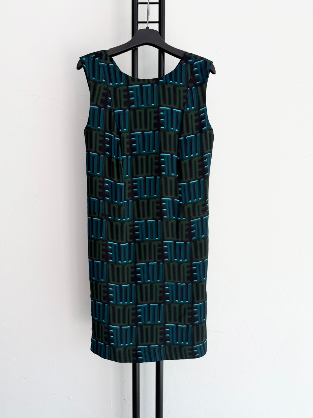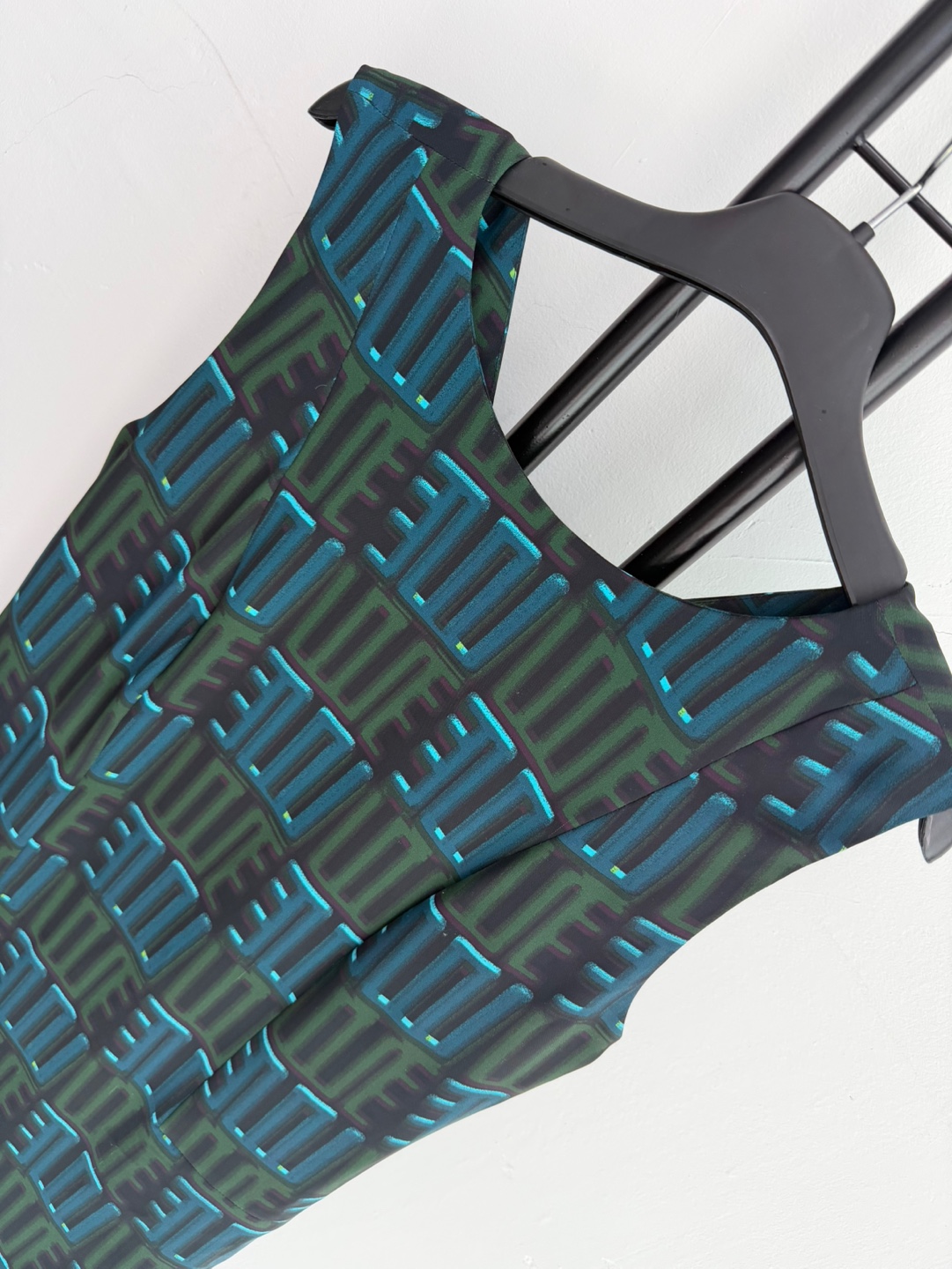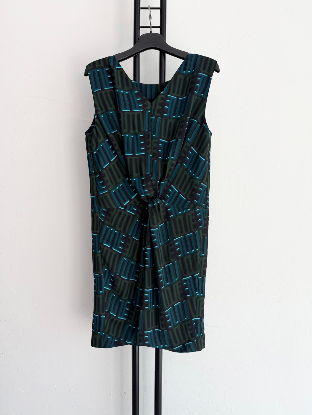 겐조 패턴이 돋보이는 민소매 미디 원피스입니다. 독특한 꼬임 디테일이 포인트예요.