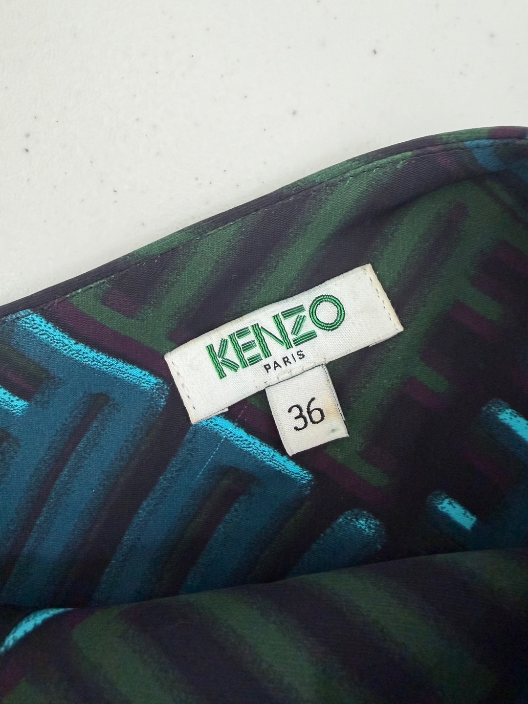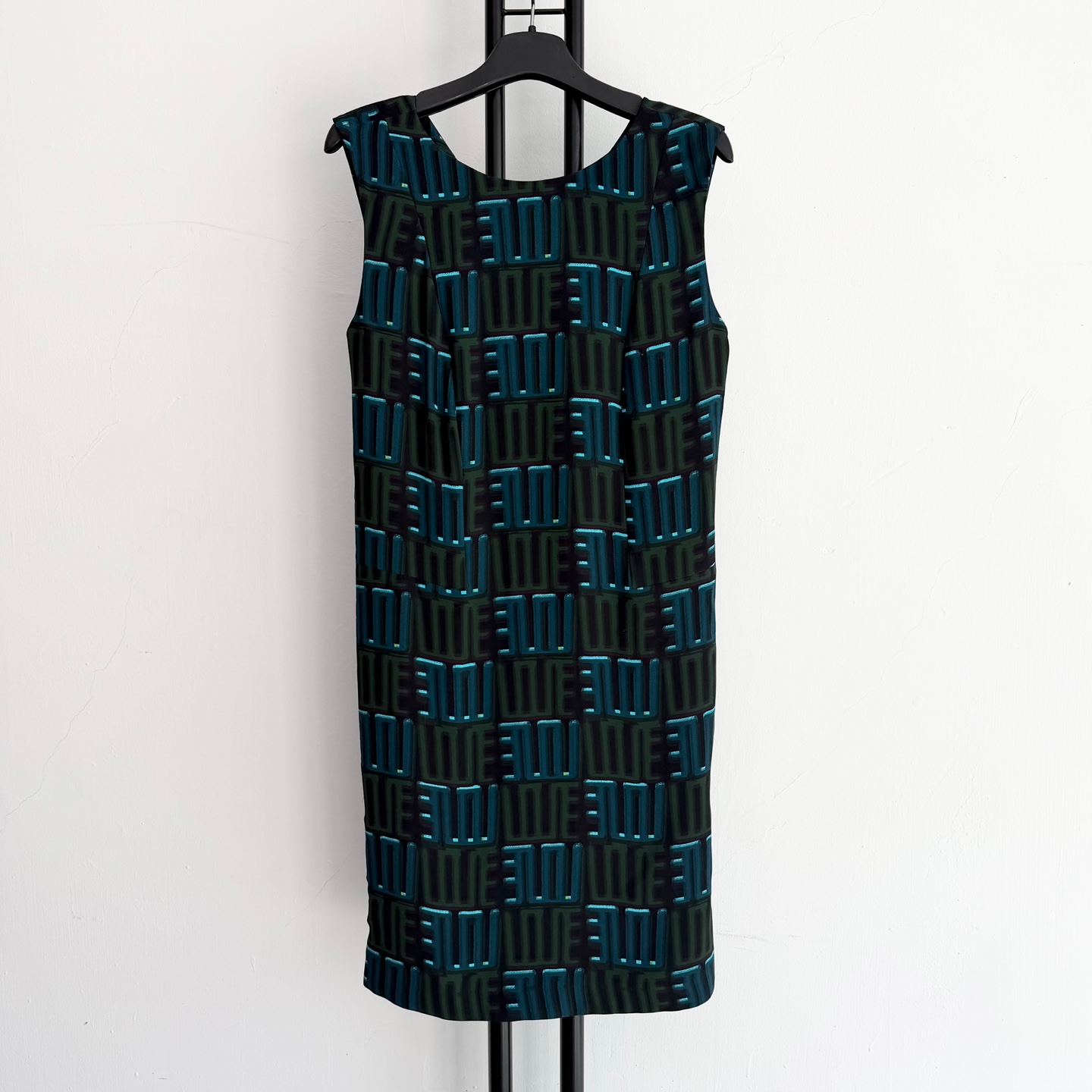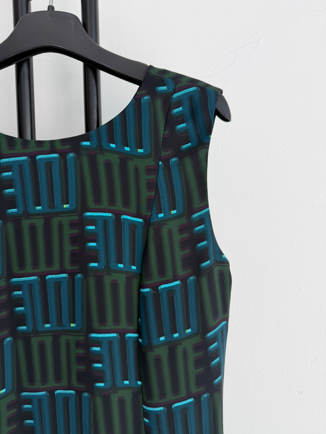 겐조 패턴이 돋보이는 민소매 미디 원피스입니다. 독특한 꼬임 디테일이 포인트예요.