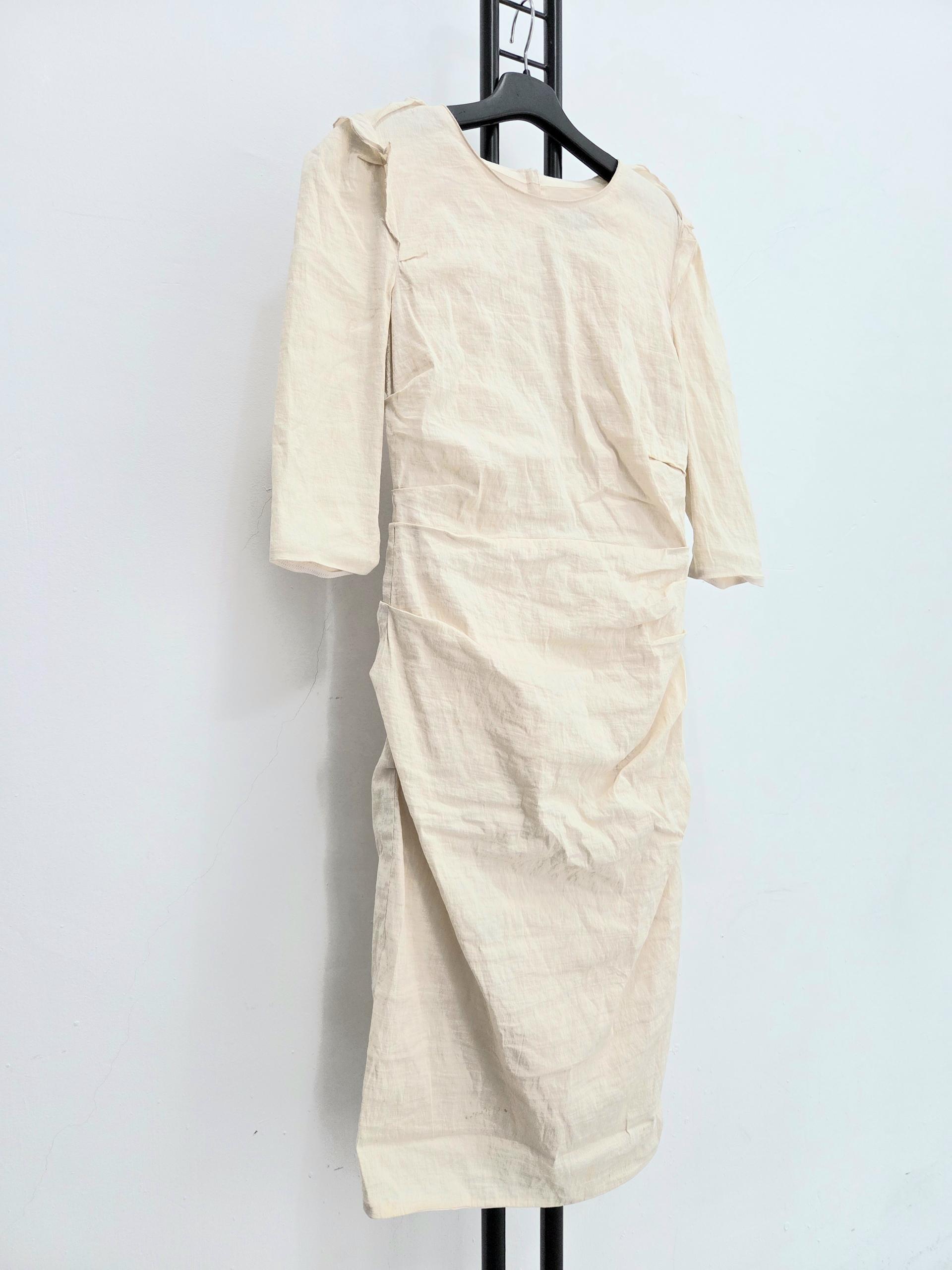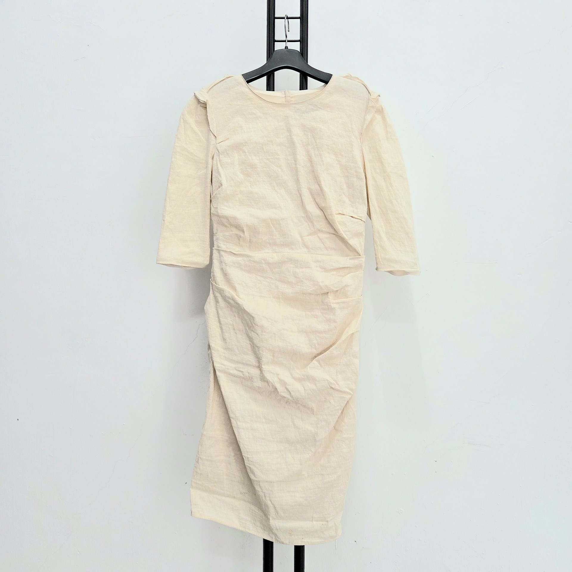아이보리 색상의 랑방 컬럭션 셔링 롱 원피스입니다.