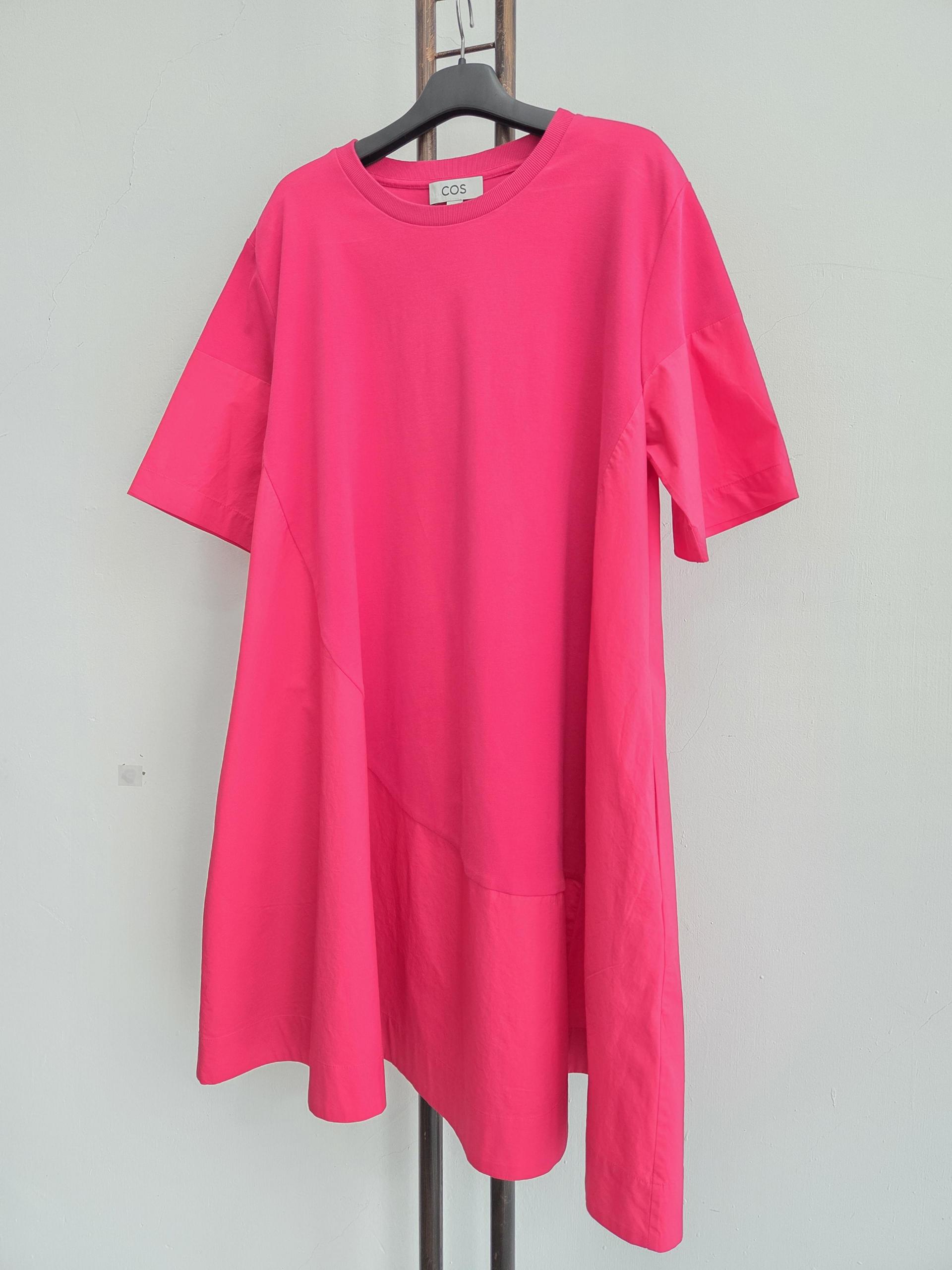 진한 핑크 색상이 하나만 입어도 룩의 포인트를 줍니다