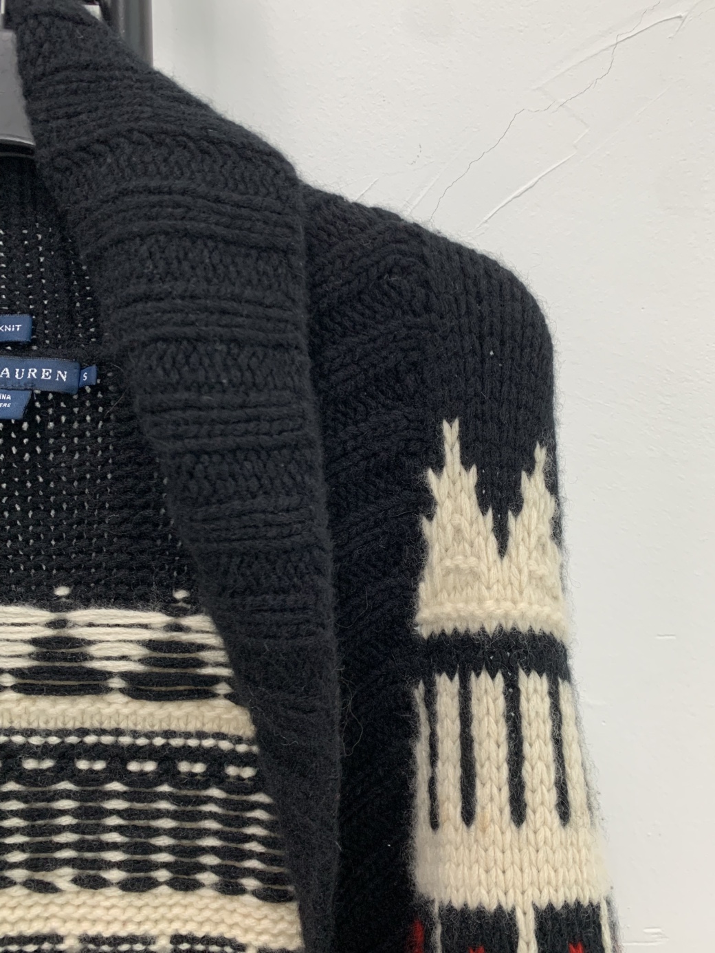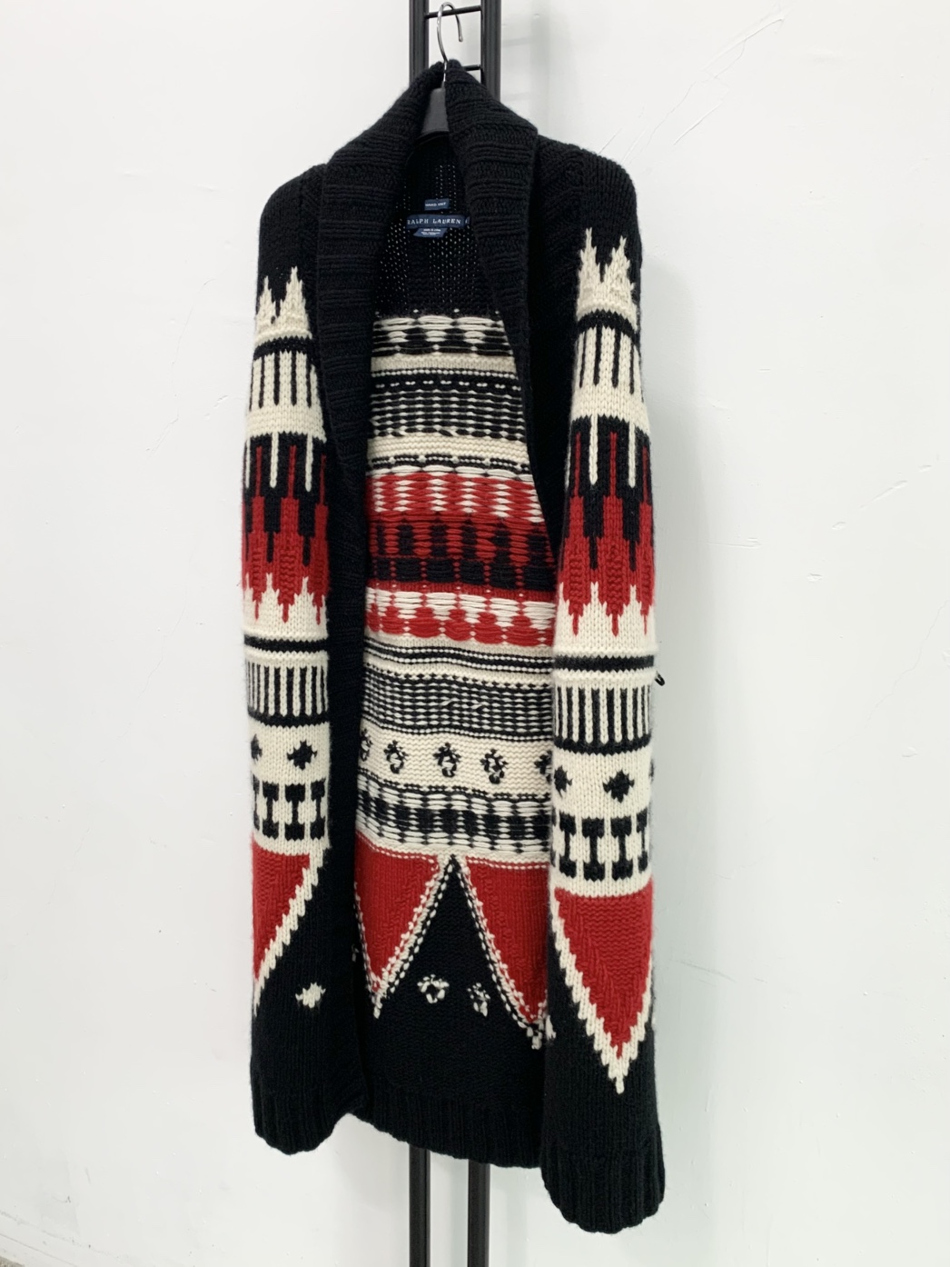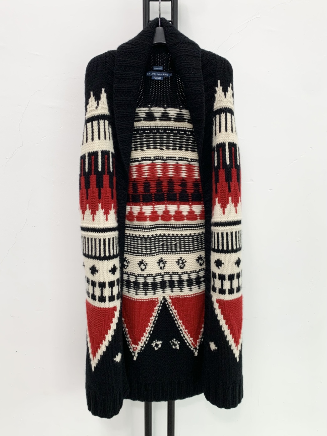 랄프로렌 블랙-레드 패턴 롱 가디건 정품 입니다.