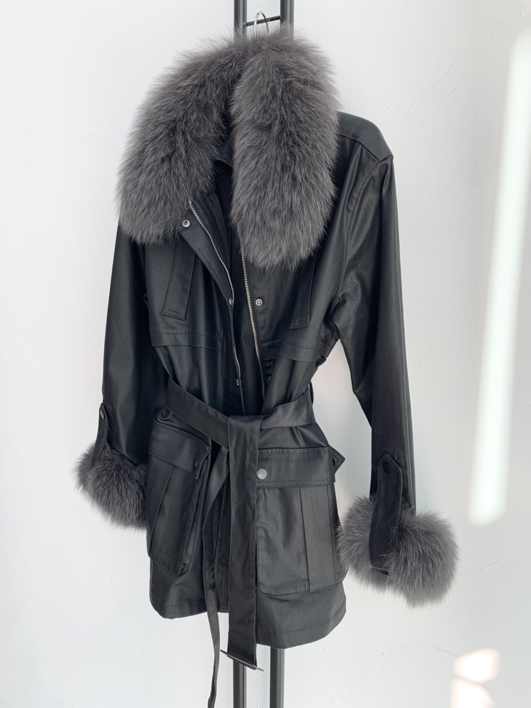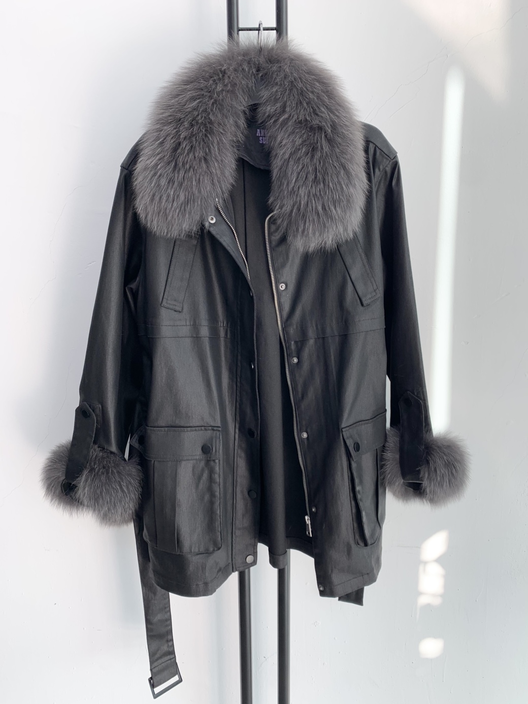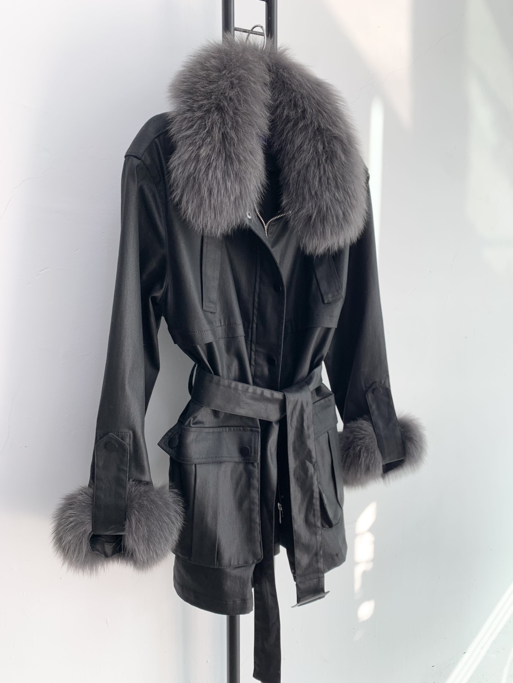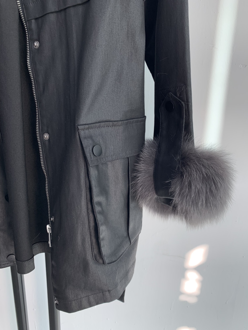 고급스러운 폭스퍼가 넥과 손목에 트리밍되어 있습니다.
